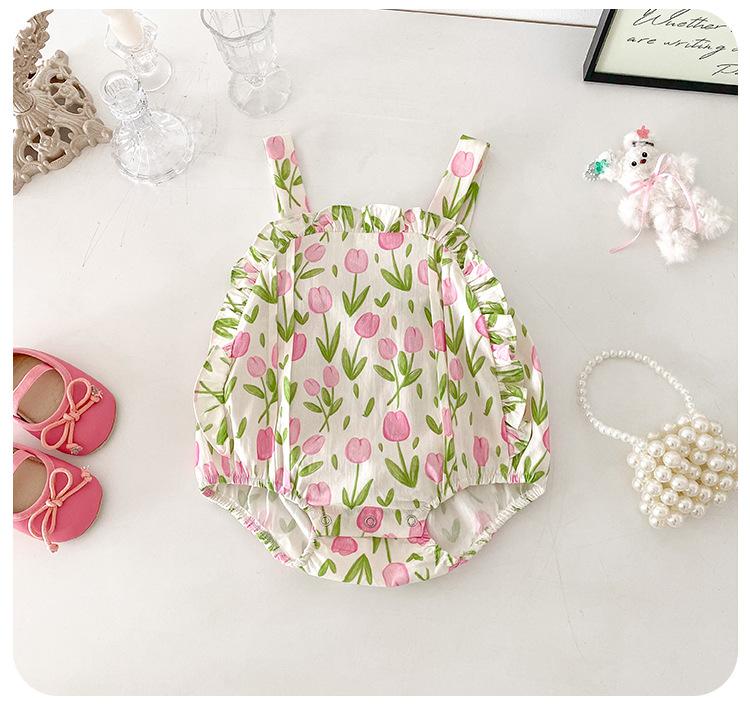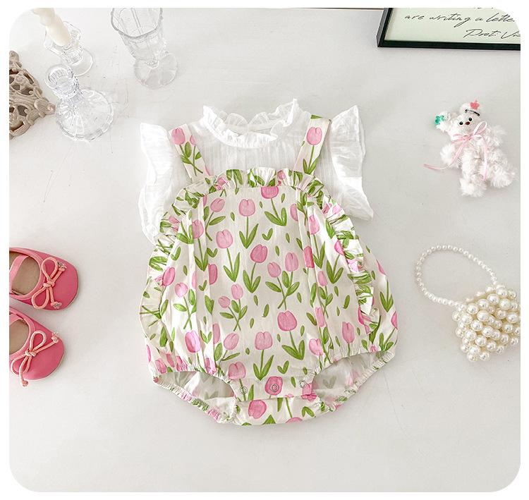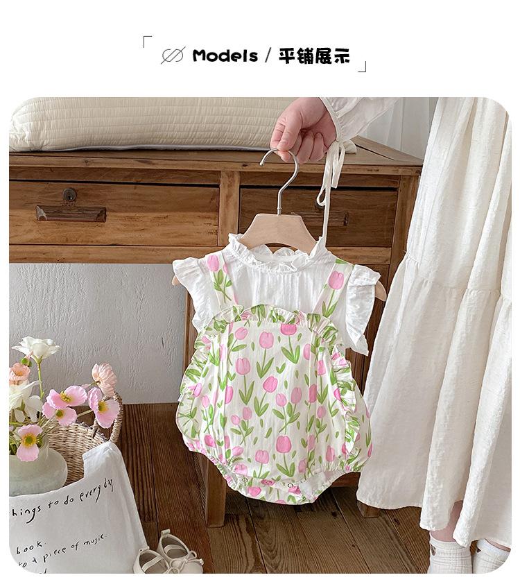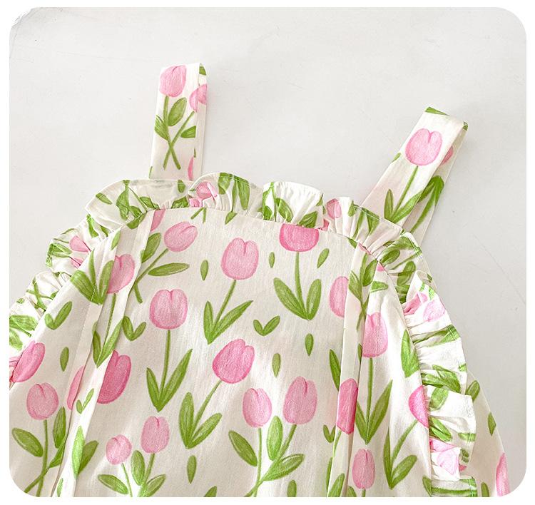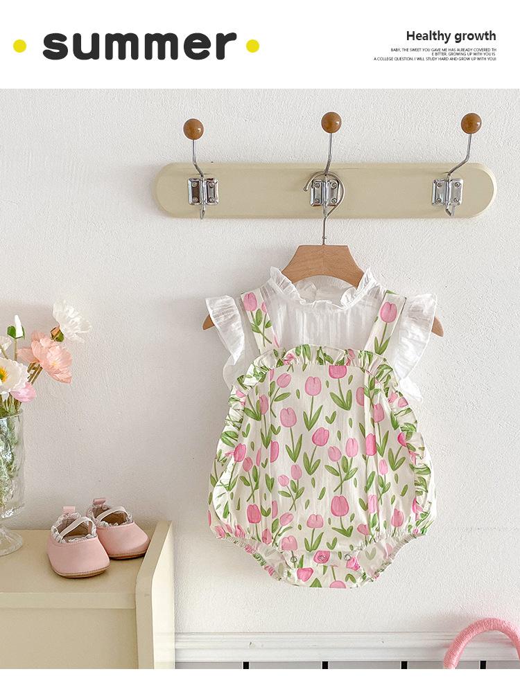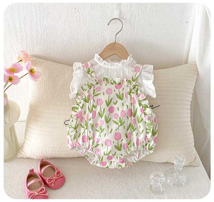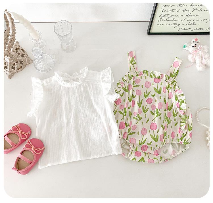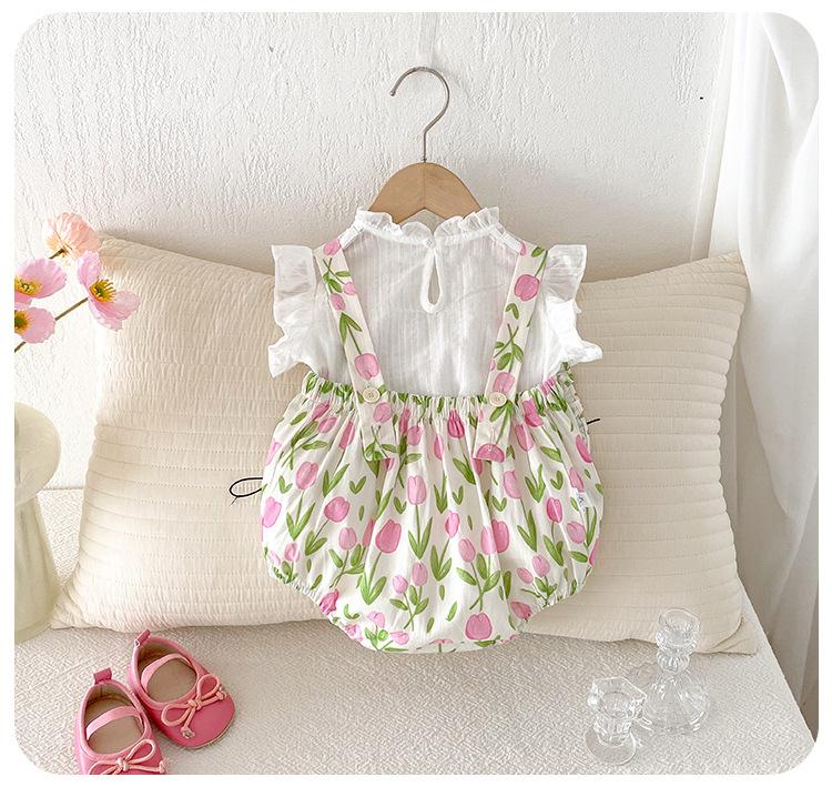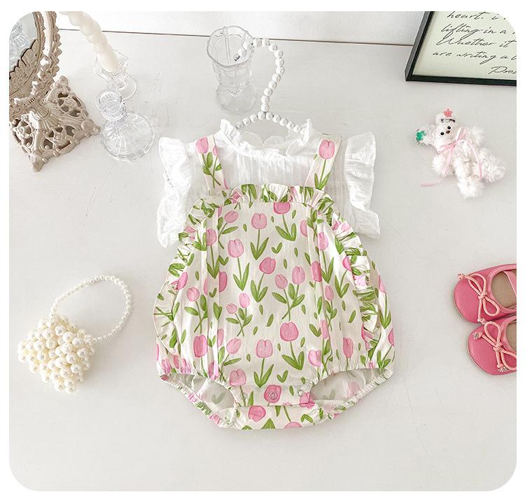 Dianxi Ropa de Verano para Bebé Bolsa de Flores Conjunto de Ropa de Una Pieza Bebé Niña Super Lindo Verano Tirantes Conjunto de Dos Piezas