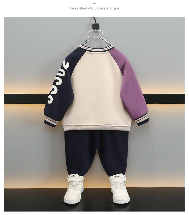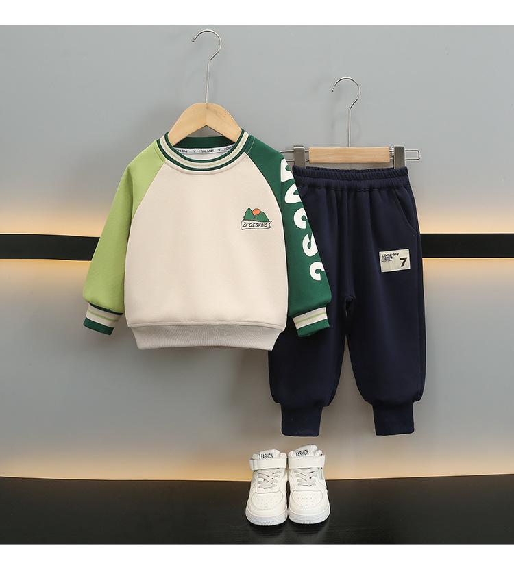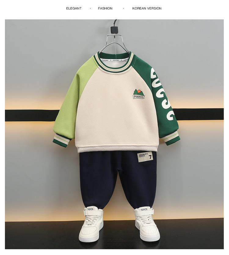 Traje de suéter para niños 2025 nueva ropa de primavera y otoño para niños, ropa de bebé de dos piezas de moda para niños, tendencia