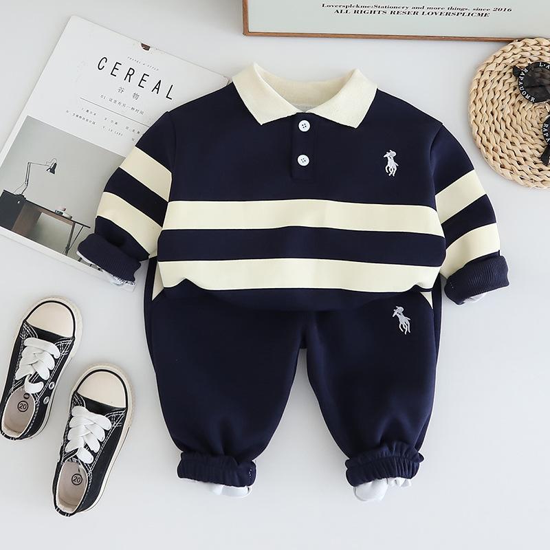 Gray children's polo shirt suit, Beige children's polo shirt suit, Navy blue children's polo shirt suit