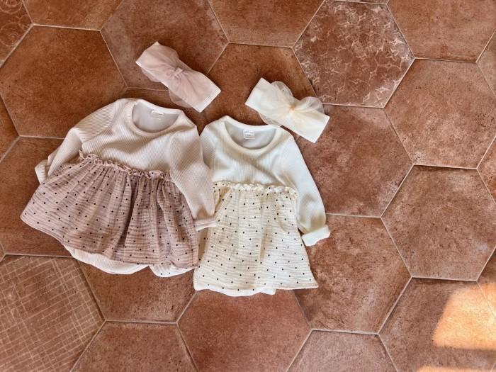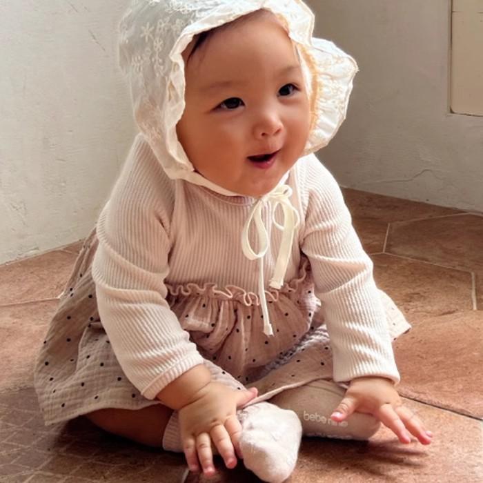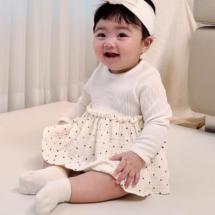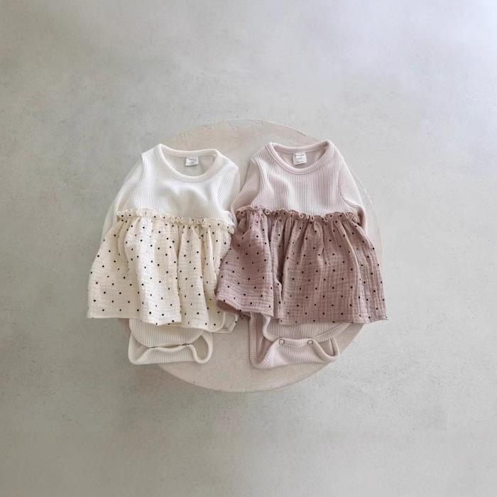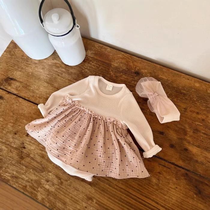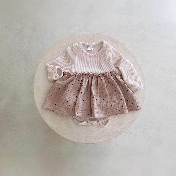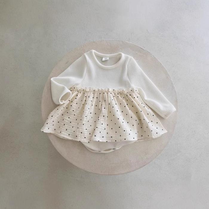 Vestido de liebre pedo de primavera y otoño combinado de estilo coreano, falda de lunares, traje de escalada para niña, vestido de liebre de lunares con ondas elásticas