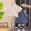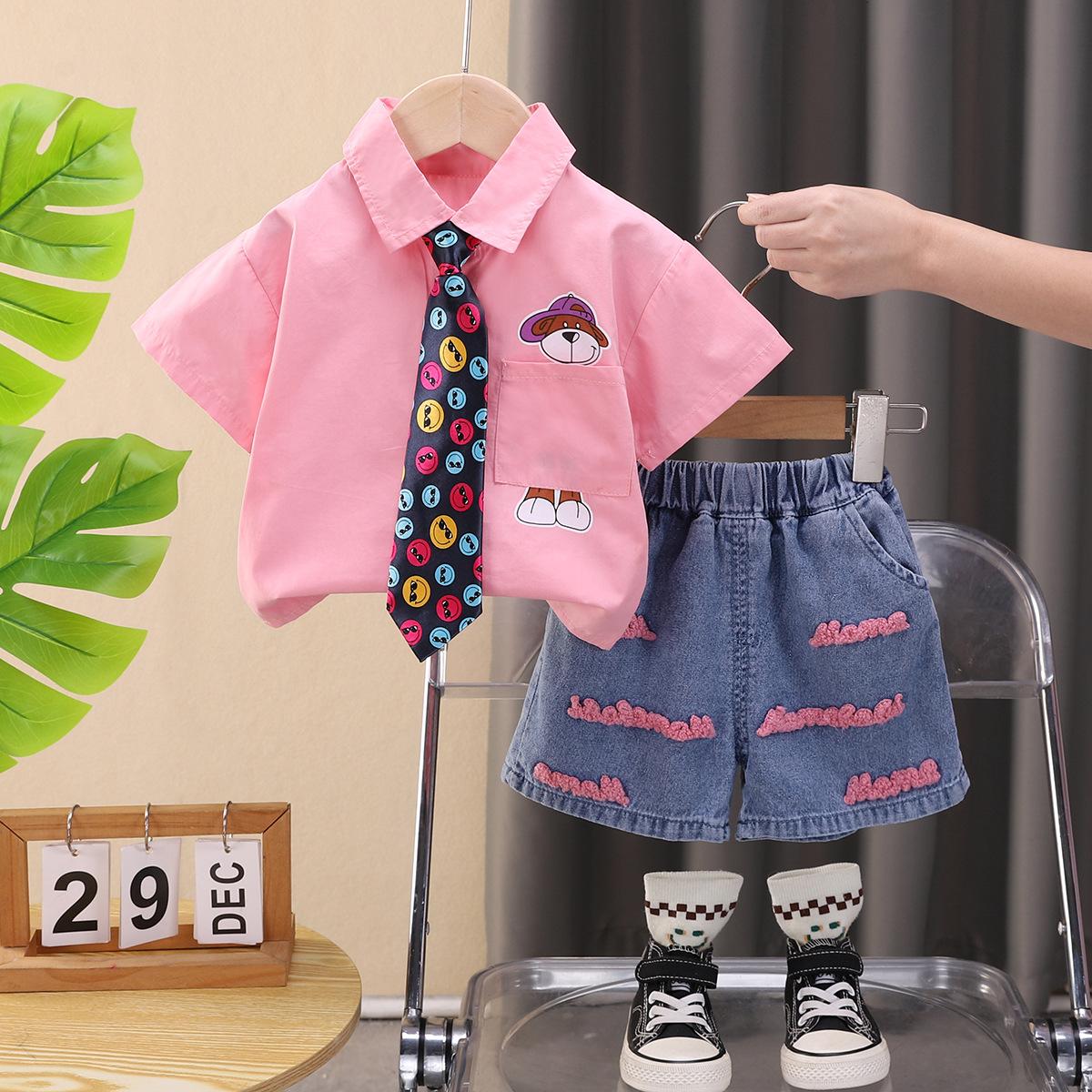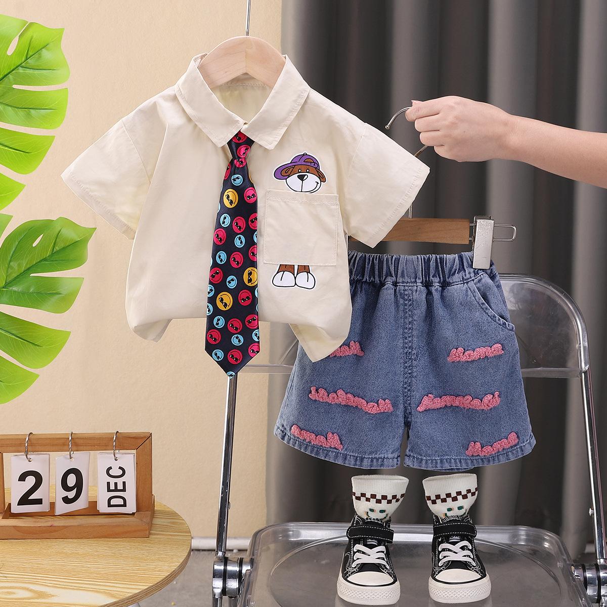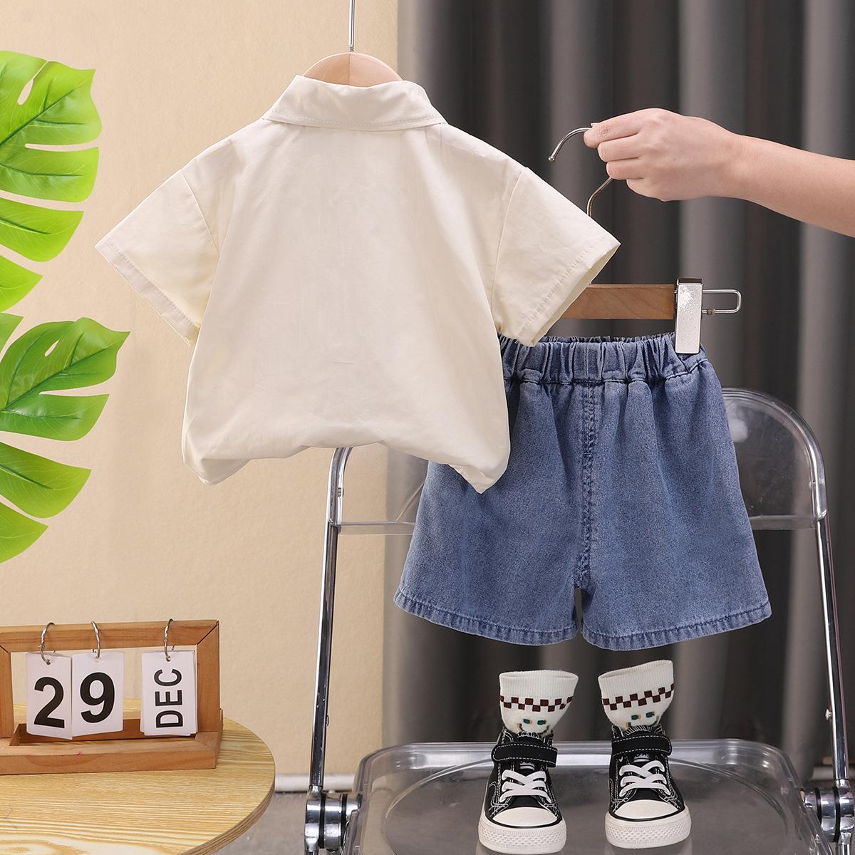 Traje de niño nuevo y atractivo, de manga corta, estilo occidental, de dos piezas, para niños, de verano, camisa fina y moderna para bebés.