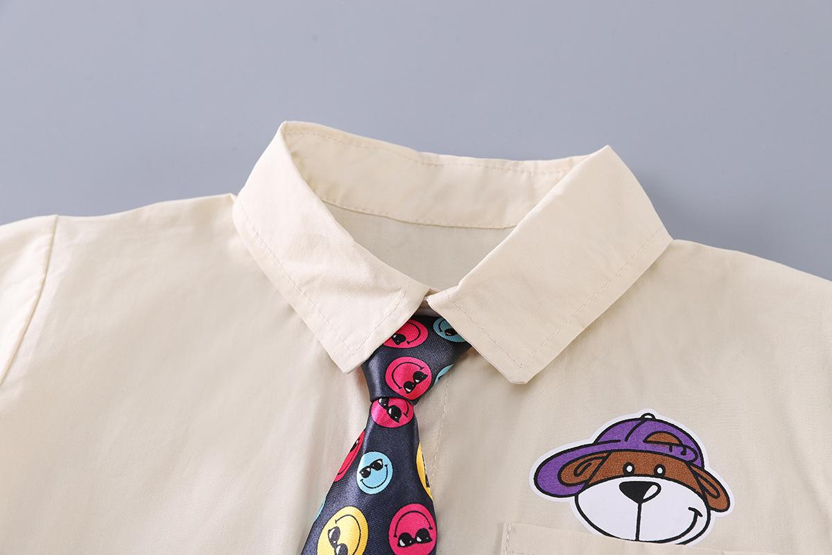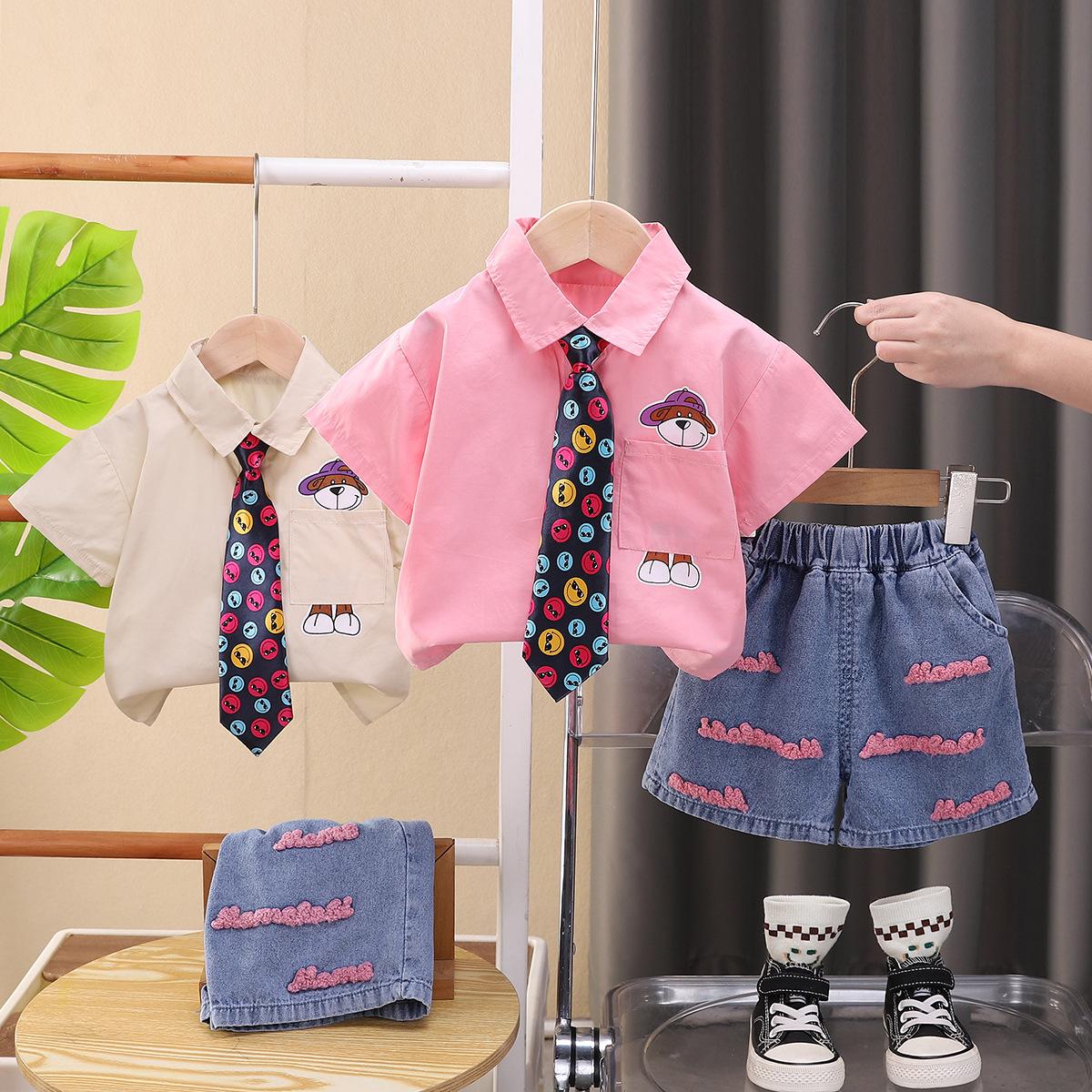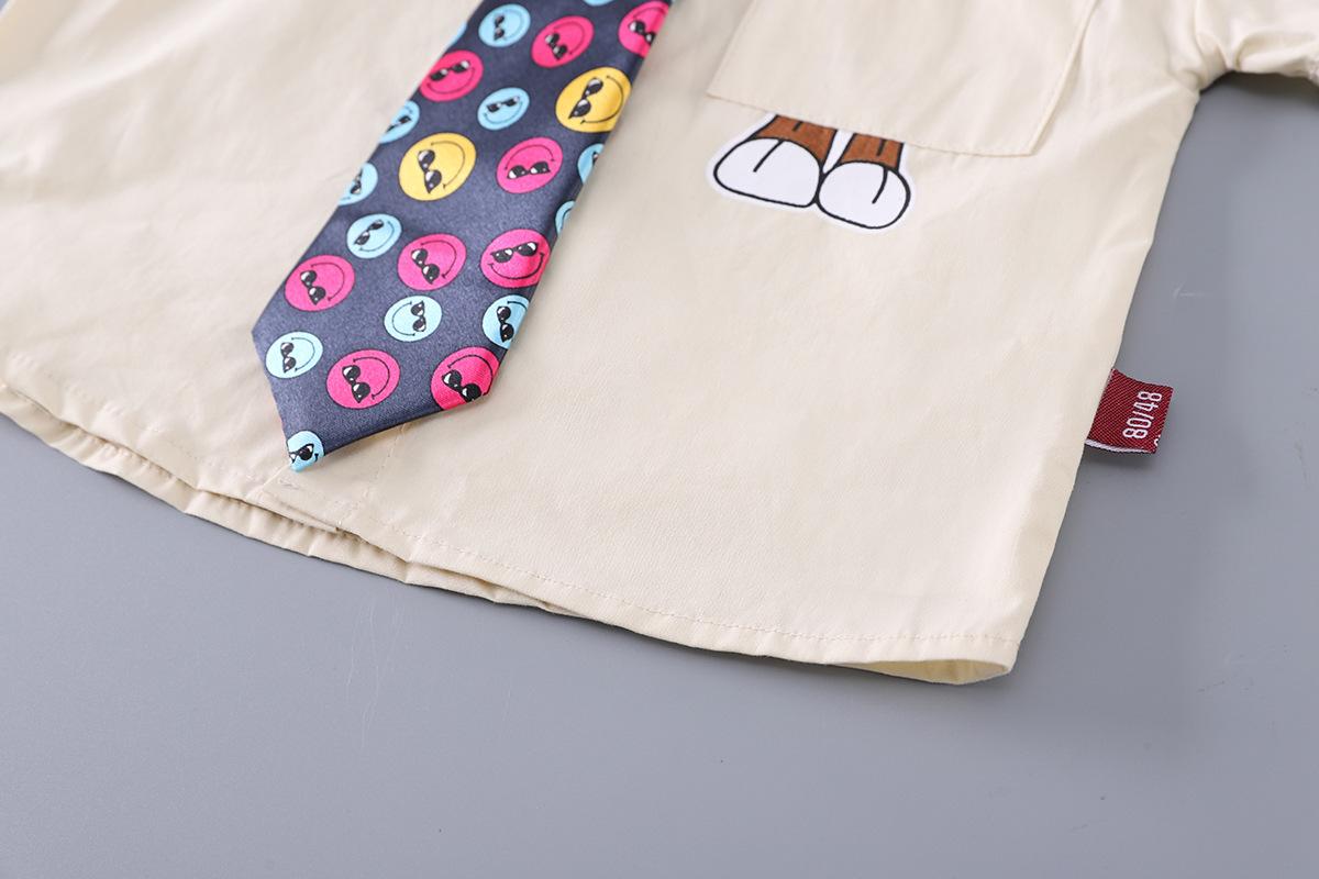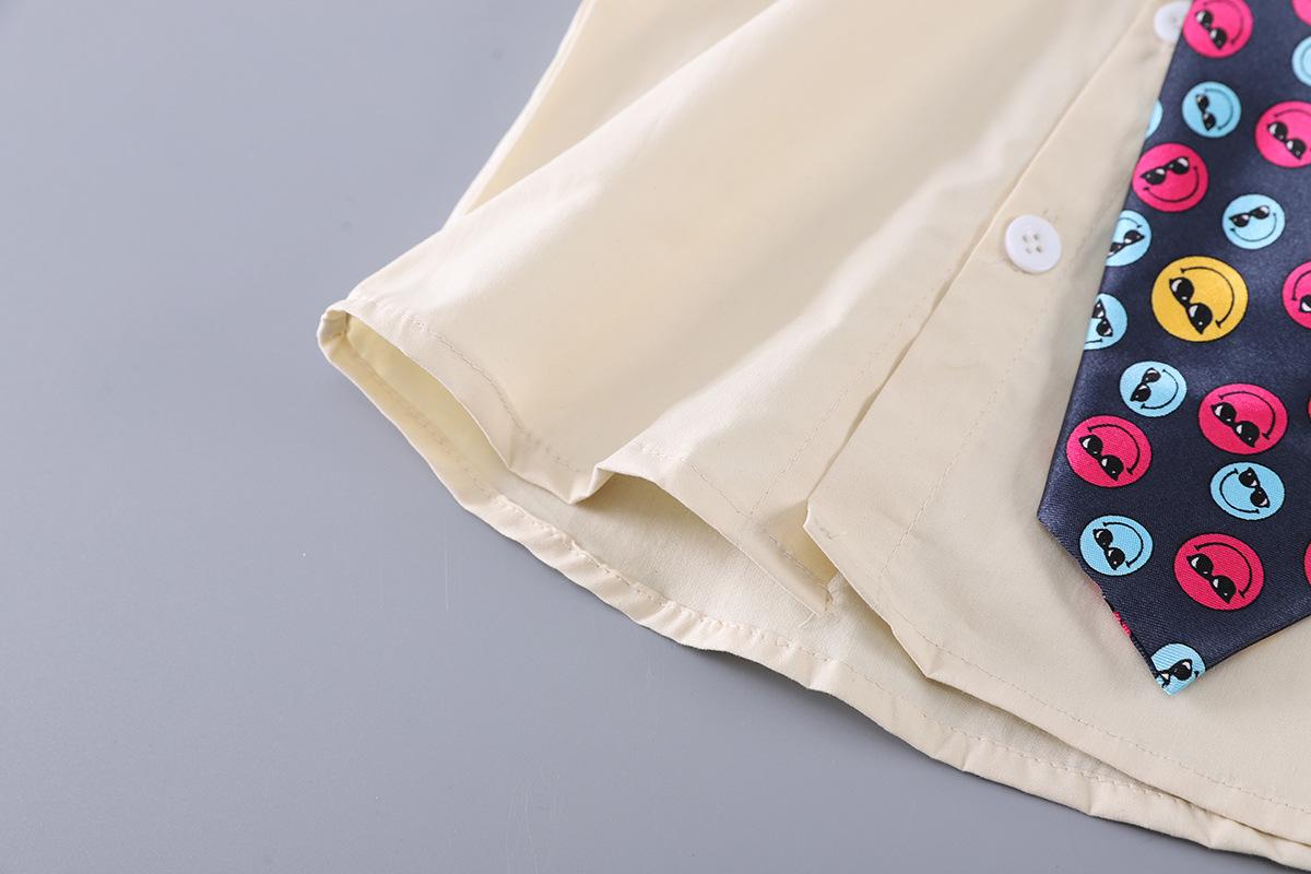Traje de niño nuevo y atractivo, de manga corta, estilo occidental, de dos piezas, para niños, de verano, camisa fina y moderna para bebés.