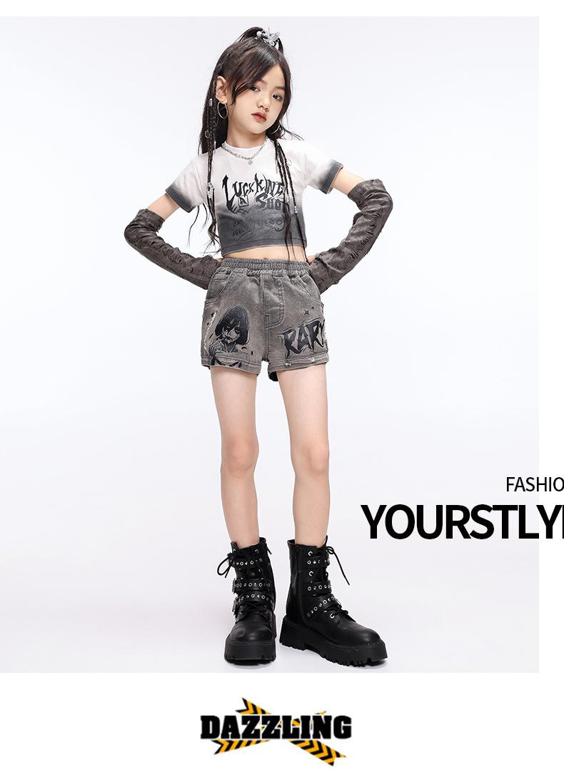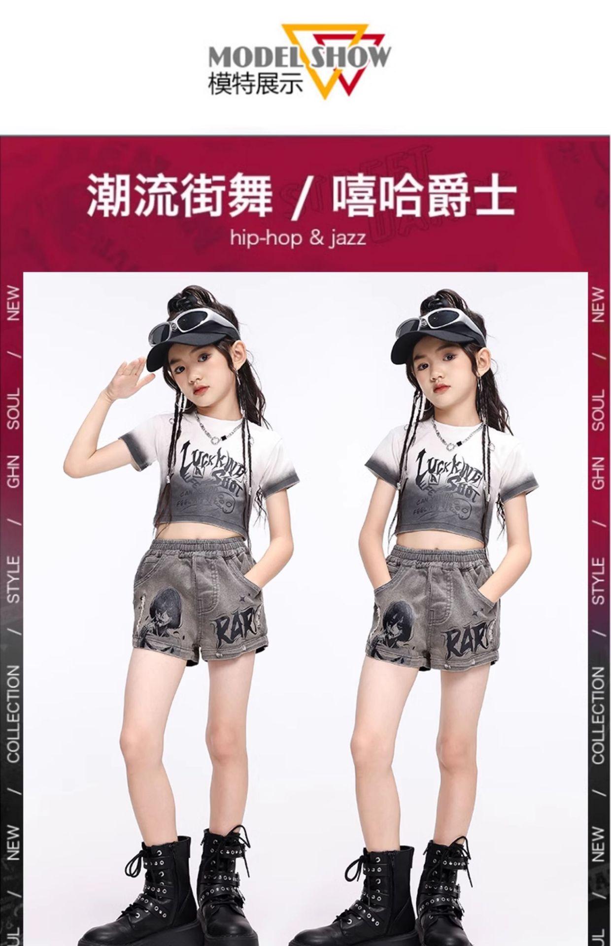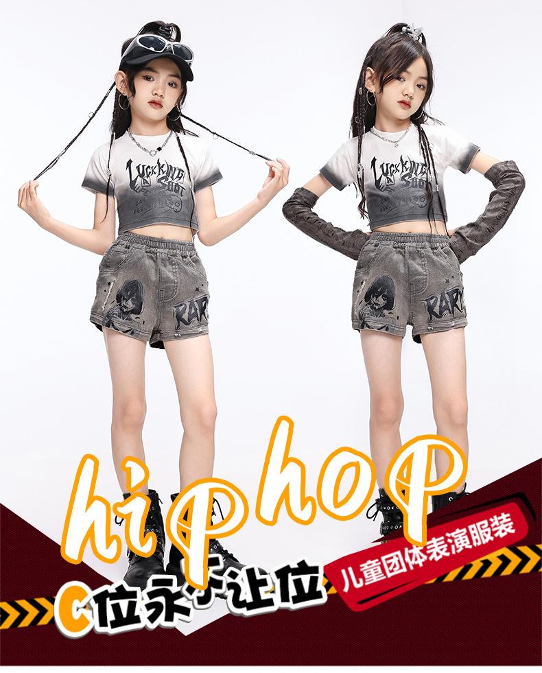 Traje de baile de jazz para niñas, marca de moda de hip hop, traje de baile callejero para niñas, traje de actuación de tambor, disfraz infantil de hip hop