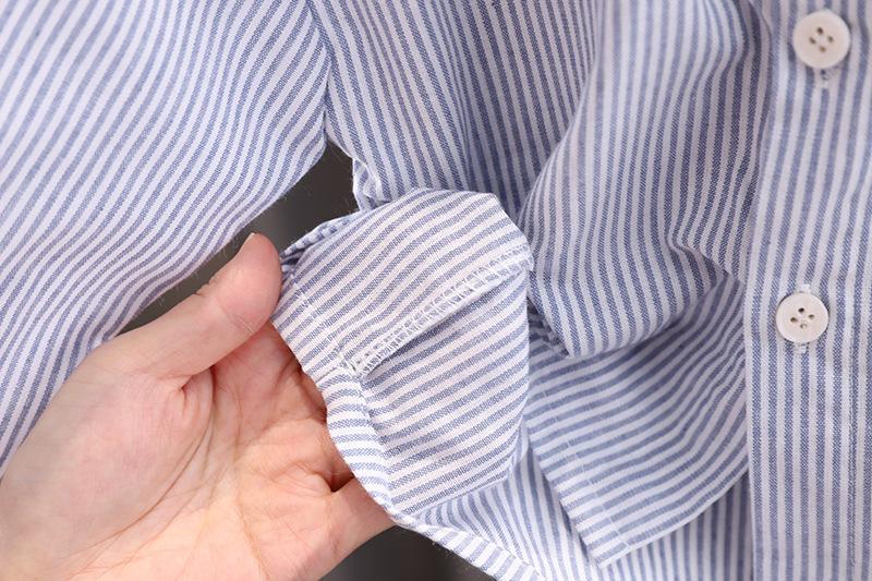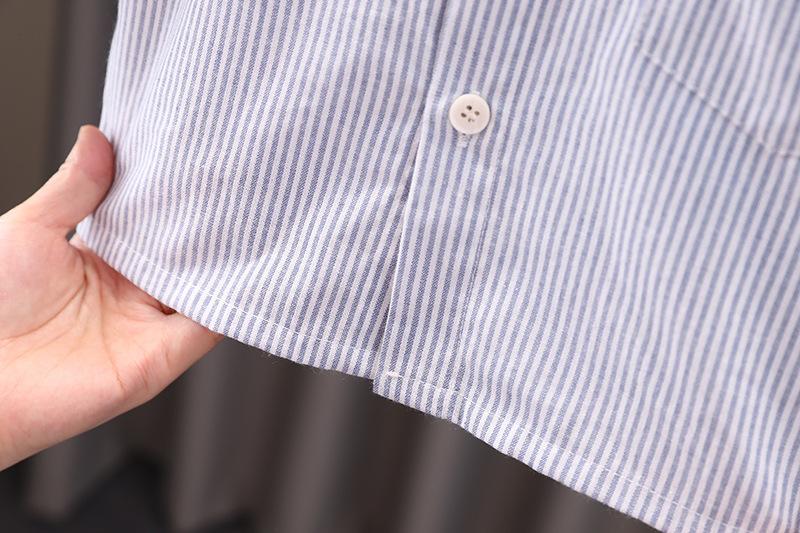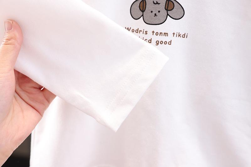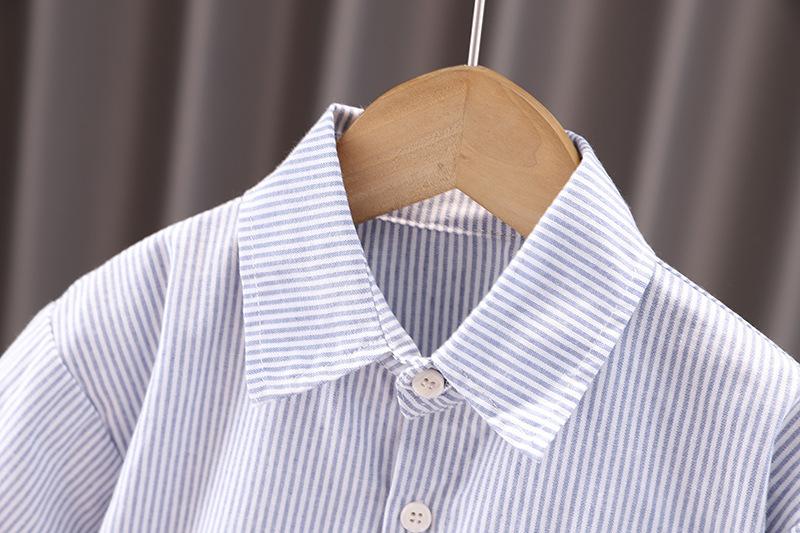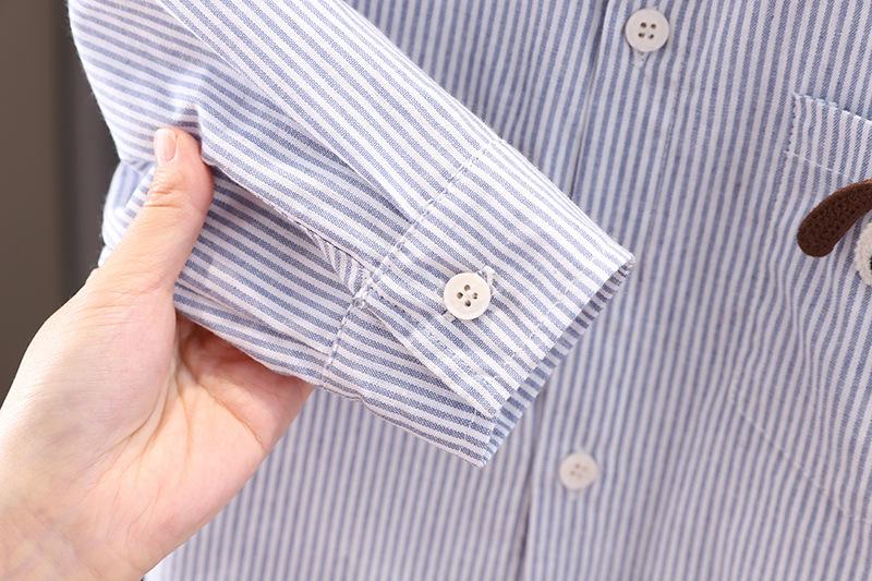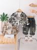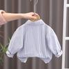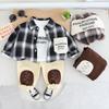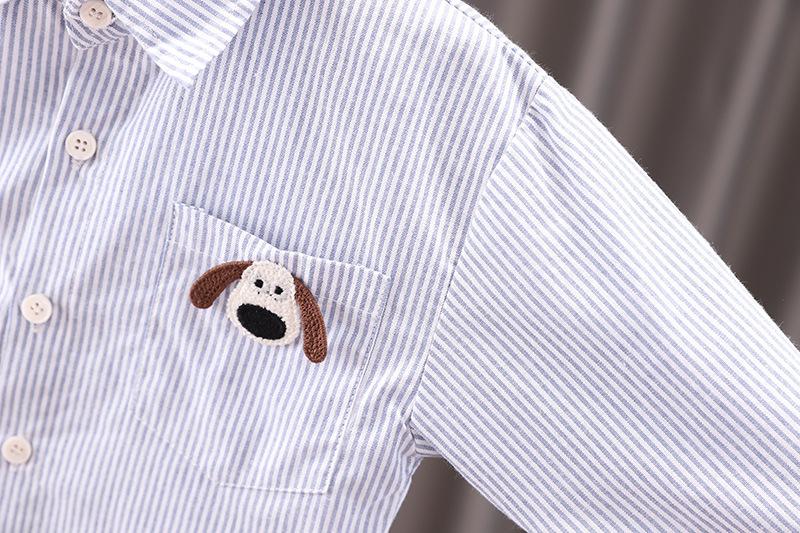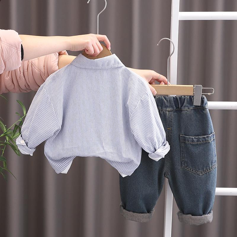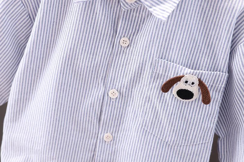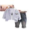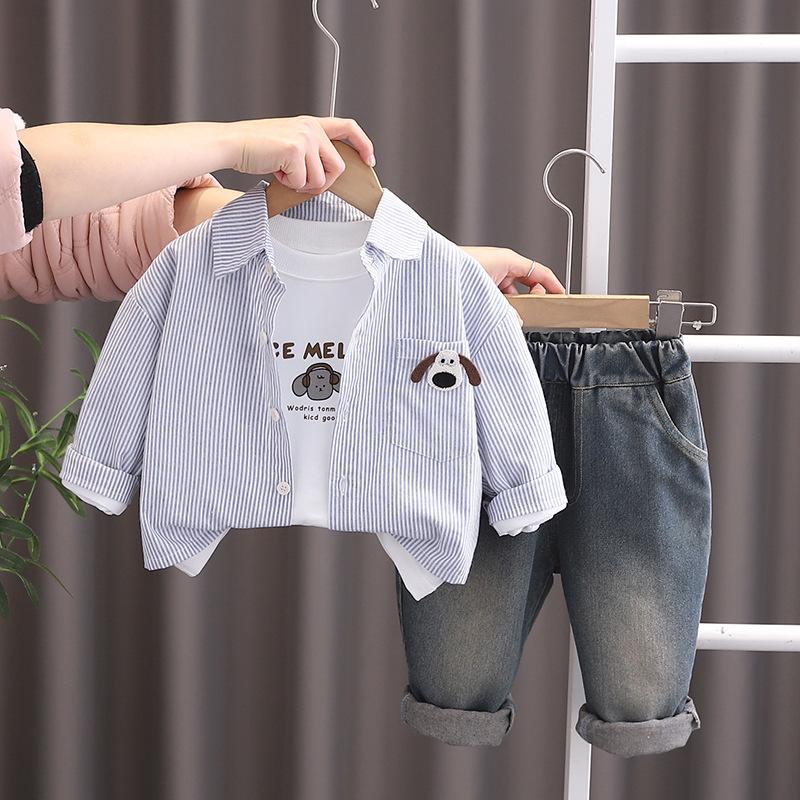 Traje de camisa de primavera y otoño para niños 2025 Nuevo conjunto de tres piezas de moda para bebé y niño con camisa vertical de cachorro y jeans