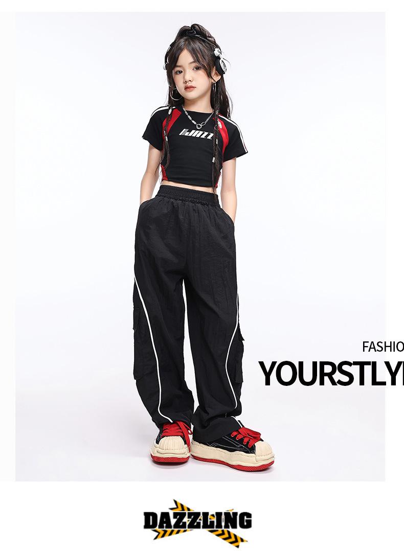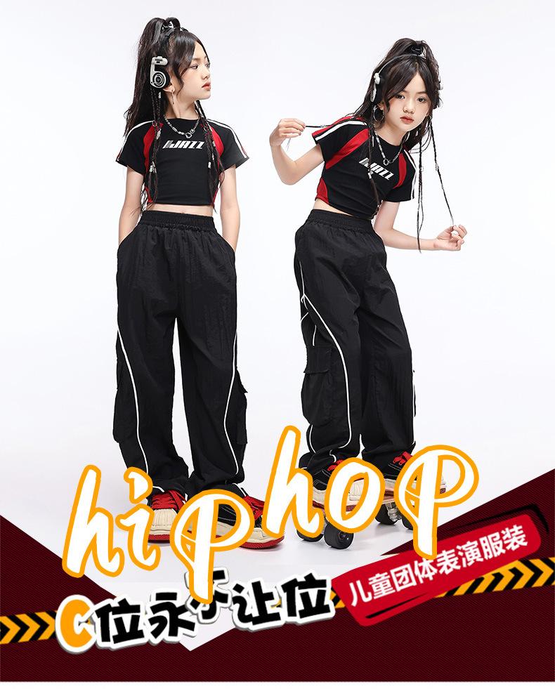 Disfraz de baile de jazz para niñas, ropa de marca de moda de hip hop para niños, disfraz de baile callejero, disfraz de actuación de hip hop para niñas.