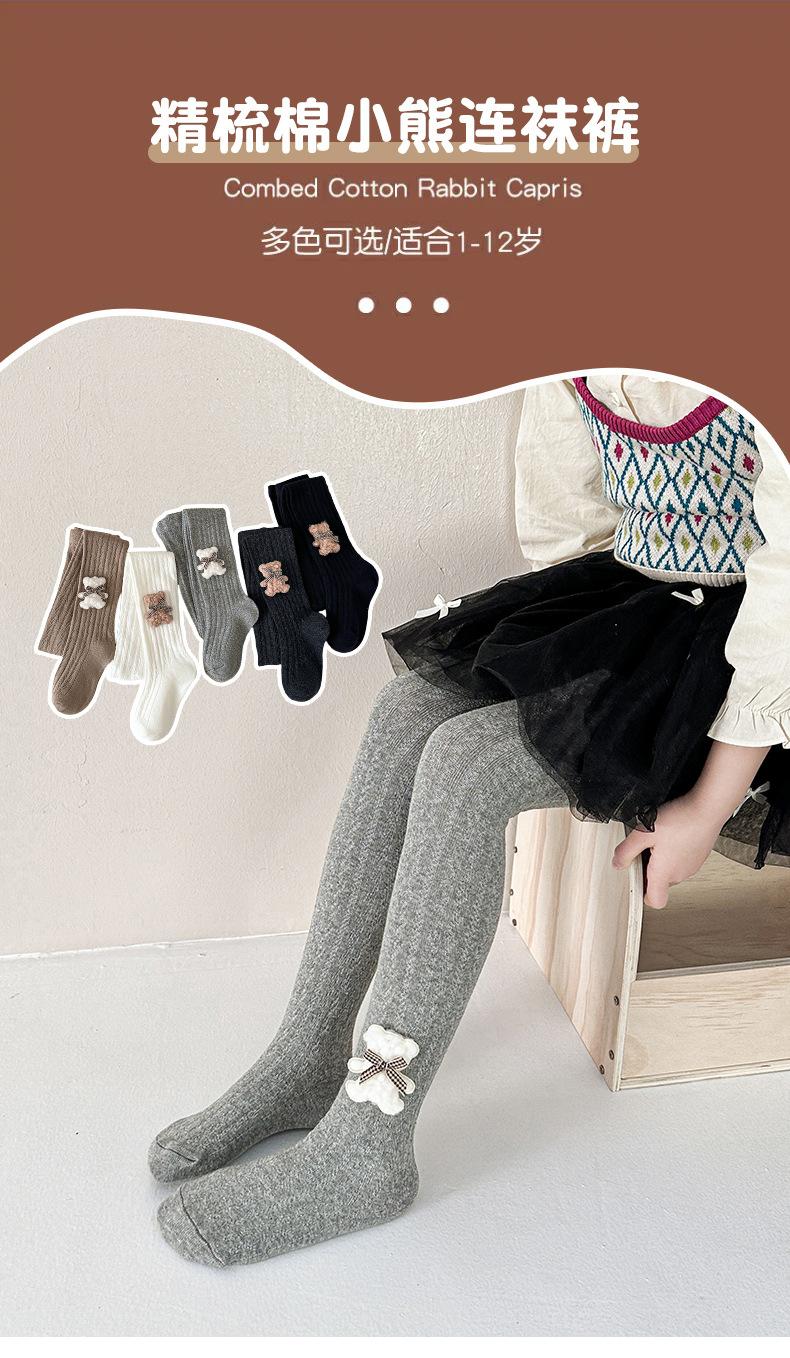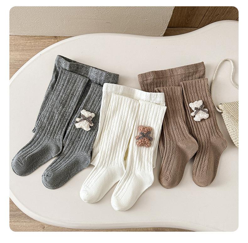 Nuevas medias de primavera y otoño para niños, accesorios de oso de algodón peinado, leggings para niñas, calcetines, medias para niños, venta al por mayor