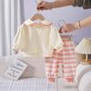 Ropa para niños, primavera, rayas, nuevo, dos piezas, estilo coreano, ropa de bebé, ropa de primavera para mujer, pantalones para niñas, ropa de bebé