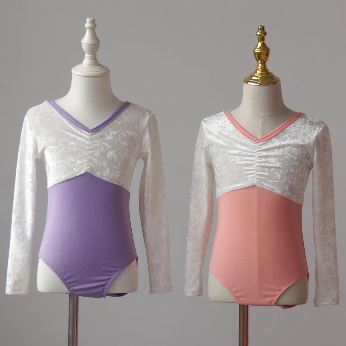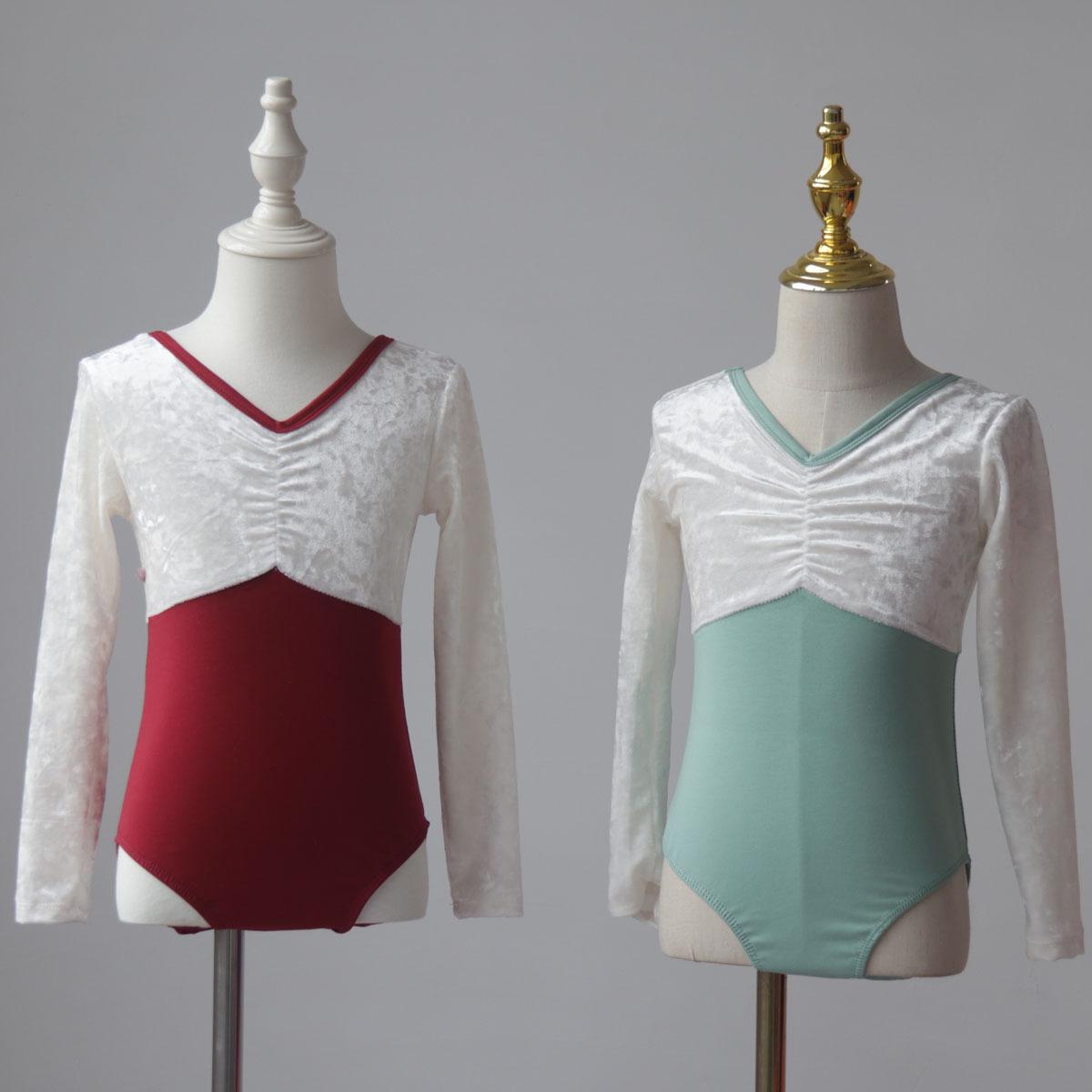Ropa de Baile de Nuevo Estilo para Niñas Ropa de Baile de Otoño e Invierno Ropa de Práctica de Danza China Falda de Danza Ballet de Manga Larga de Terciopelo