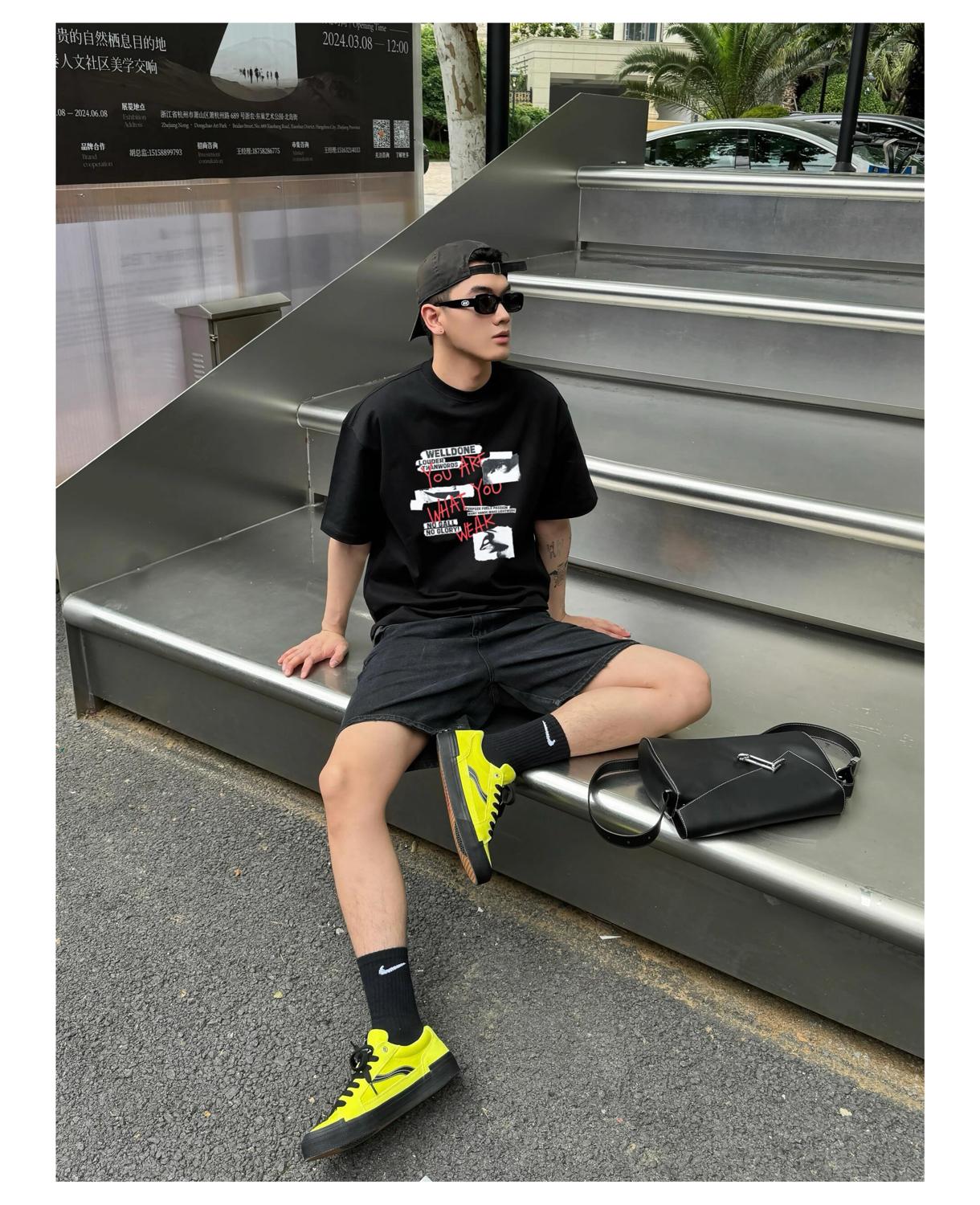 WE11DONE Funk Niche Trendy Brand American Casual Summer Couple Camiseta holgada de algodón de manga corta para hombre Ins