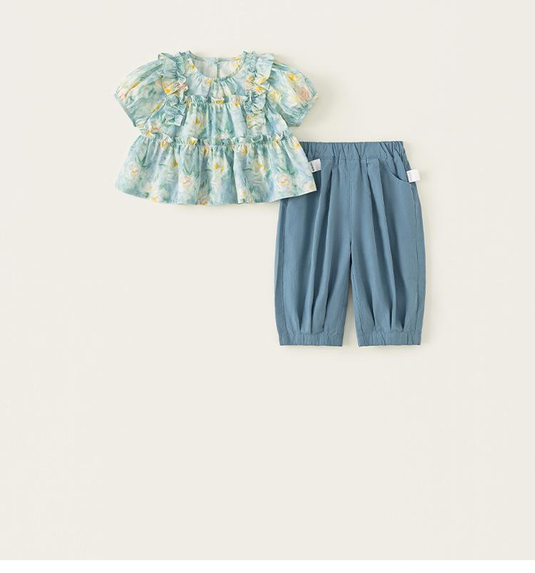 Compra Conjunto de dos piezas para niña Yubao Children's Wear con estampado floral, novedad de verano 2025 al por mayor en Joom.pro