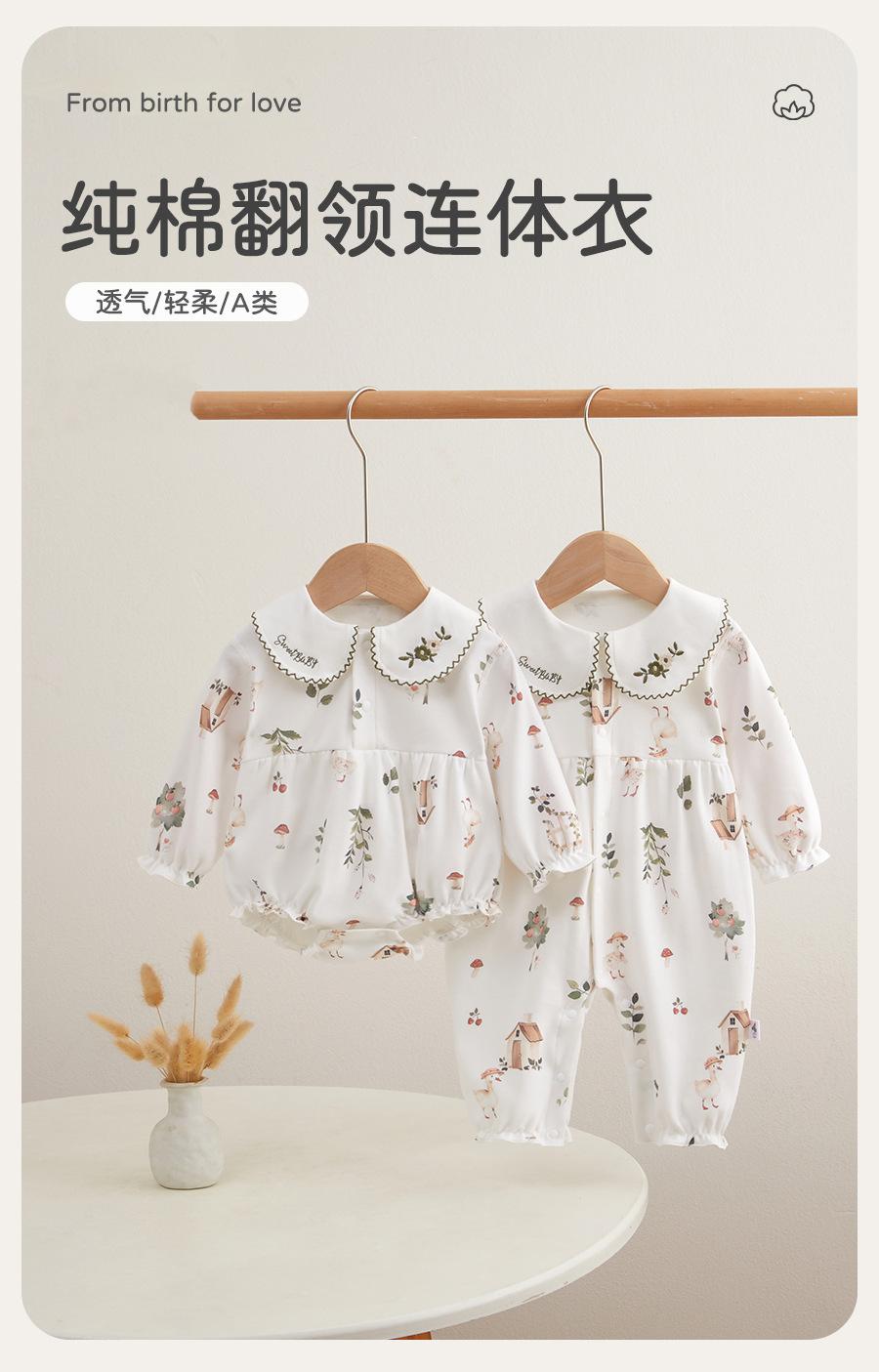 Mono de bebé niña de algodón puro, ropa de bebé de primavera y otoño, ropa de princesa para escalar, ropa de liebre, ropa de bebé Anyang