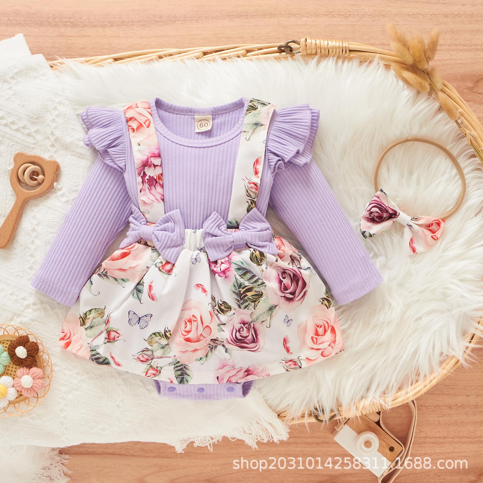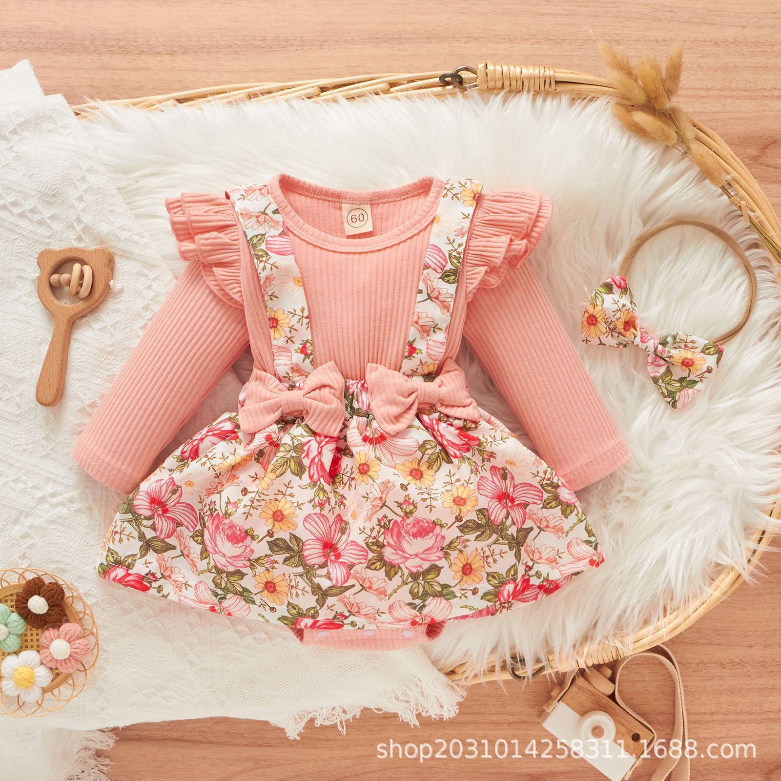 Compra Vestido Harper de Tirantes con Lazo para Bebé de Comercio Exterior Transfronterizo de Amazon, Manga Volante, Falso de Dos Piezas, Mono para Niña al por mayor en Joom.pro