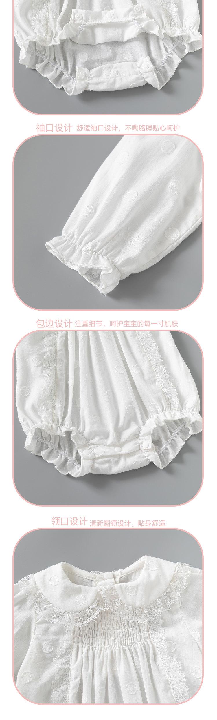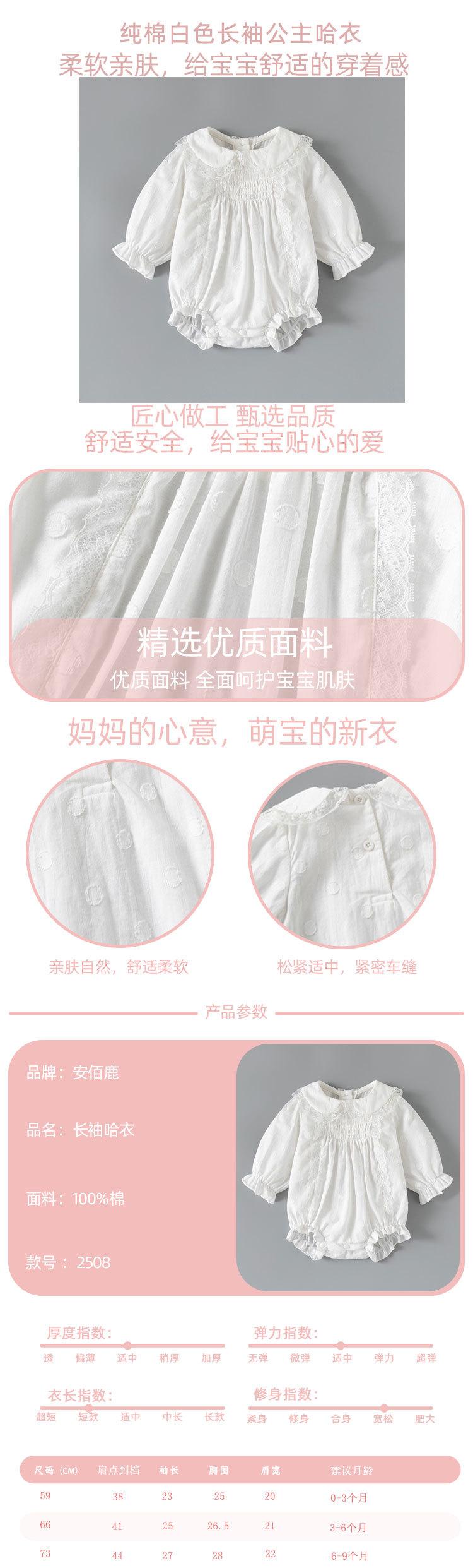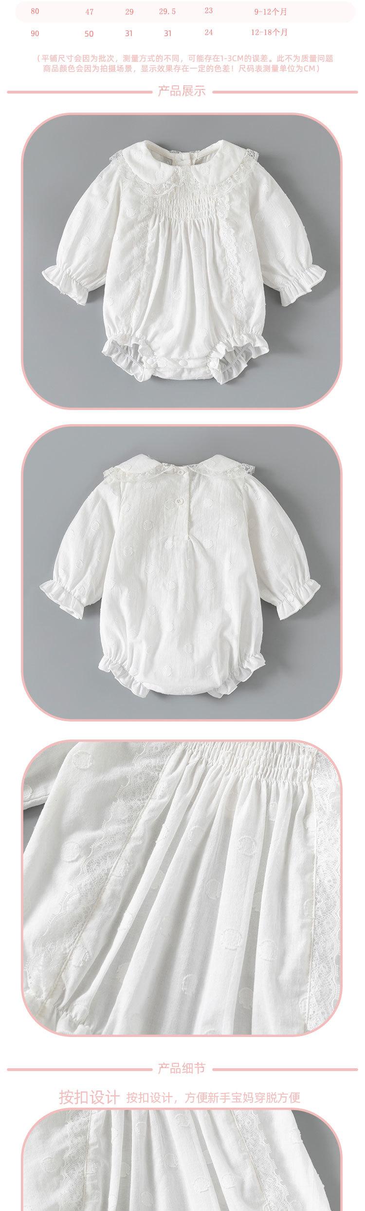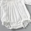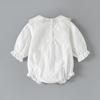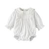 Ropa de bebé niña de manga larga, cuello de muñeca blanco, bolsa de algodón, venta al por mayor, primavera 2025