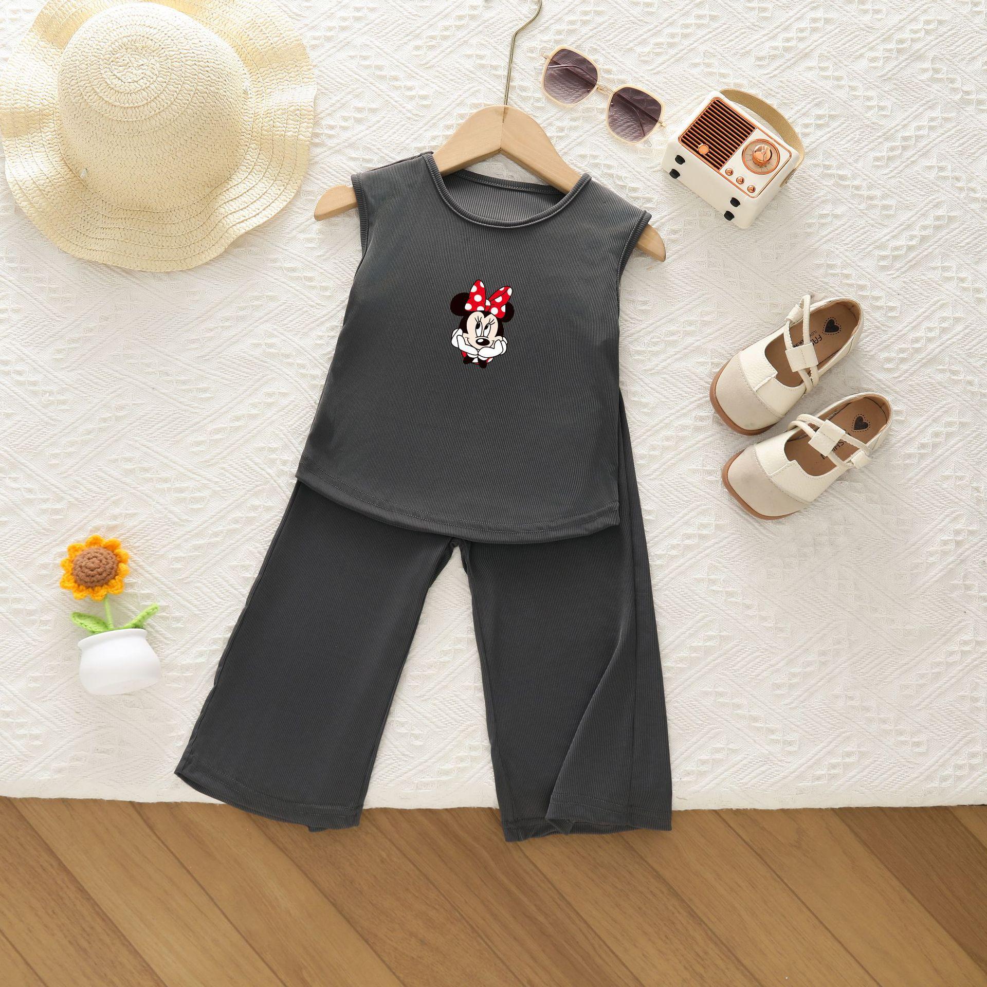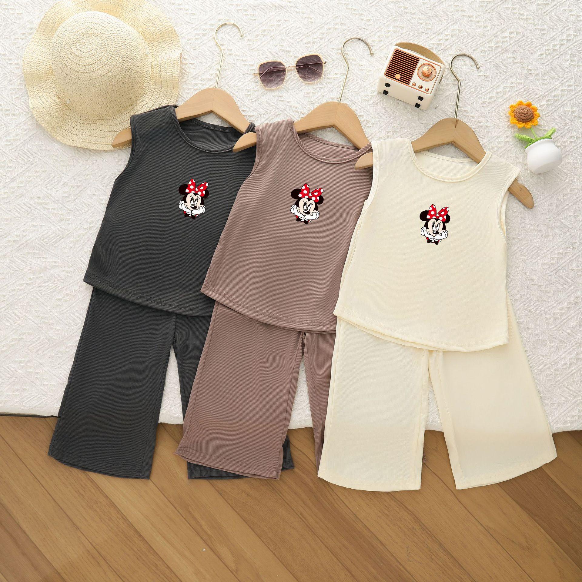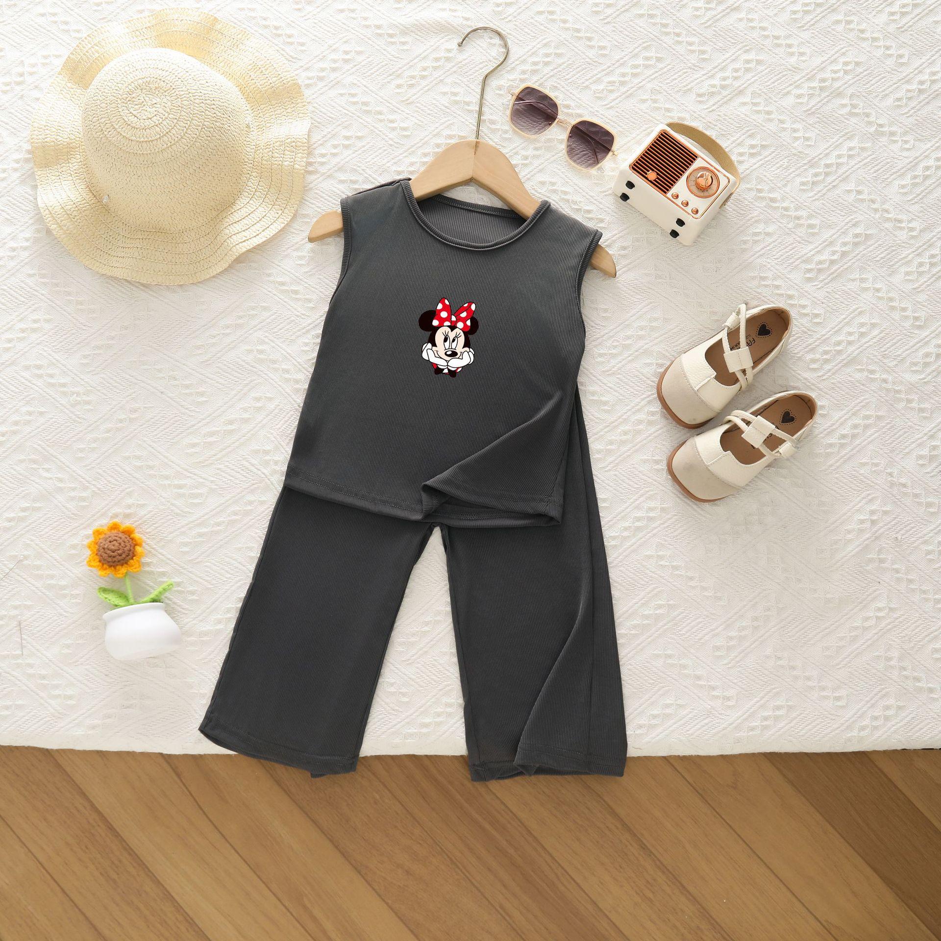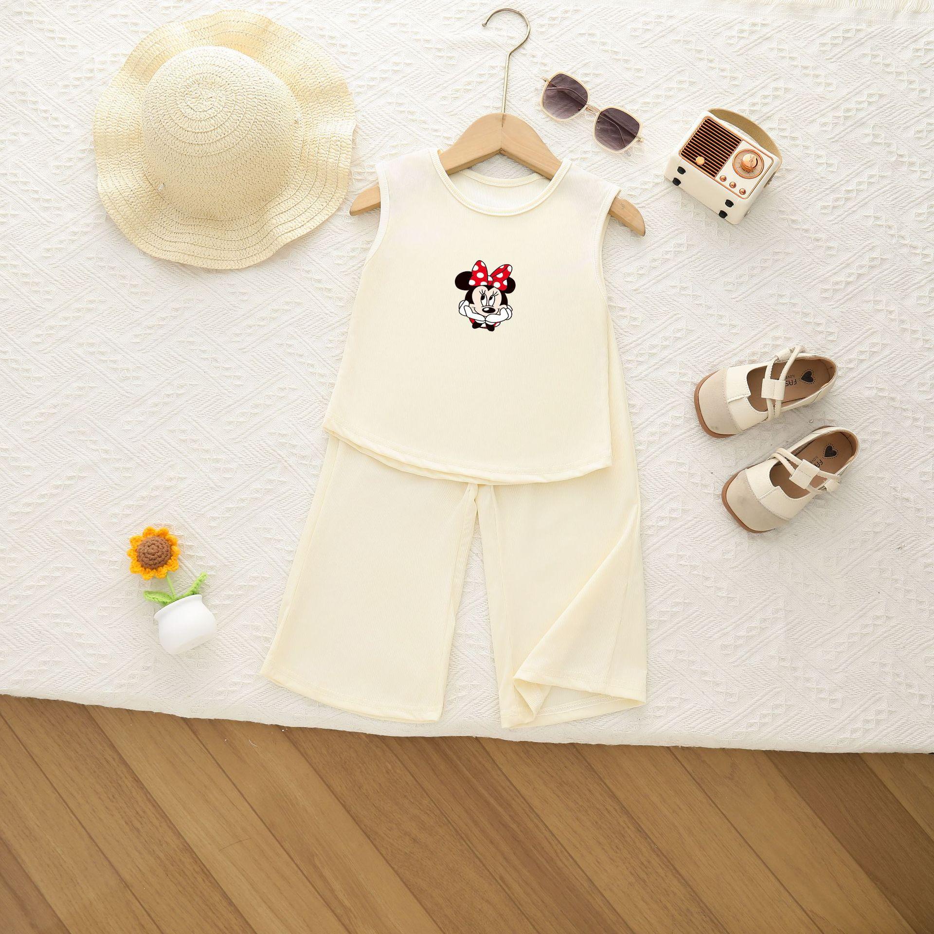 Traje de seda de hielo sin mangas para niñas, conjunto de dos piezas holgado y cómodo de verano 2025 con dibujos animados