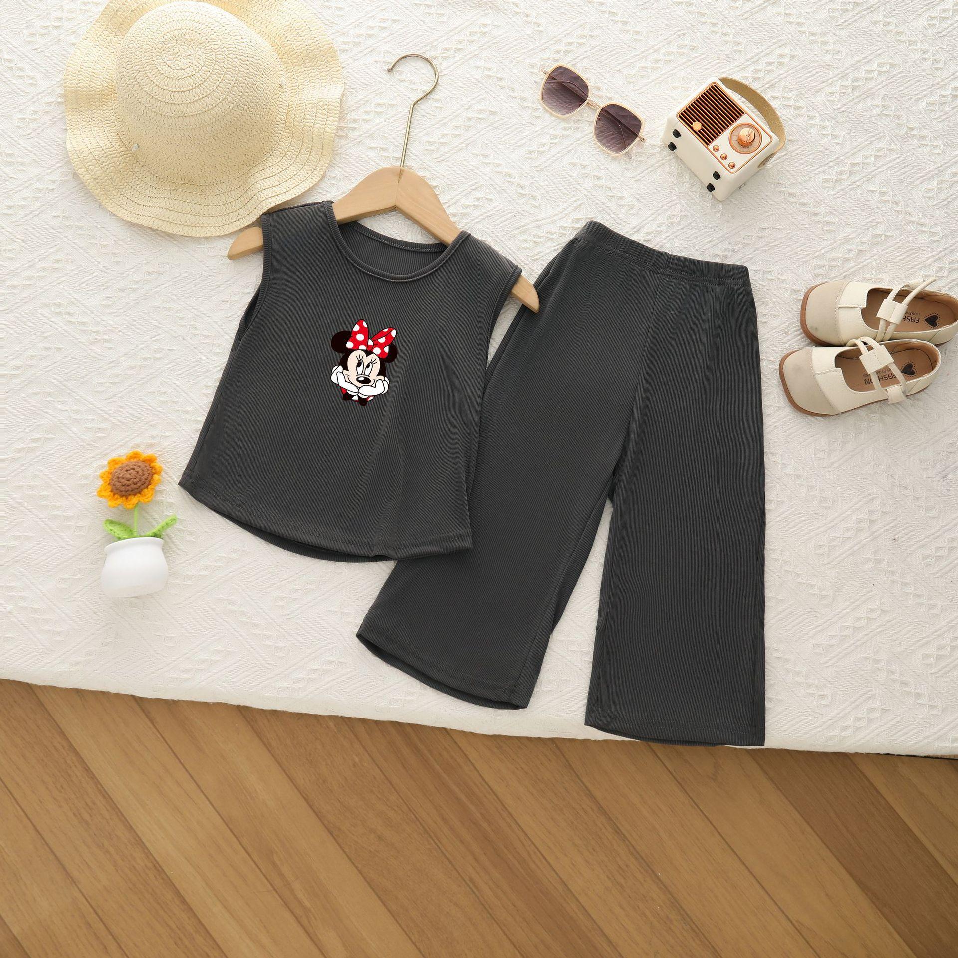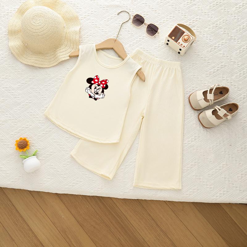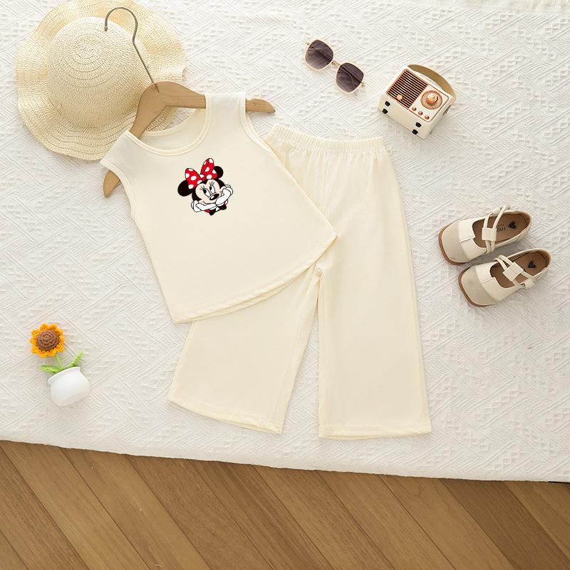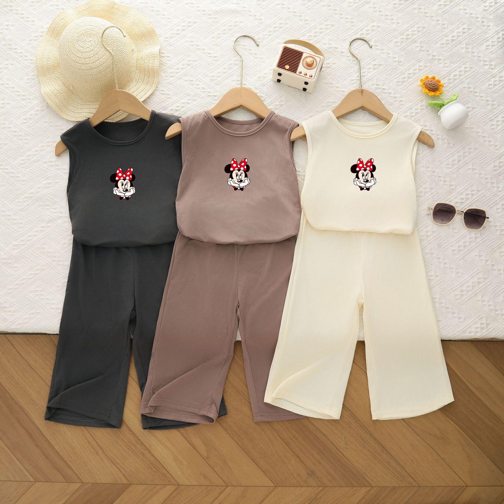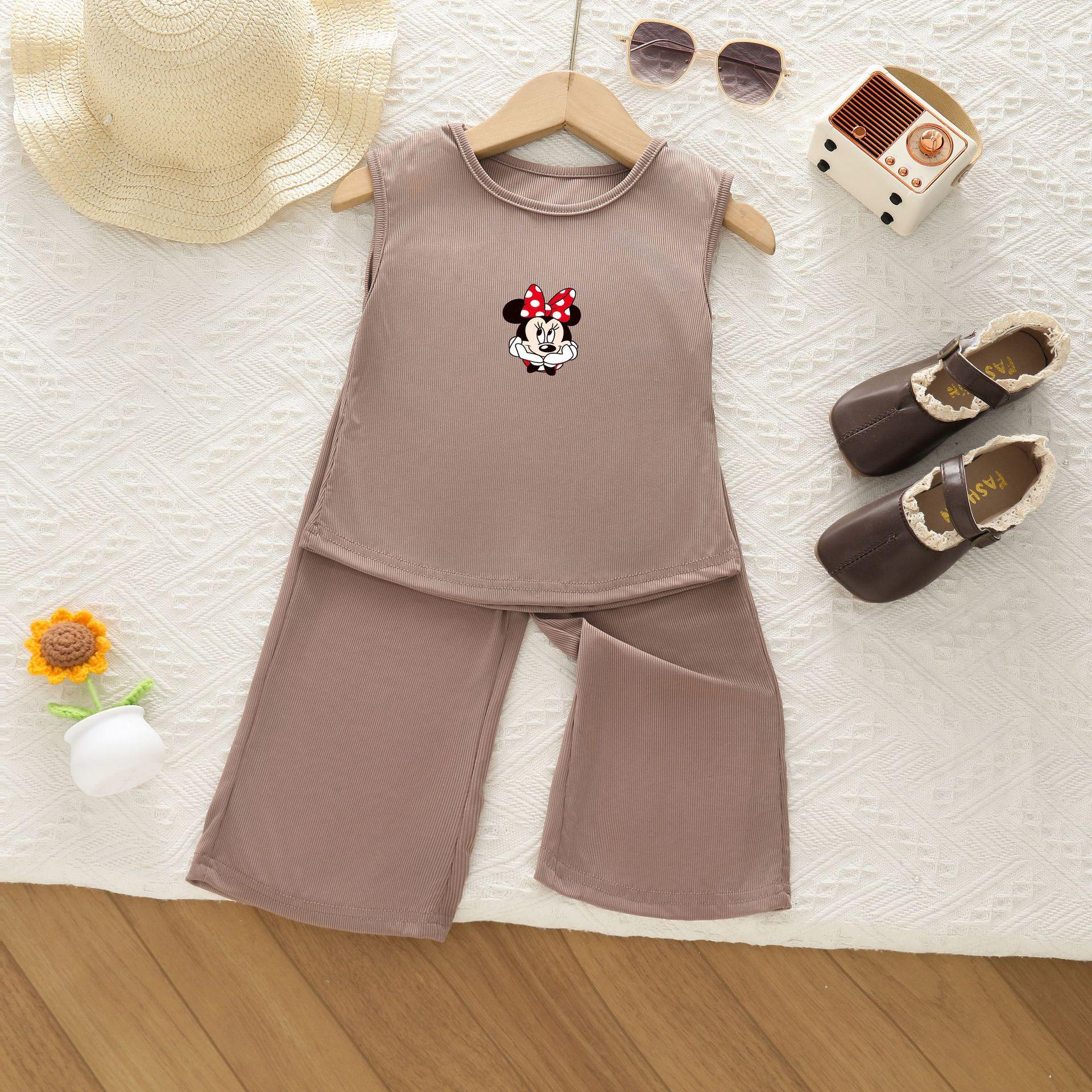 Traje de seda de hielo sin mangas para niñas, conjunto de dos piezas holgado y cómodo de verano 2025 con dibujos animados