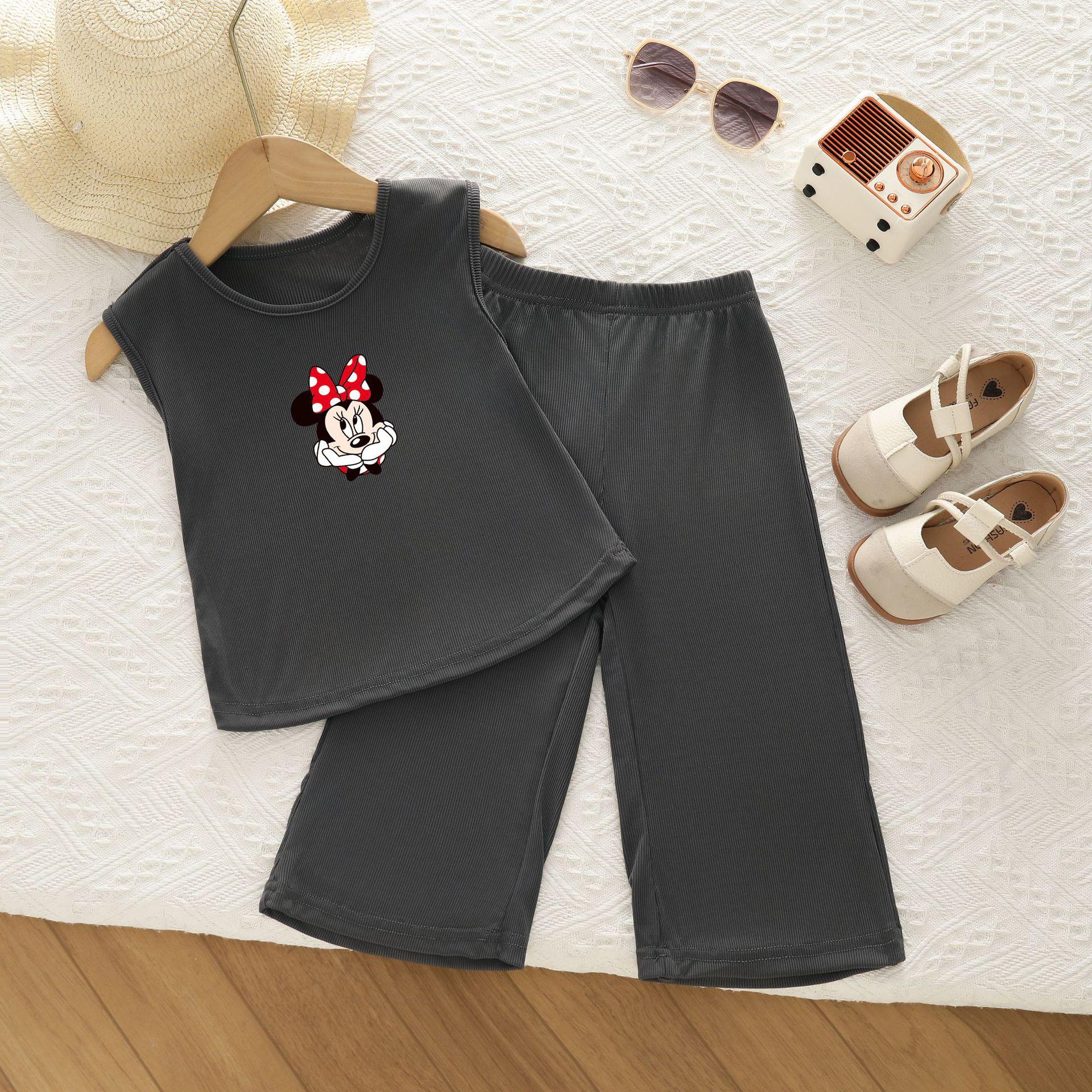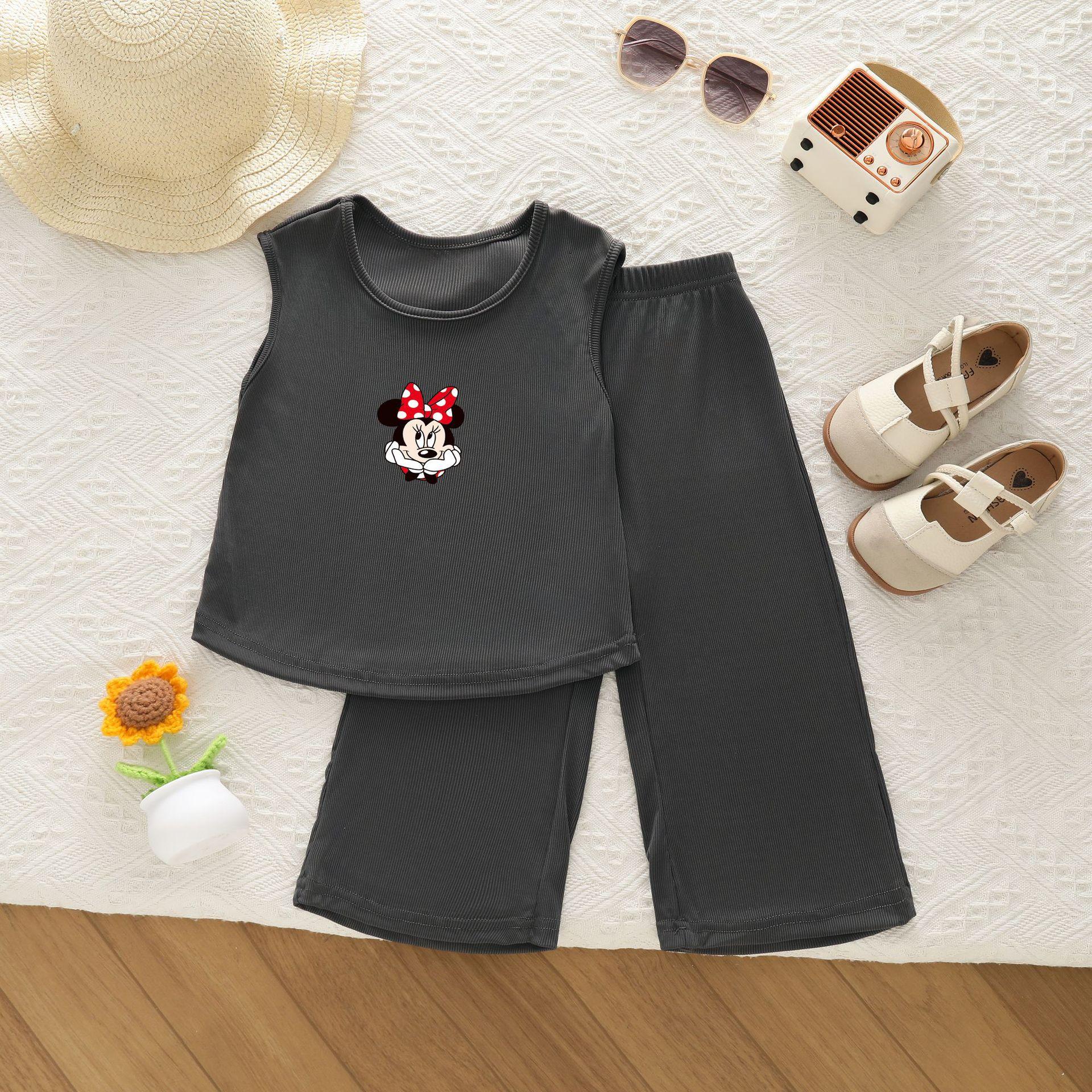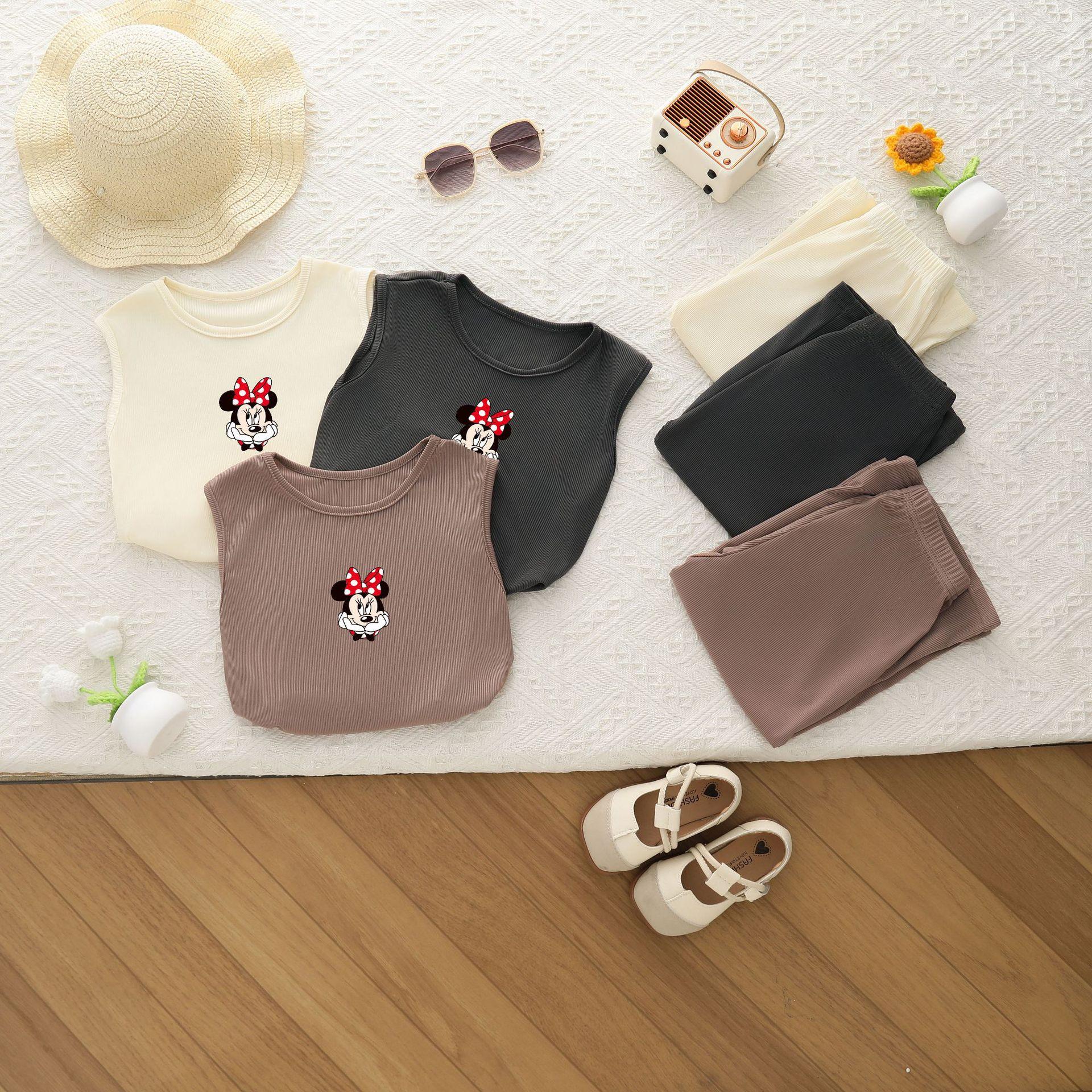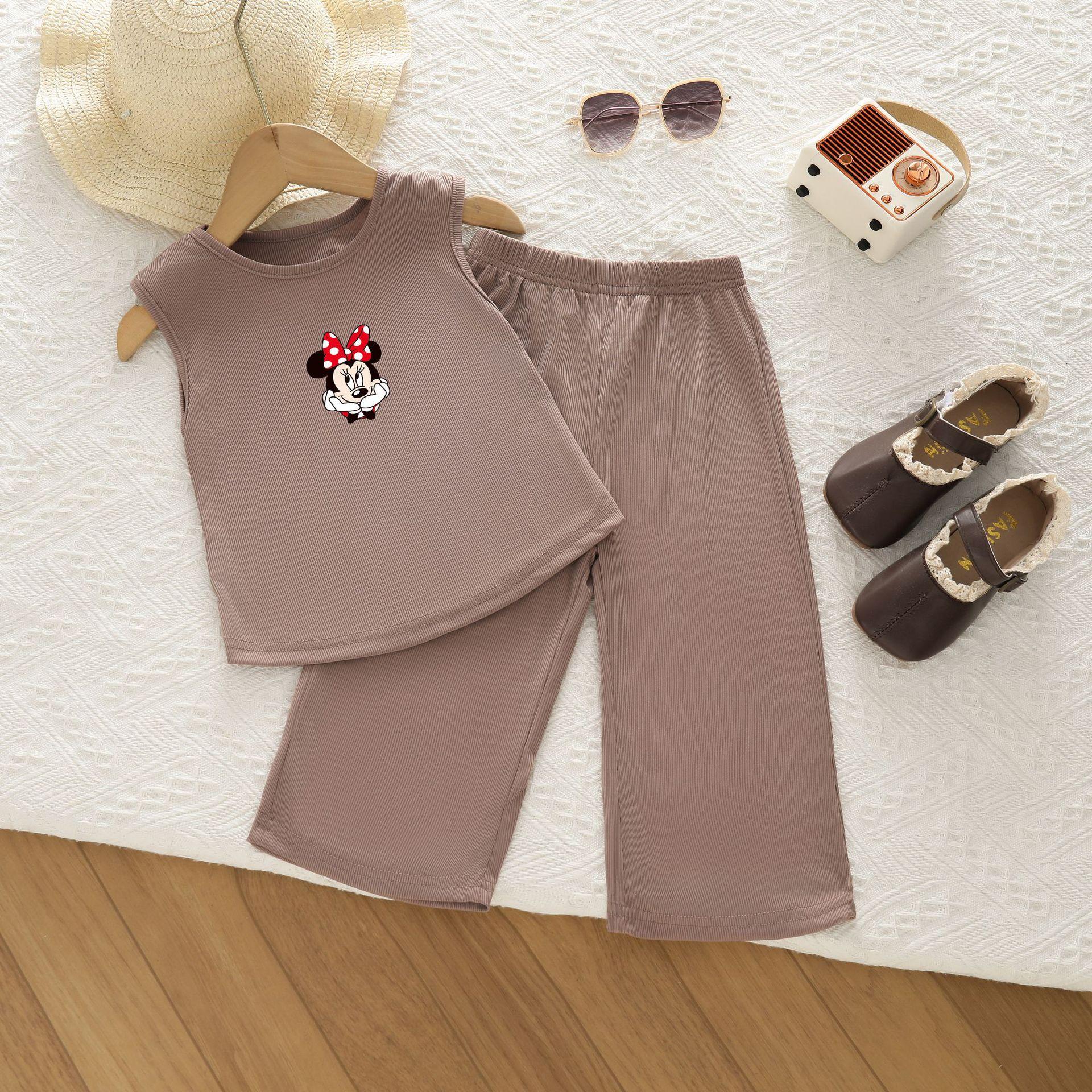 Traje de seda de hielo sin mangas para niñas, conjunto de dos piezas holgado y cómodo de verano 2025 con dibujos animados
