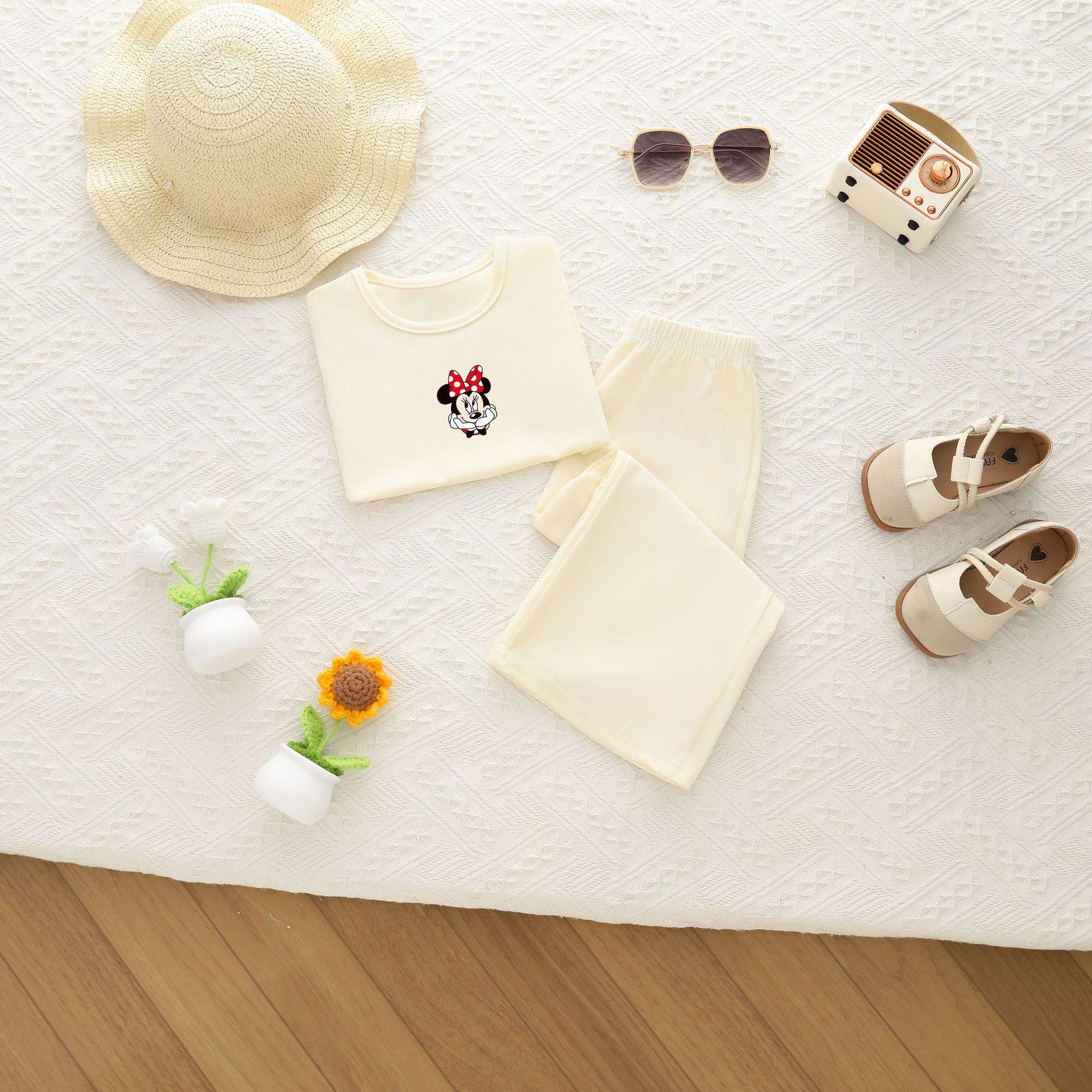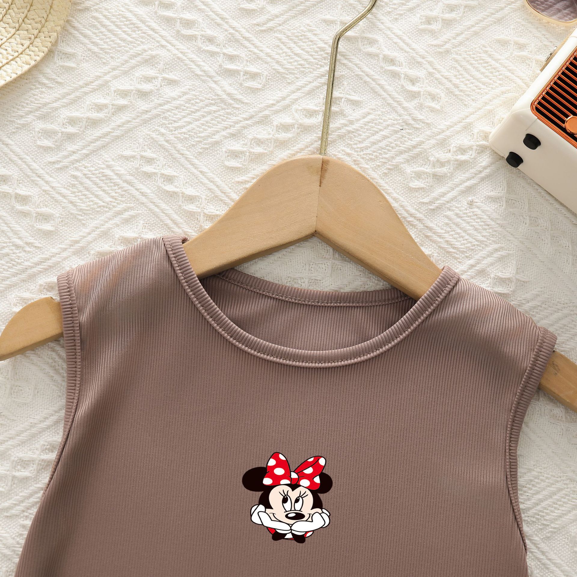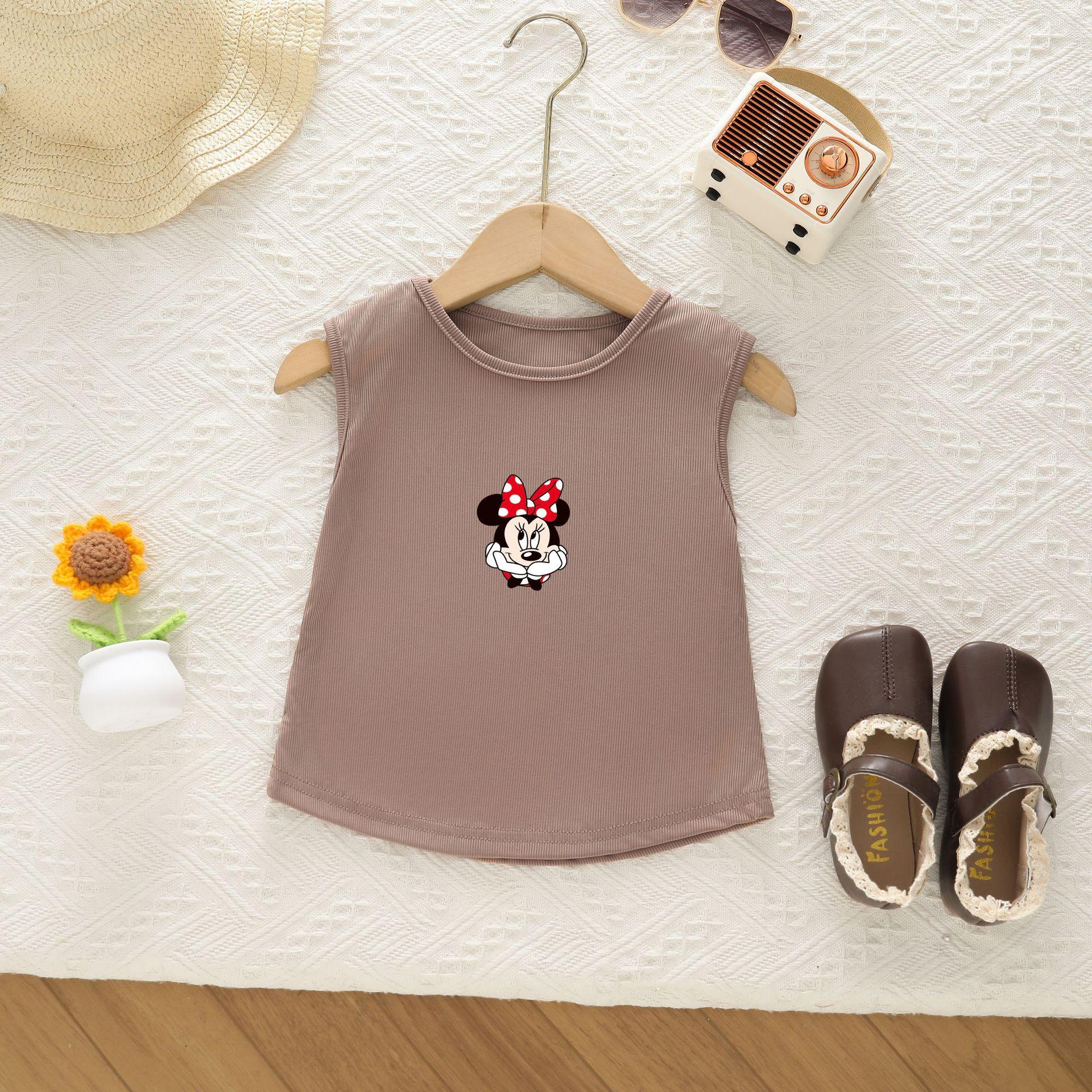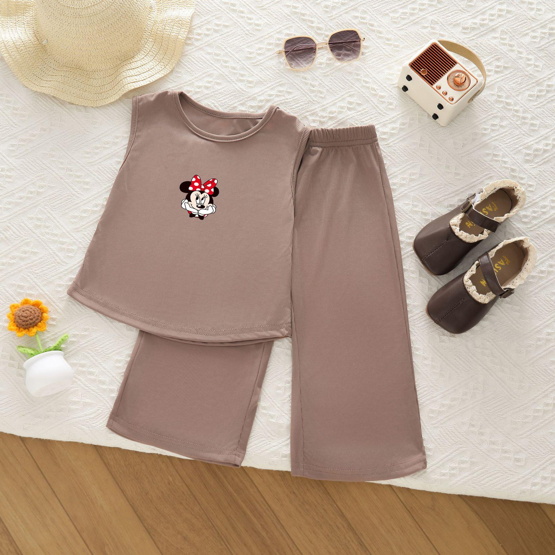 Traje de seda de hielo sin mangas para niñas, conjunto de dos piezas holgado y cómodo de verano 2025 con dibujos animados