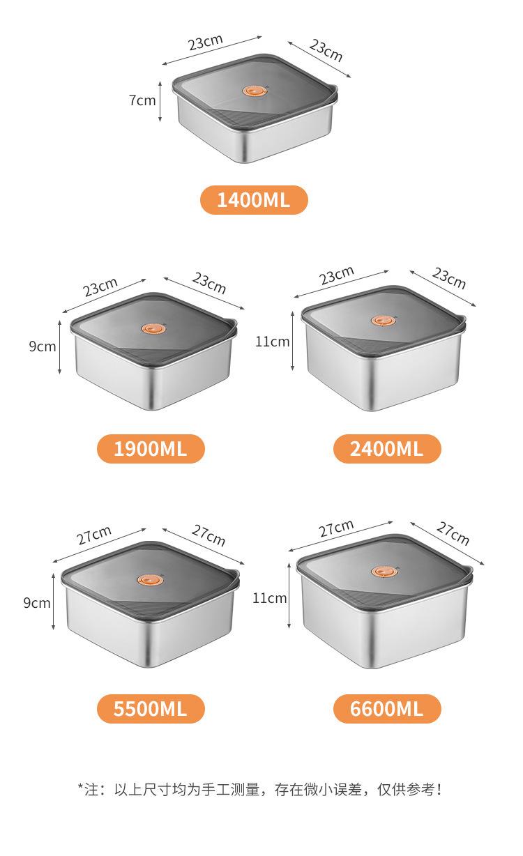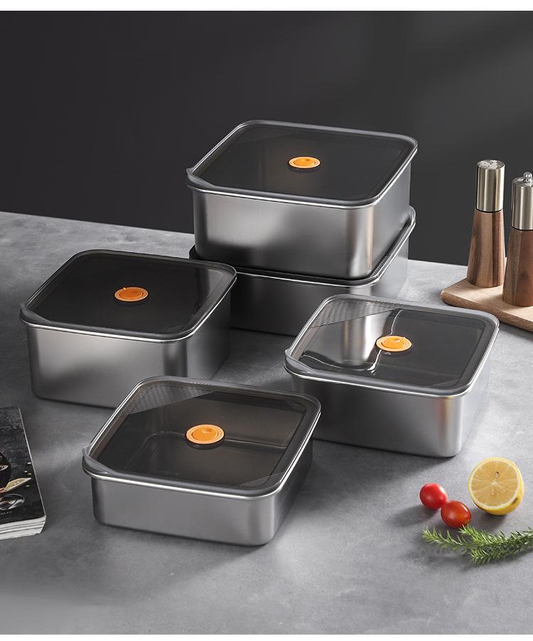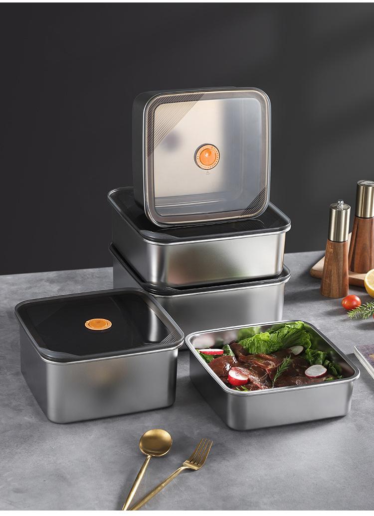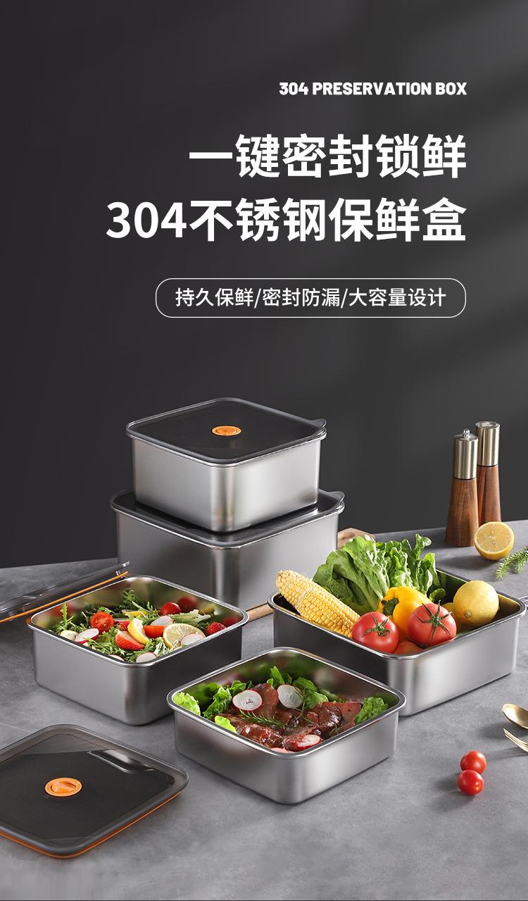 Fiambrera de acero inoxidable 304 de grado alimenticio, fiambrera para frutas, refrigerador, caja de almacenamiento sellada especial con tapa