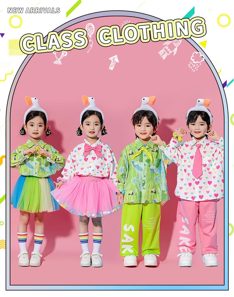 564 green shirt 458 green trousers, 564 green shirt 252 blue green gauze skirt, 565 pink love shirt 458 pink t...