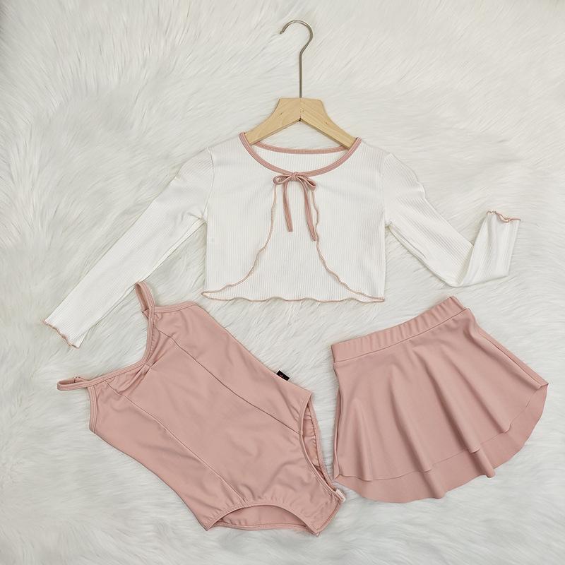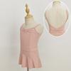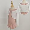 Peach pink suspender + white powder shawl + powder lotus leaf skirt