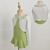 Bean green suspender + white bean green shawl + bean green lotus leaf skirt