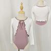 Purple pink suspender + white and purple pink shawl + purple pink lotus leaf skirt