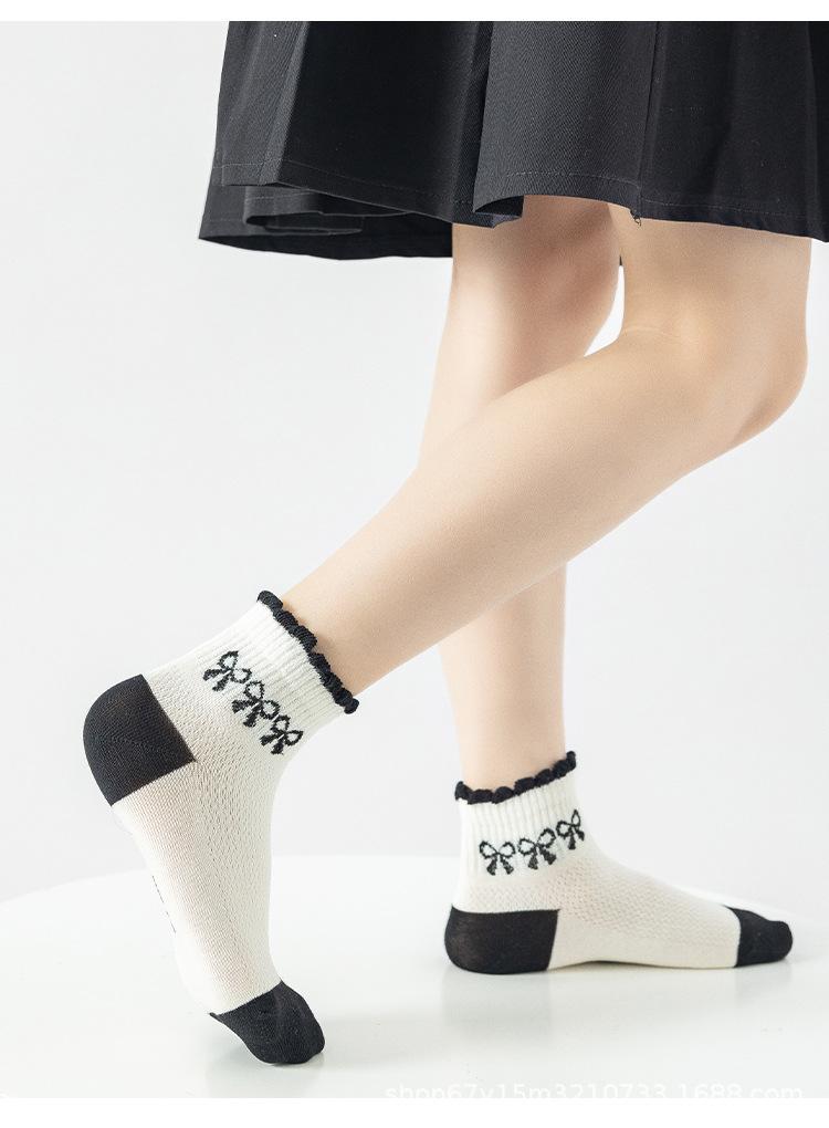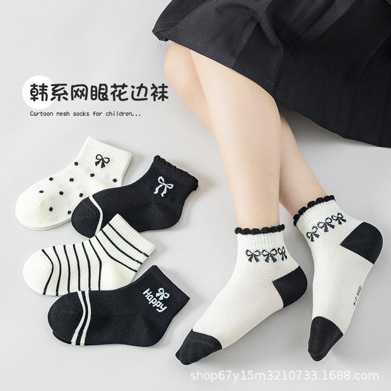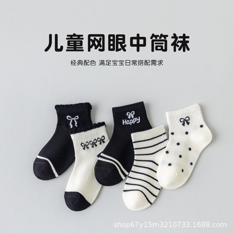 Calcetines de malla de tubo medio para niños, nuevos calcetines de cachorro con dibujos animados, de algodón fino, deportivos, blancos y negros y grises, para primavera y verano