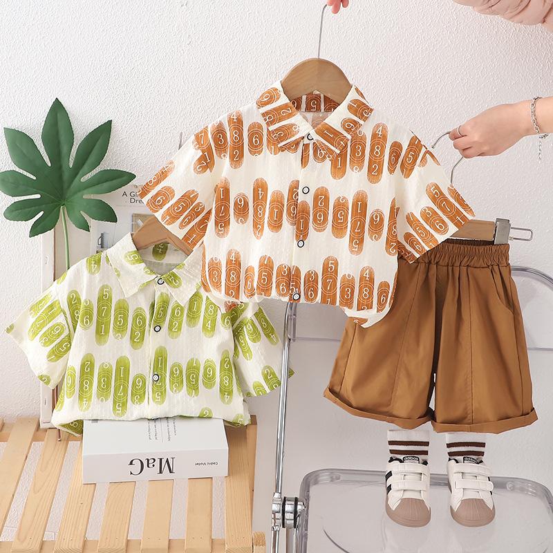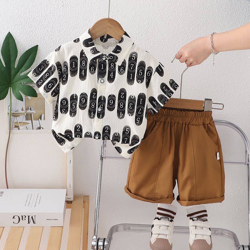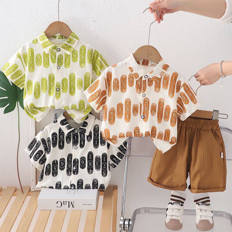 Camisa digital de manga corta para niño, traje 2025, nueva y elegante ropa de verano para niños, conjunto de dos piezas moderno para bebé.