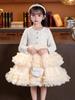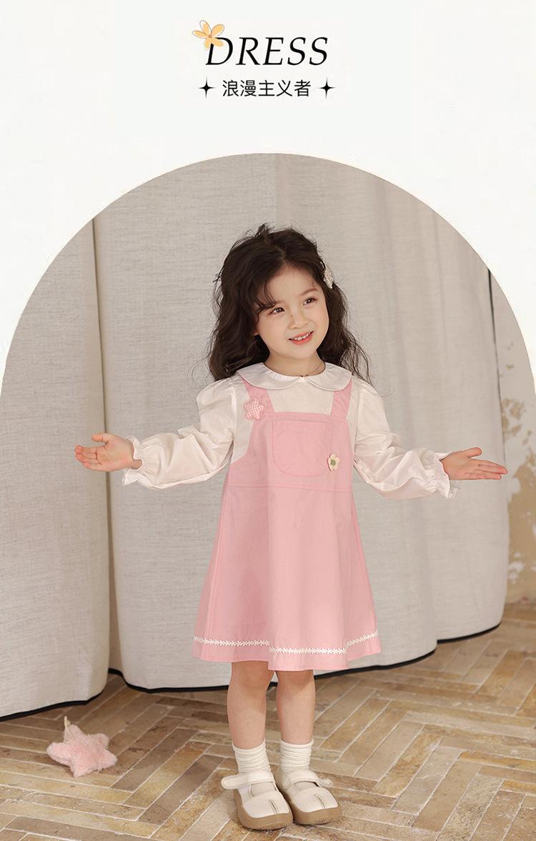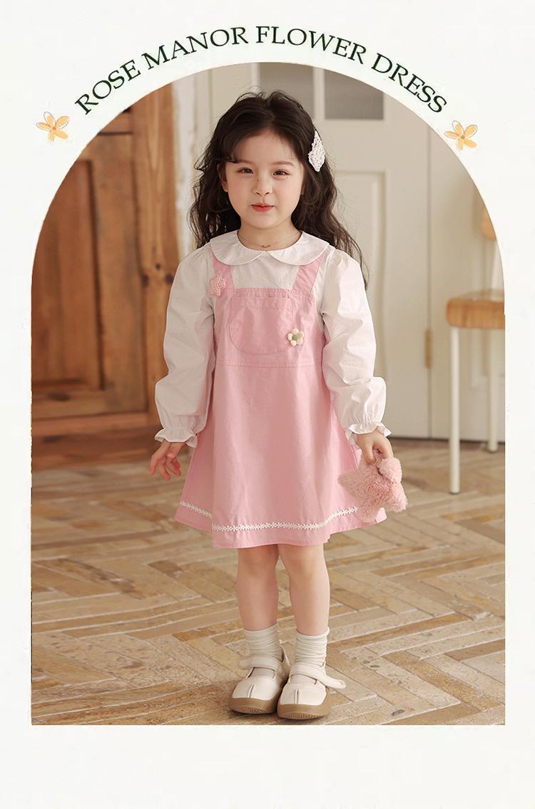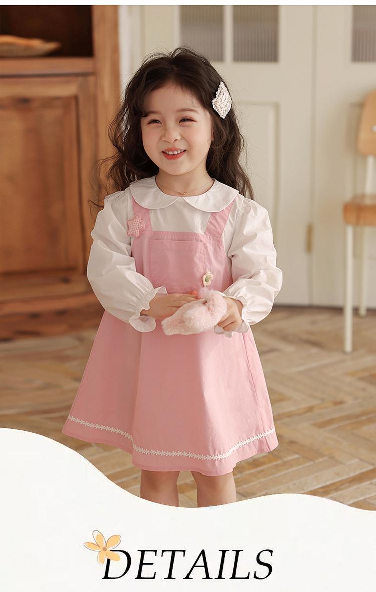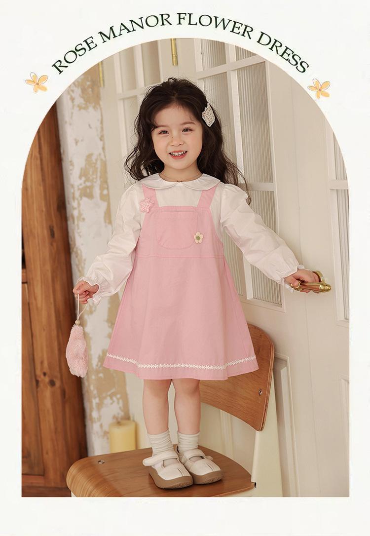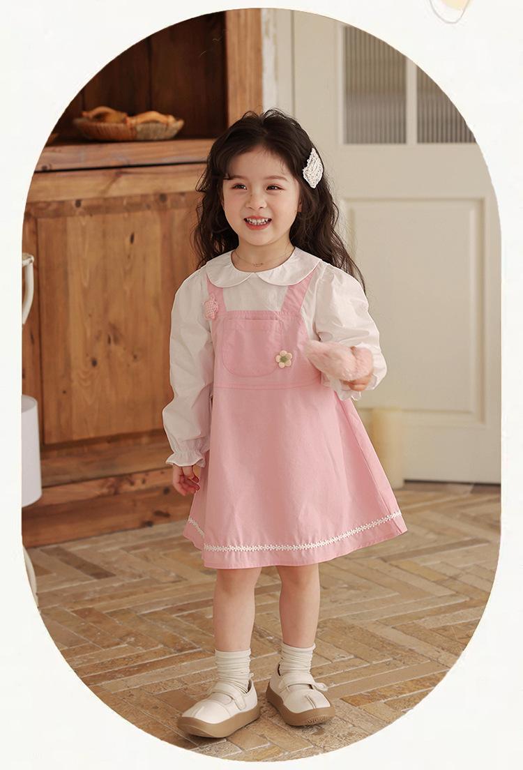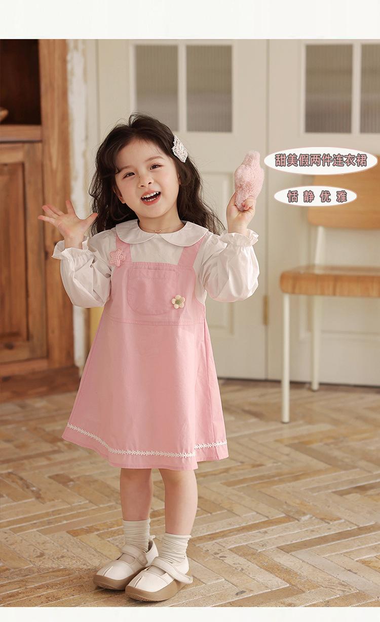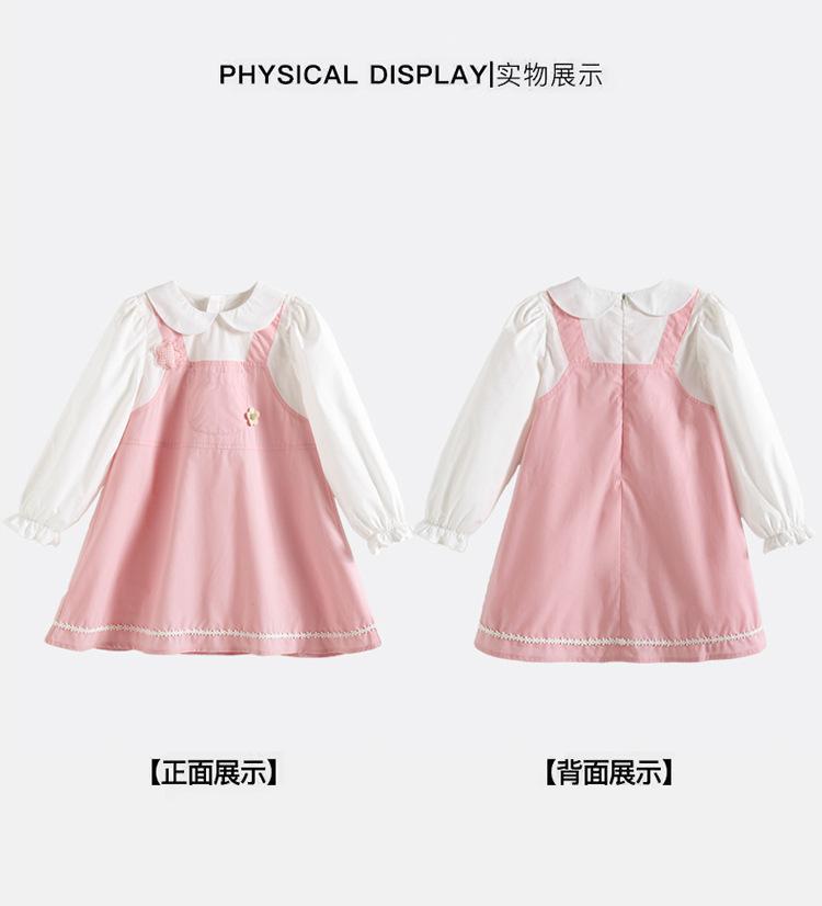 Vestido de Manga Larga para Niñas 2025 Otoño Nuevo Estilo Dulce Vestido de Dos Piezas para Niños Pequeños Falda de Algodón Falda de Princesa