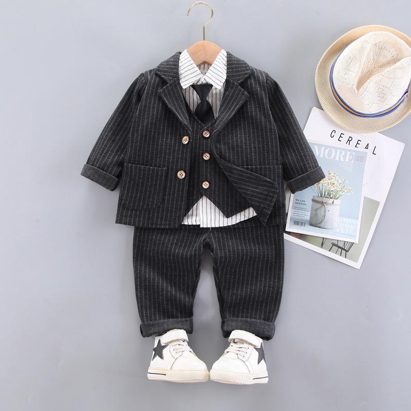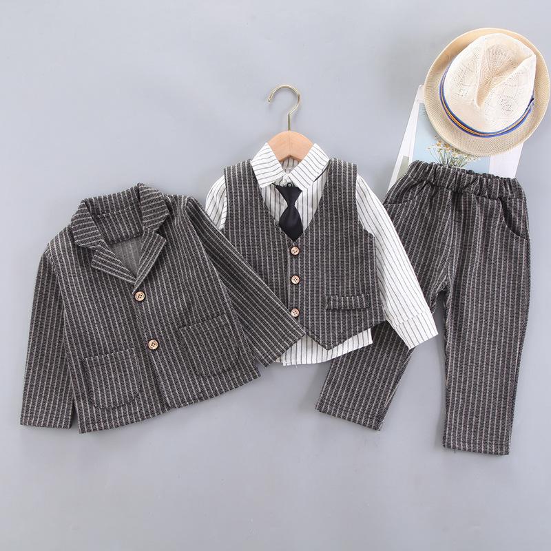 Ropa infantil de comercio exterior, primavera y otoño, nueva ropa infantil, traje para bebé, traje informal a cuadros, traje pequeño, conjunto de cuatro piezas