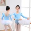 Light Blue-long sleeve open file + blue edge white gauze skirt