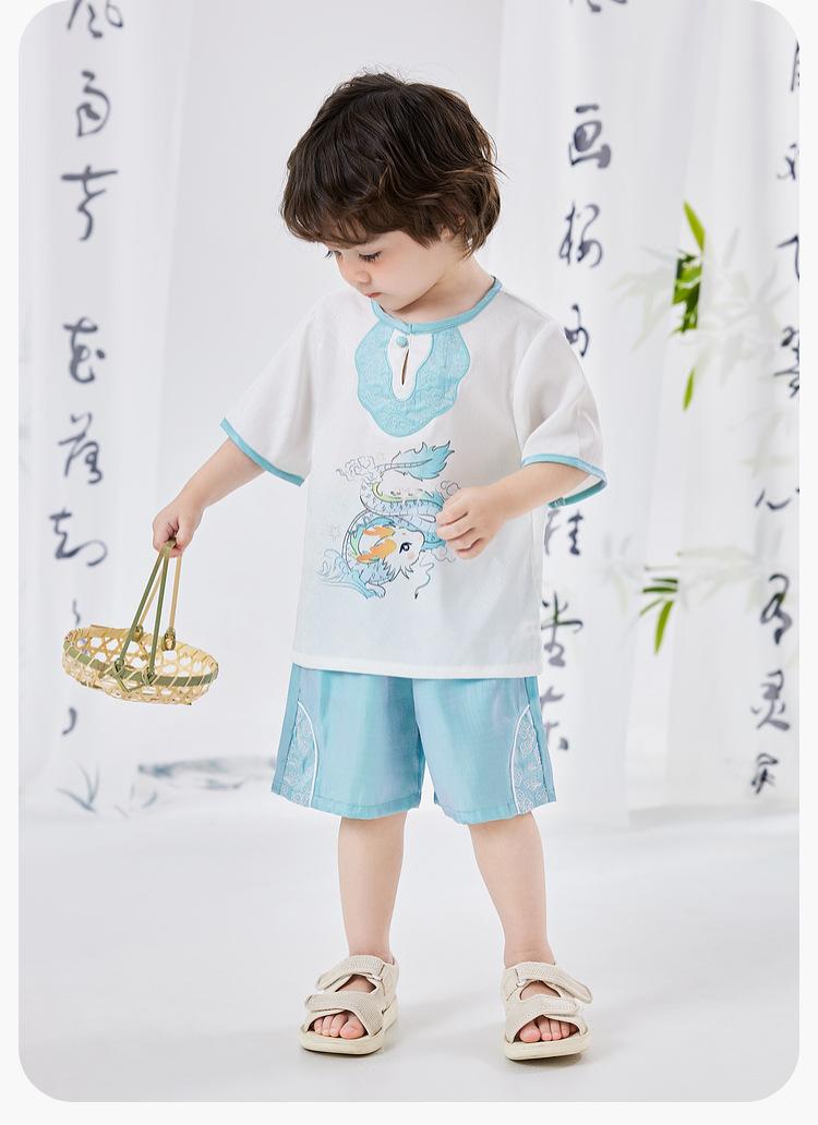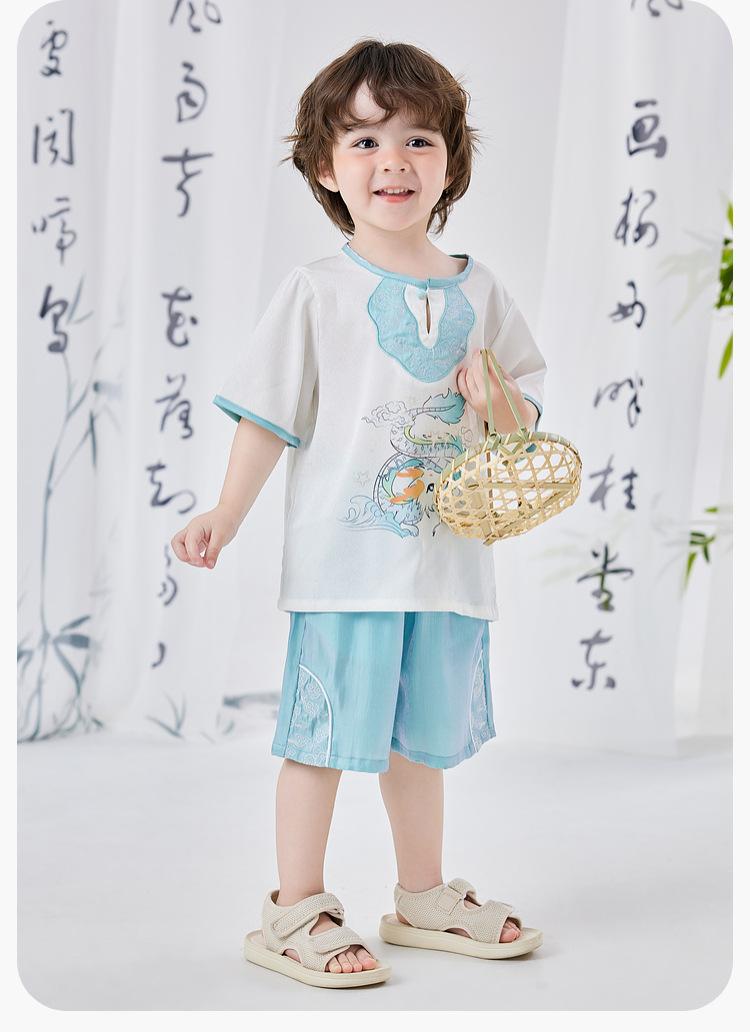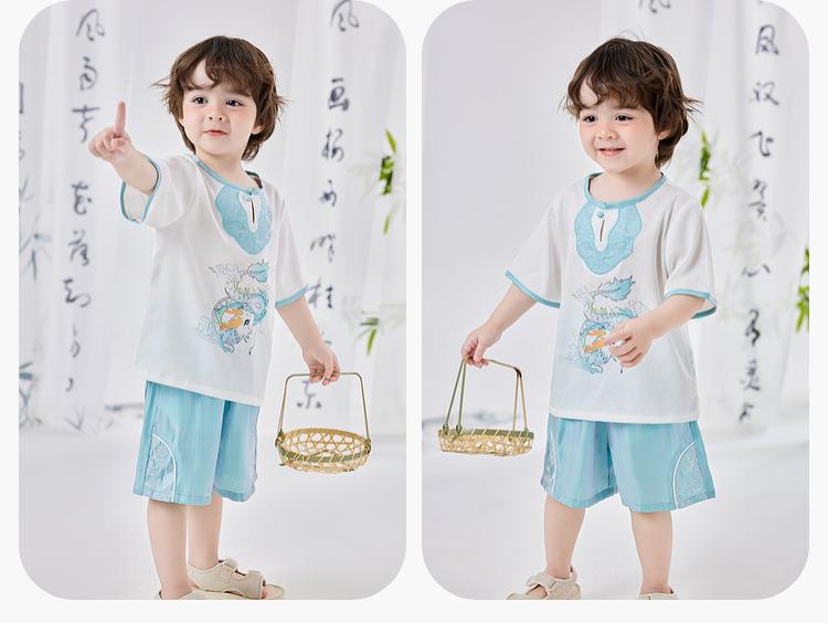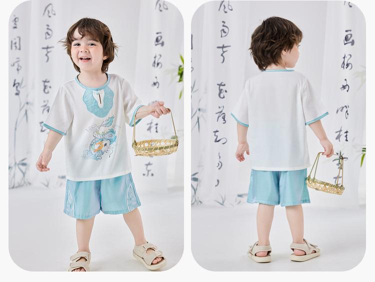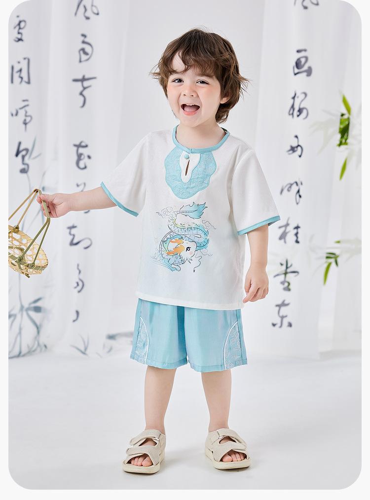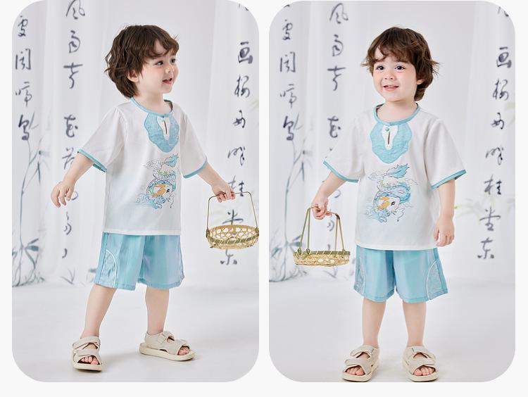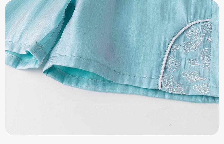 Dudujia Traje de Estilo Nacional para Niños Verano Nuevo Manga Corta y Shorts Estilo Chino Conjunto de Dos Piezas para Niños y Niñas