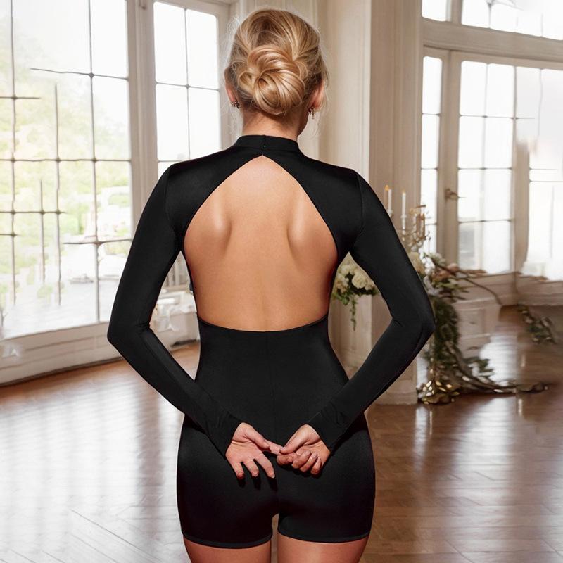 Mono de manga larga ajustado sin espalda grande con hueco en el pecho para mujer, primavera y verano, moda europea y americana, disponible en stock, venta al por mayor, 2025
