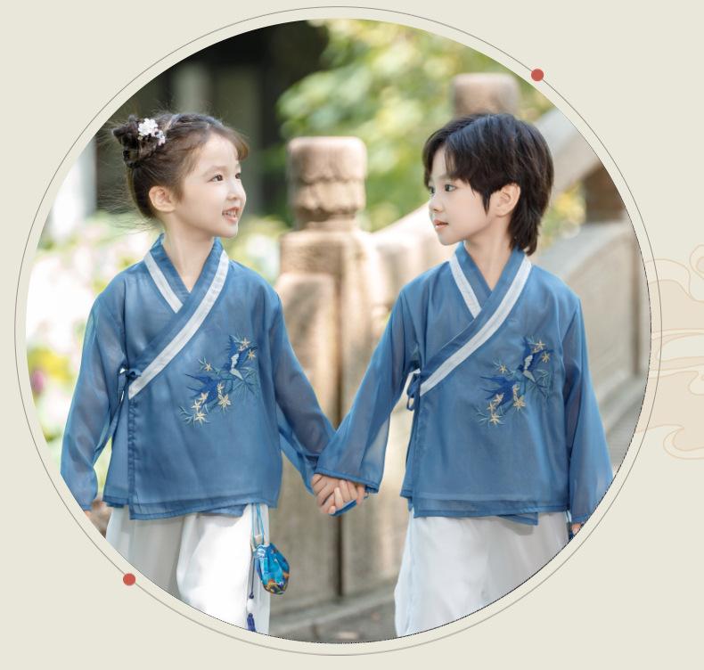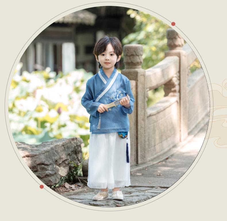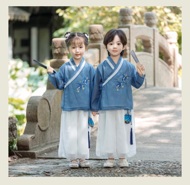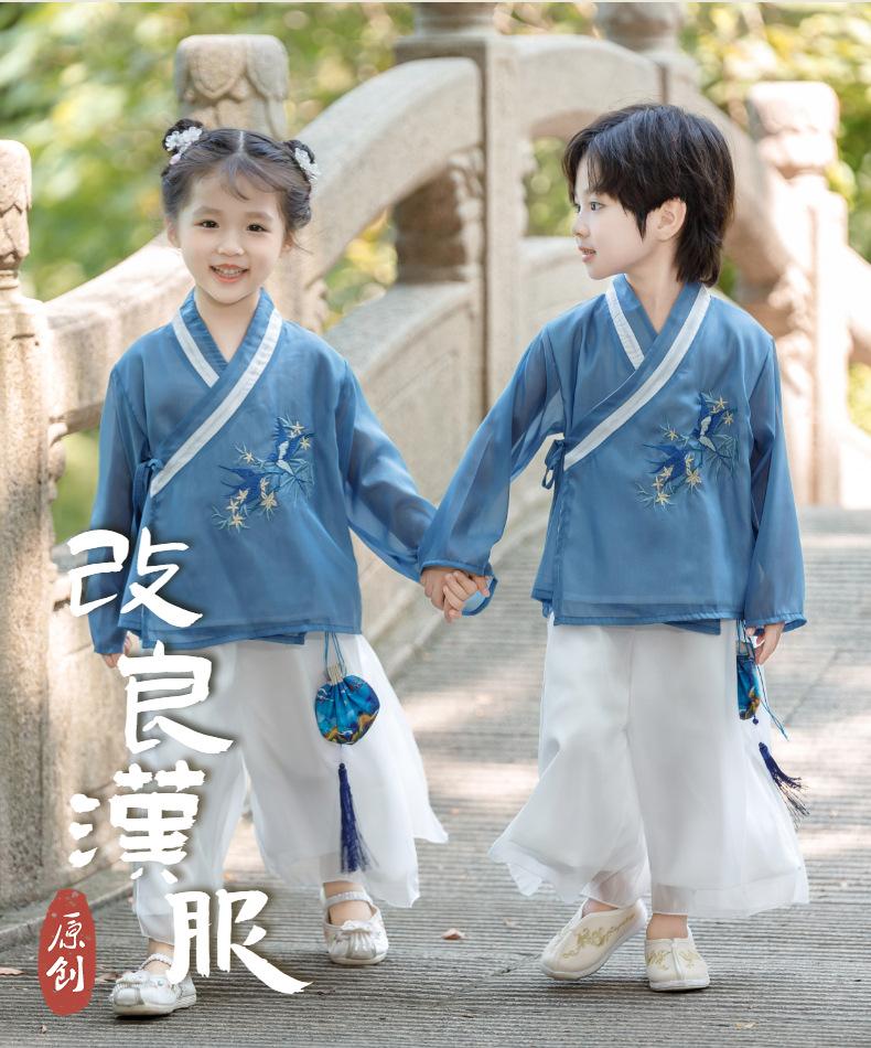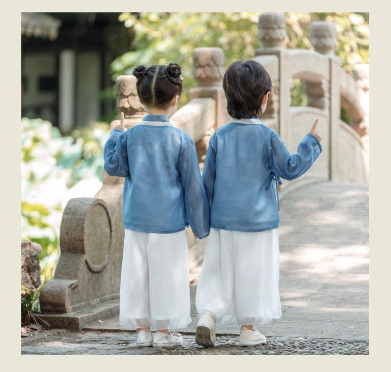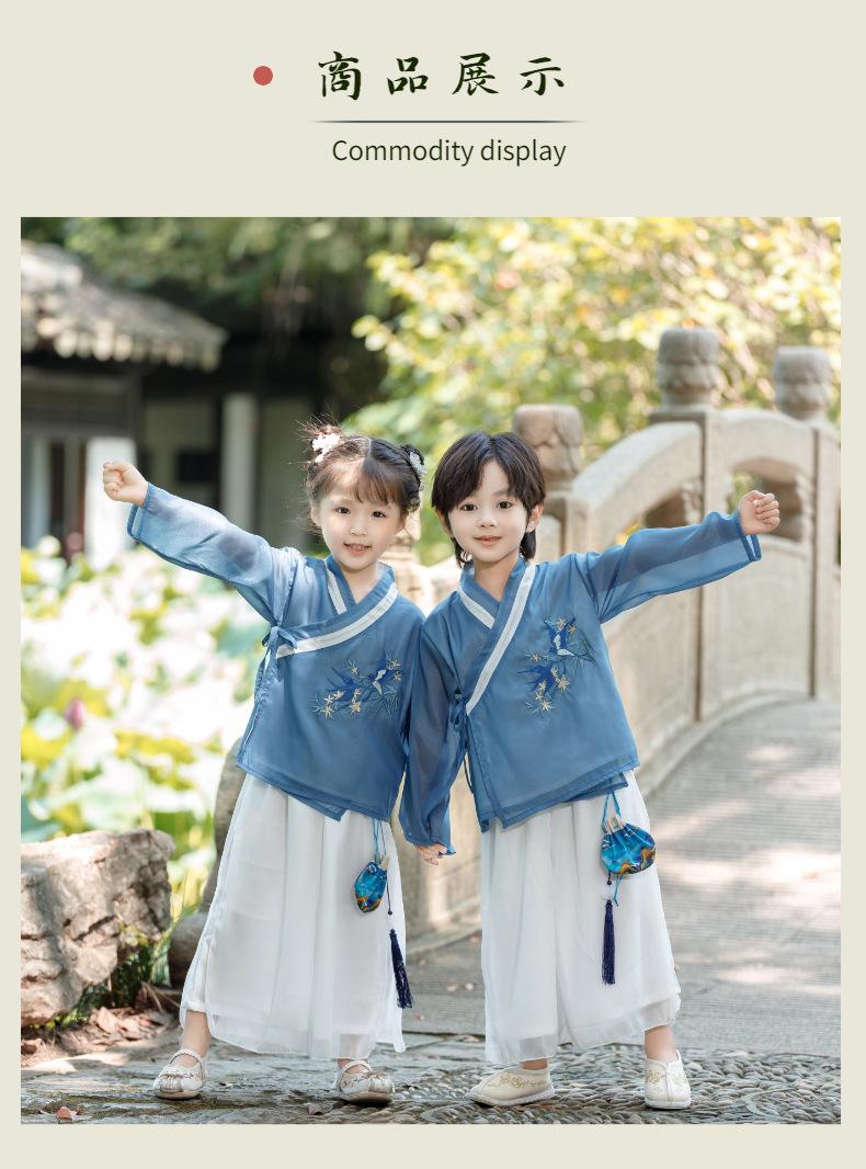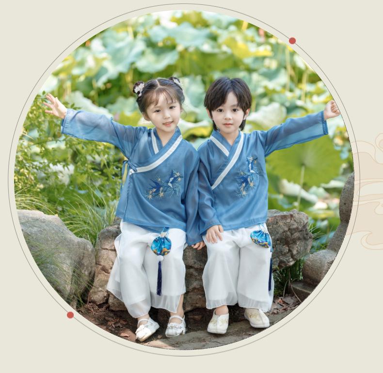 Hanfu de estilo chino para bebés, para hombres y mujeres, para primavera y otoño, ropa de actuación para la escuela, ropa de actuación antigua para jóvenes maestros de jardín de infantes.
