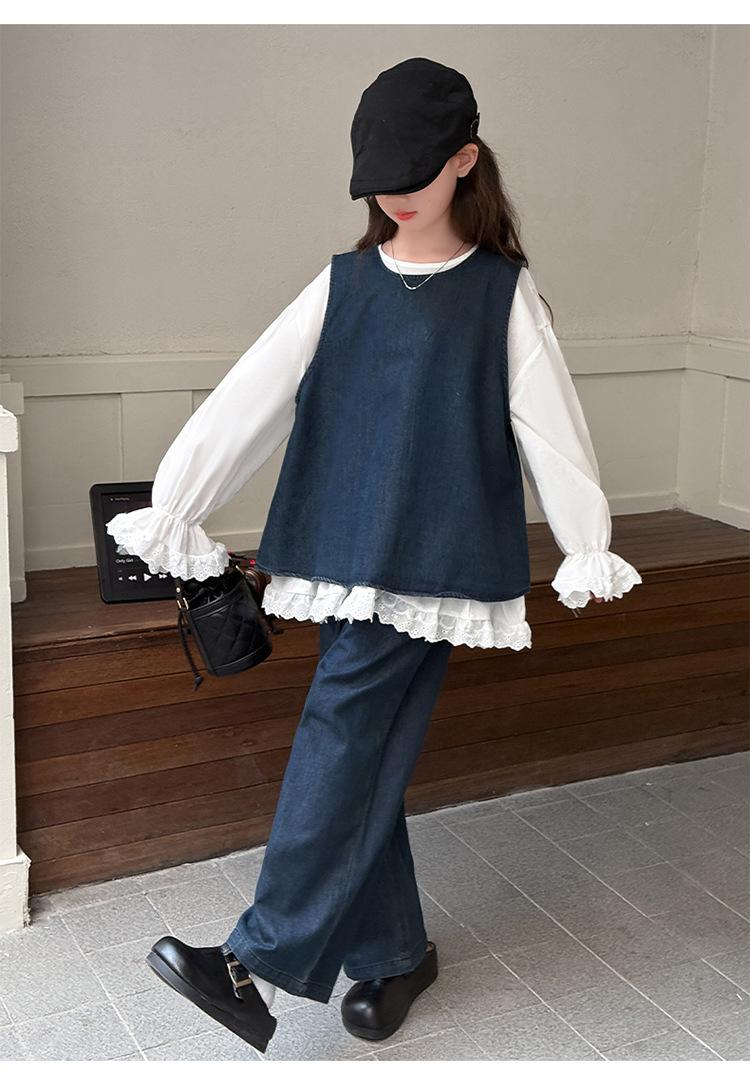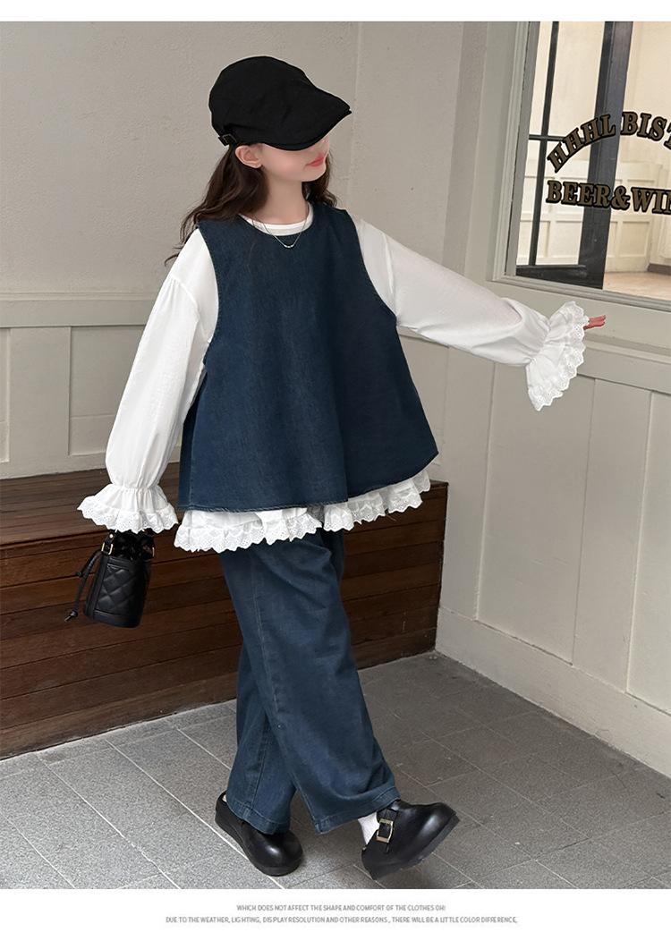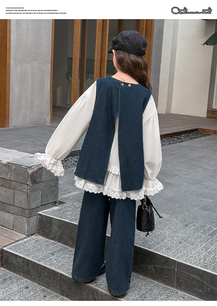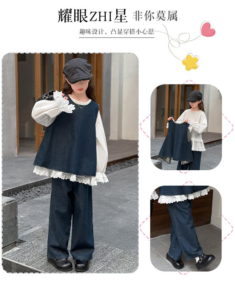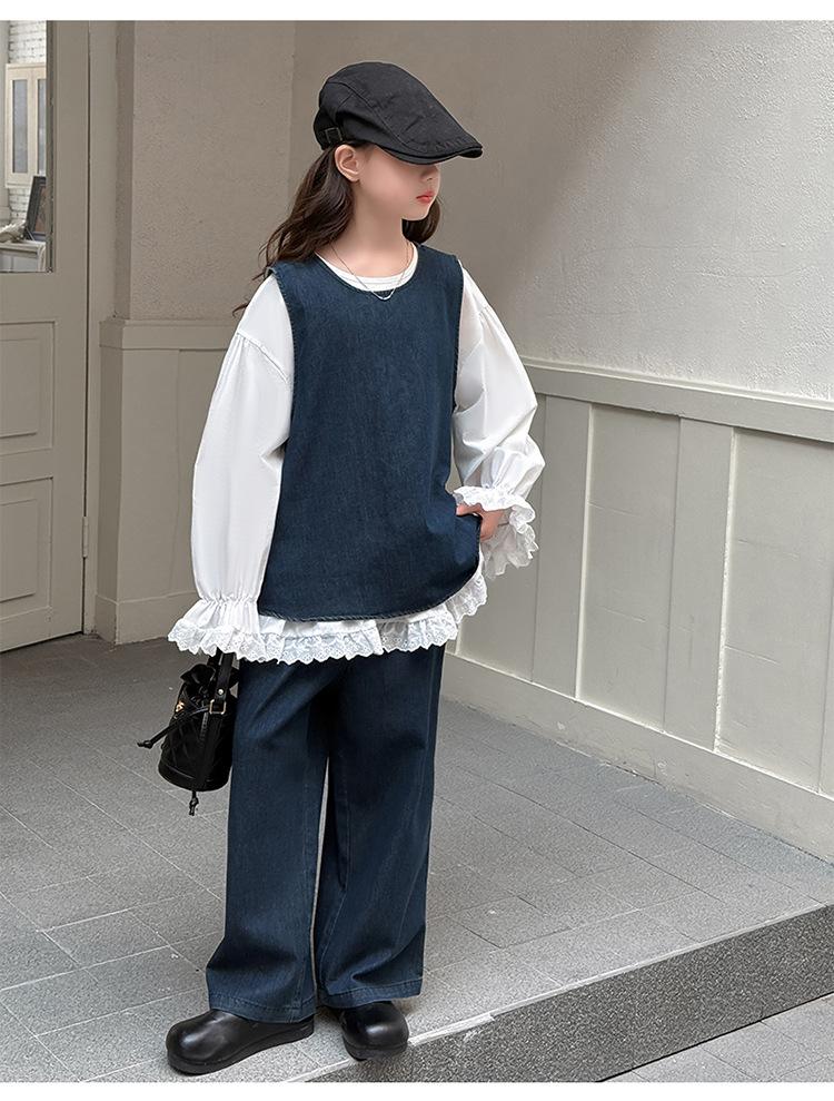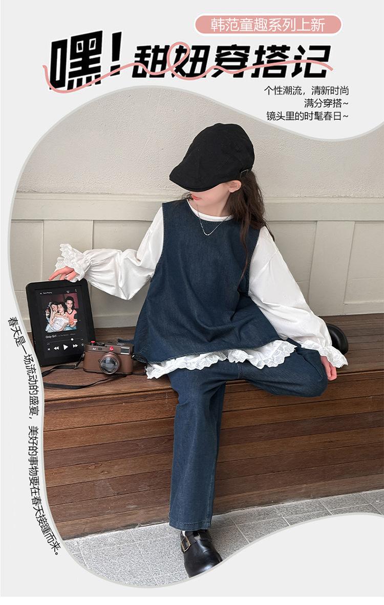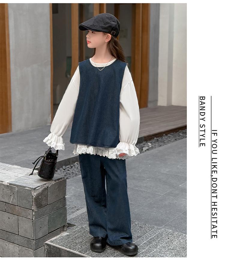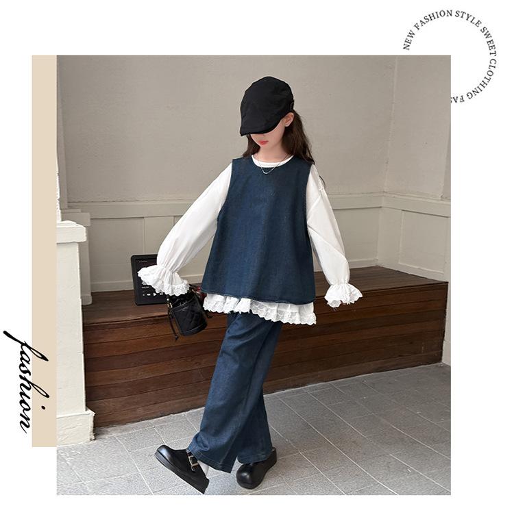 Compra Traje para niña primavera 2025 nuevo estilo extranjero infantil coreano primavera y otoño chaleco de mezclilla camiseta conjunto de tres piezas al por mayor en Joom.pro