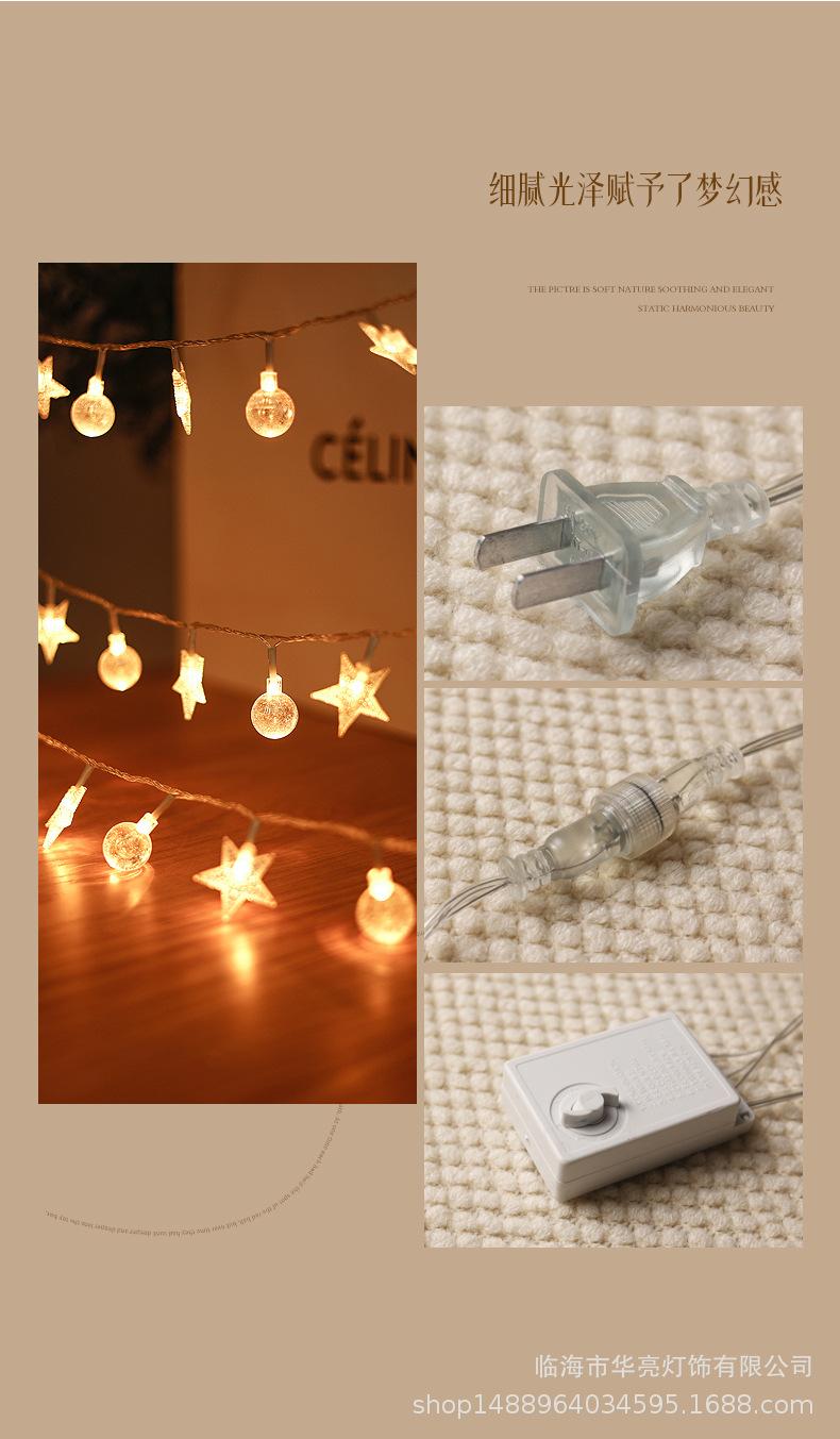 Luces de Estrella LED Puesto de Mercado Nocturno Luces de Cadena Intermitentes Luces Navideñas Estrelladas Luces de Decoración de Habitación Luces de Cadena Estilo Camping al Aire Libre