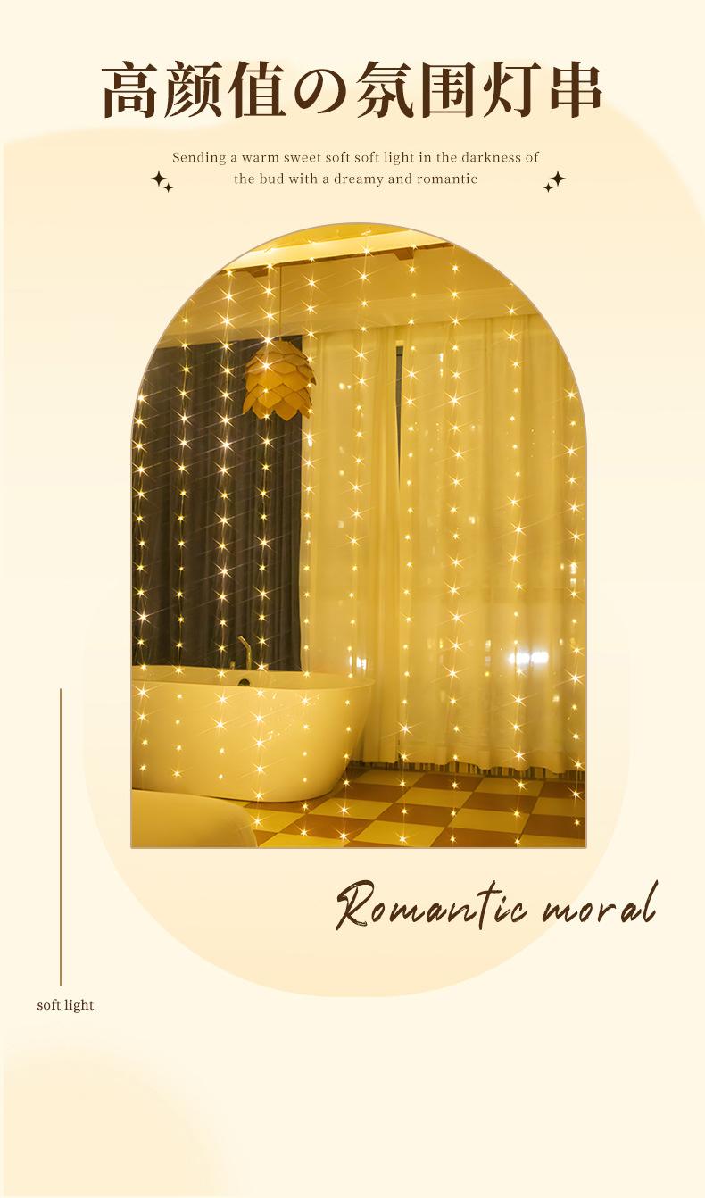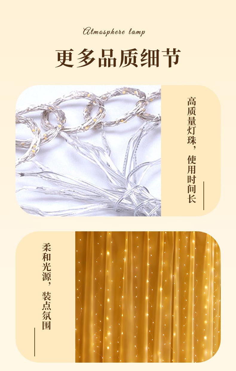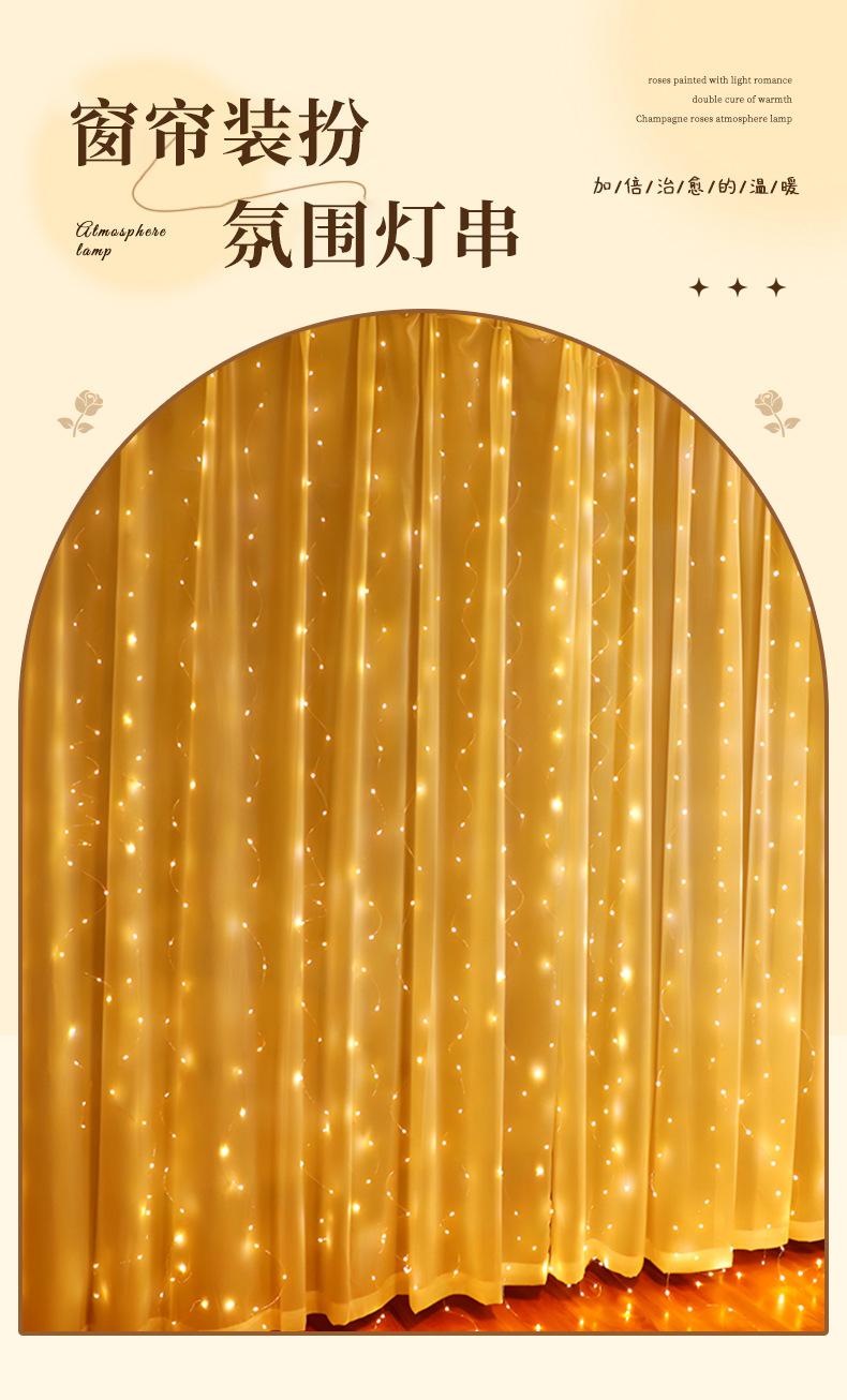 Lámpara de cortina transfronteriza con alambre de cobre de 3 x 3 metros, lámpara de decoración de habitación de Nochevieja y Navidad, lámpara de ambiente, lámpara de cortina, venta al por mayor