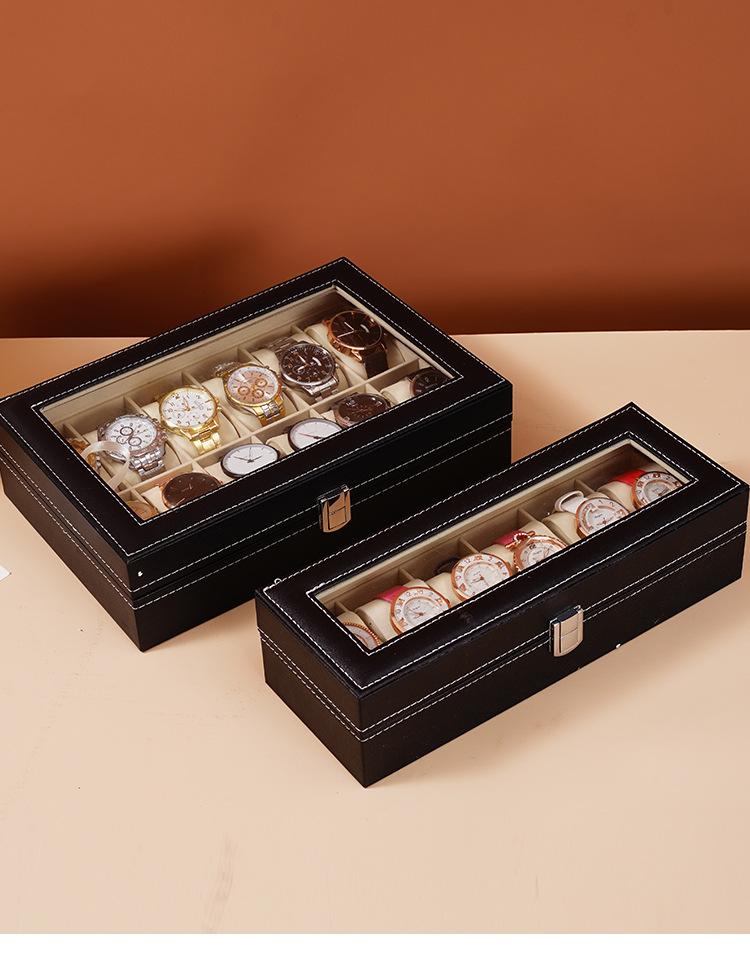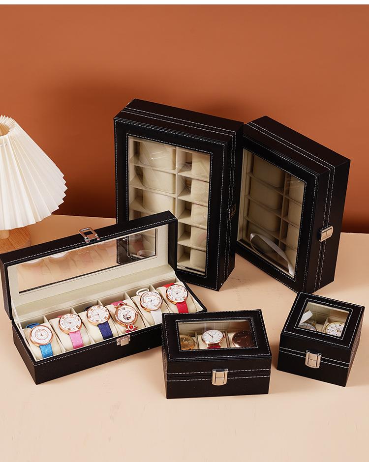 Black leather 2-position watch box, Black leather 6-position watch box, Black leather 10-position watch box, B...