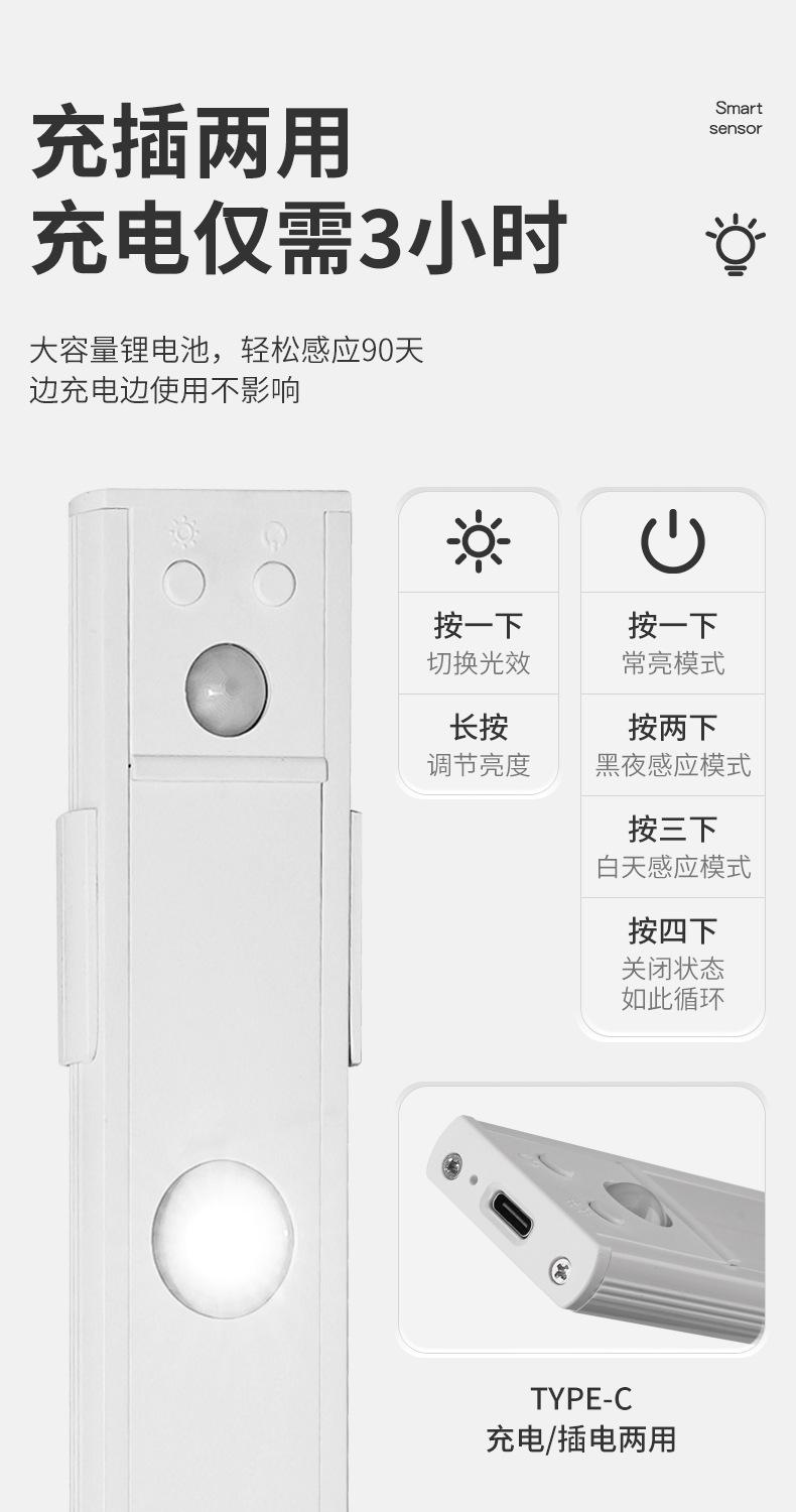 Tira de luz de tres temperaturas de color ojo de gato con inducción del cuerpo humano