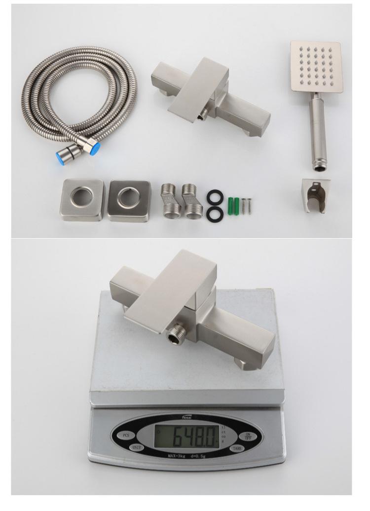 Bañera cuadrada de baño, ducha de acero inoxidable 304, grifo de ducha de agua caliente y fría, válvula mezcladora oculta