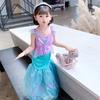 Spot Girls Princesa Sirena Grupo Halloween Niños Cosplay Púrpura Vestido de Ariel Cola de Pez