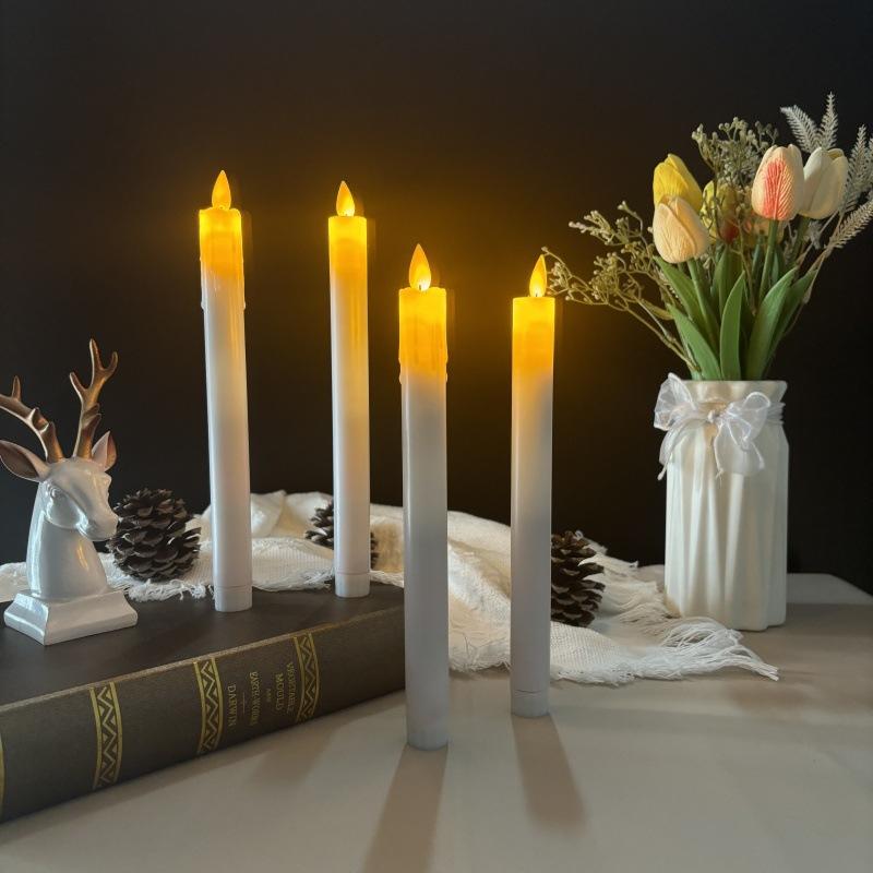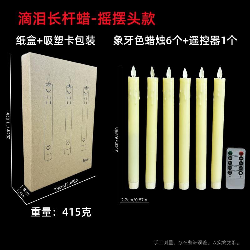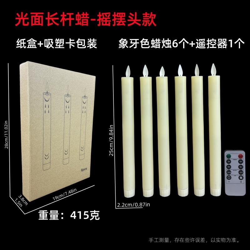 Vela electrónica LED transfronteriza con control remoto, lámpara de vela de varilla larga, lámpara de simulación de plástico para bodas, lámpara de decoración de ambiente navideño de cera