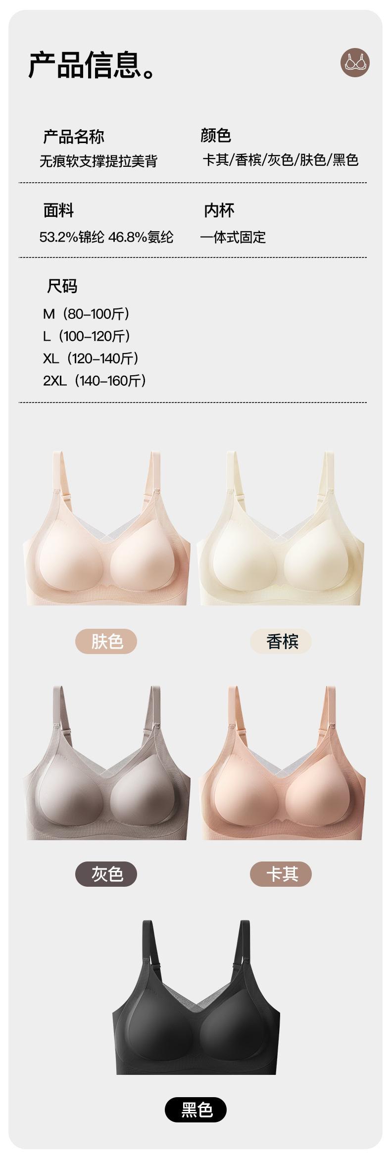 Sujetador Glazy sin costuras para mujer, con fruncido pequeño y pecho grande, antiflacidez