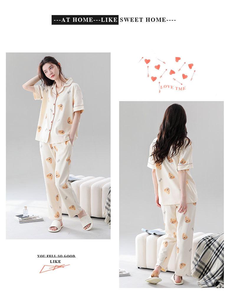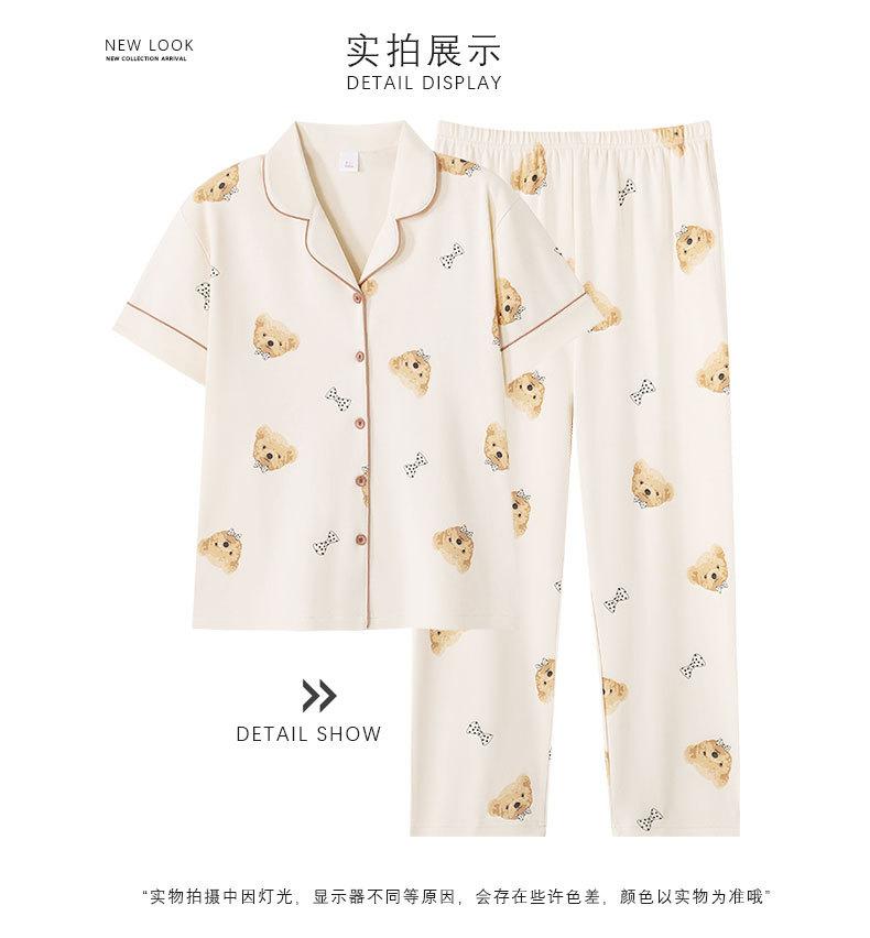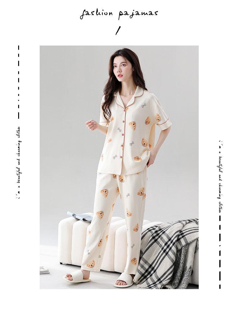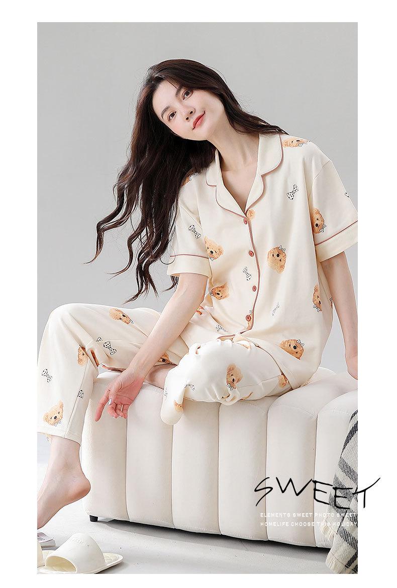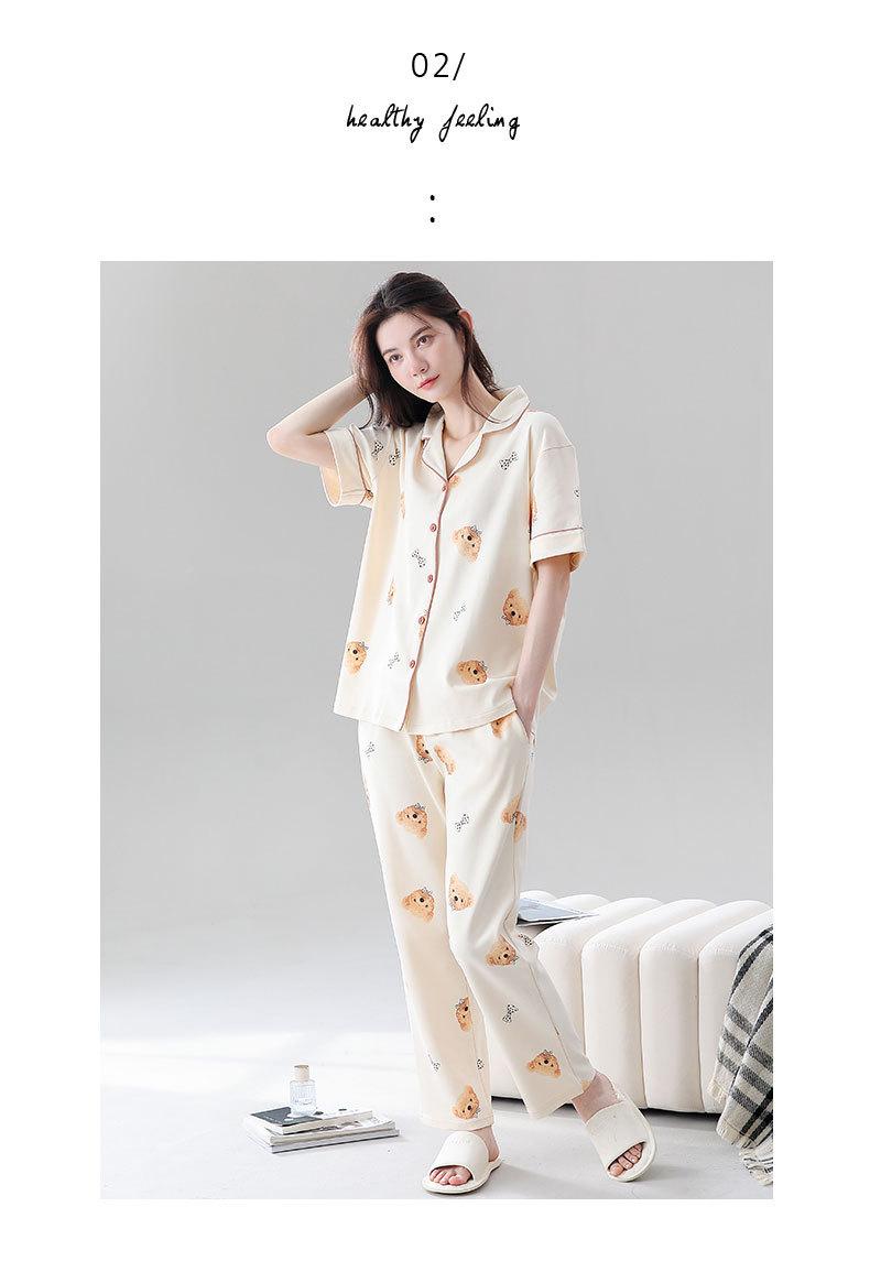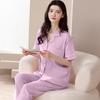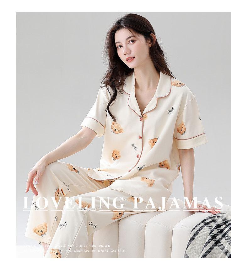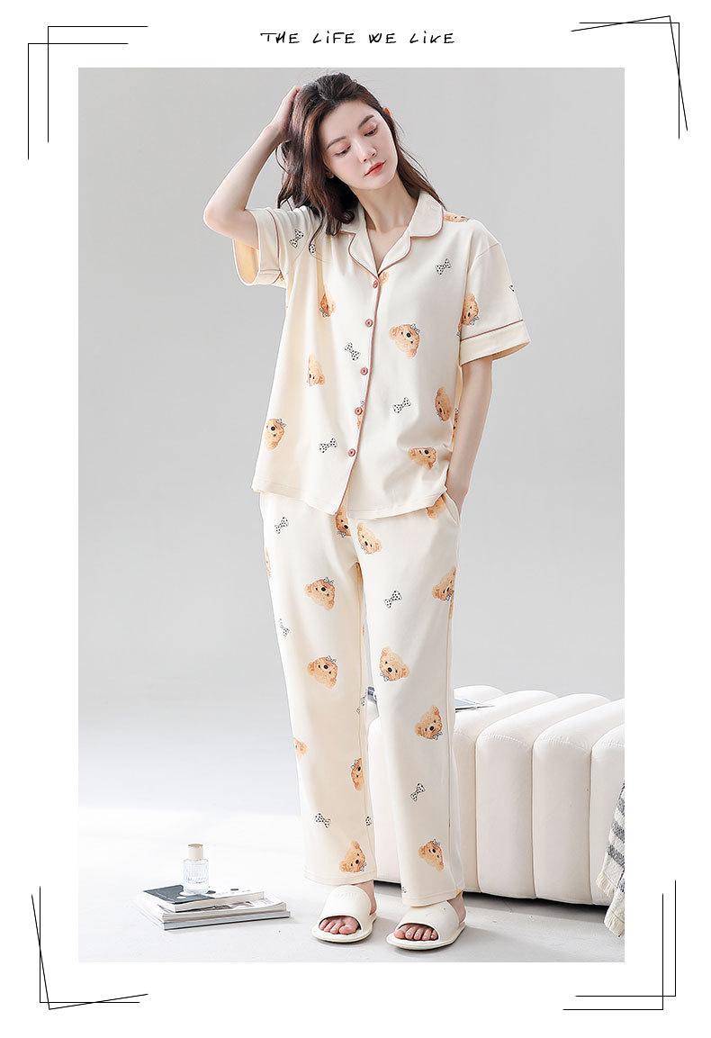 Pijama de verano para mujer, de algodón, de manga corta, con pantalón tipo cárdigan y hebilla delantera, ropa de verano para el hogar, traje de algodón para mujer.
