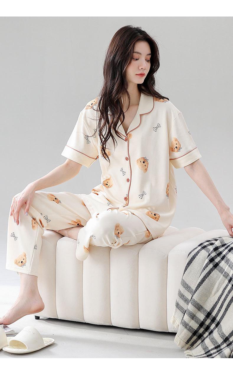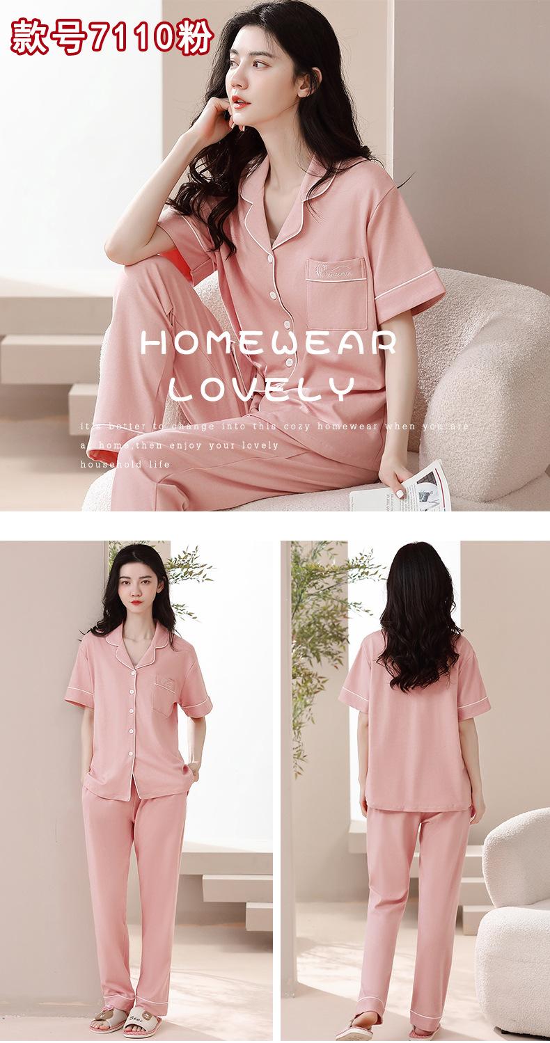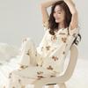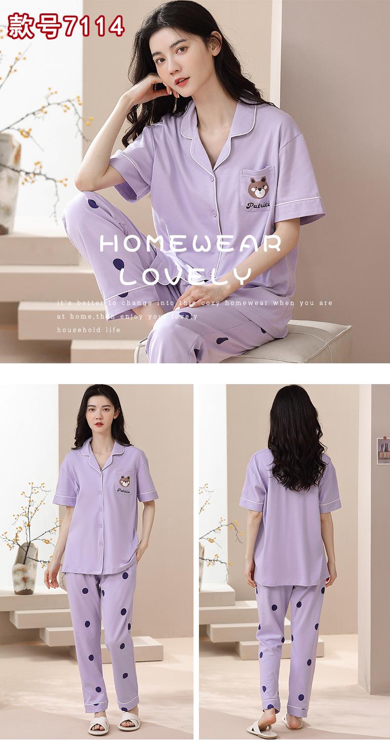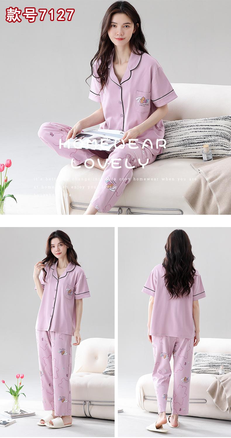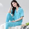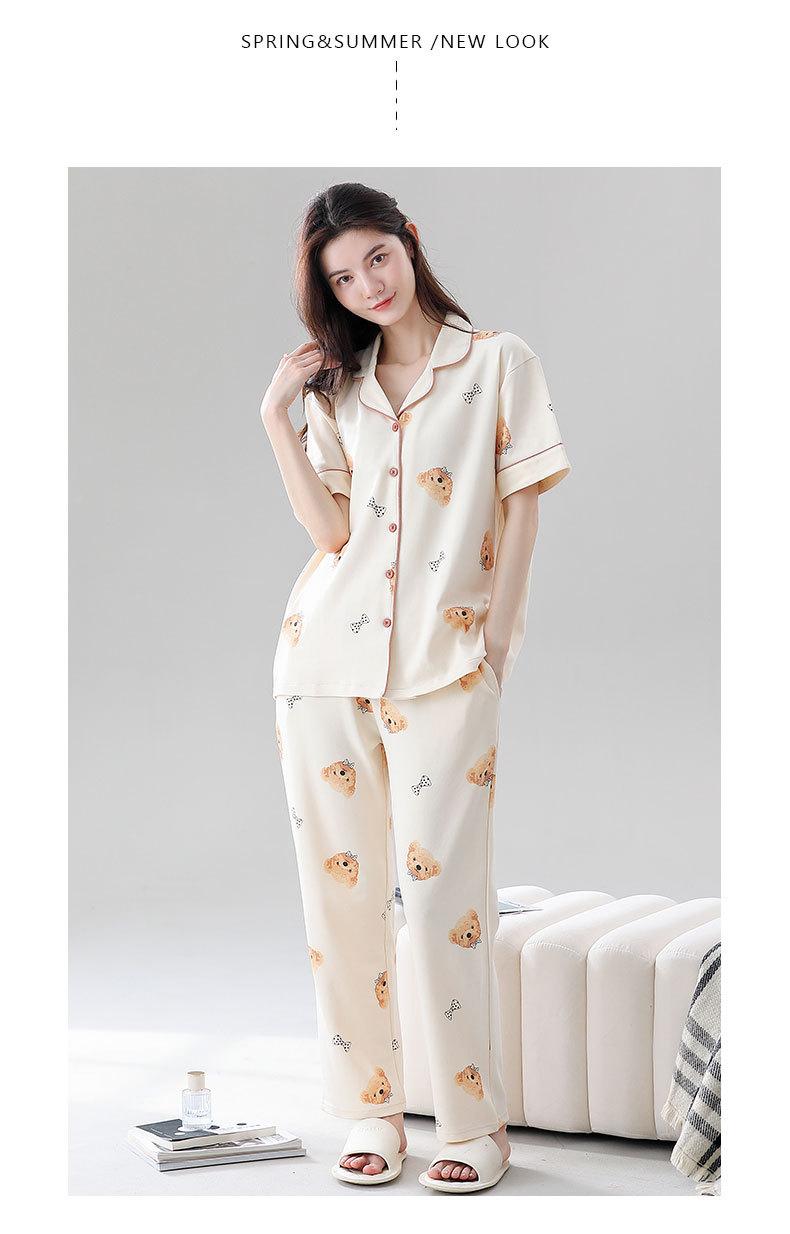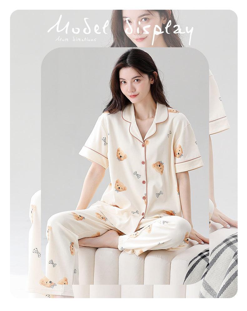 Pijama de verano para mujer, de algodón, de manga corta, con pantalón tipo cárdigan y hebilla delantera, ropa de verano para el hogar, traje de algodón para mujer.