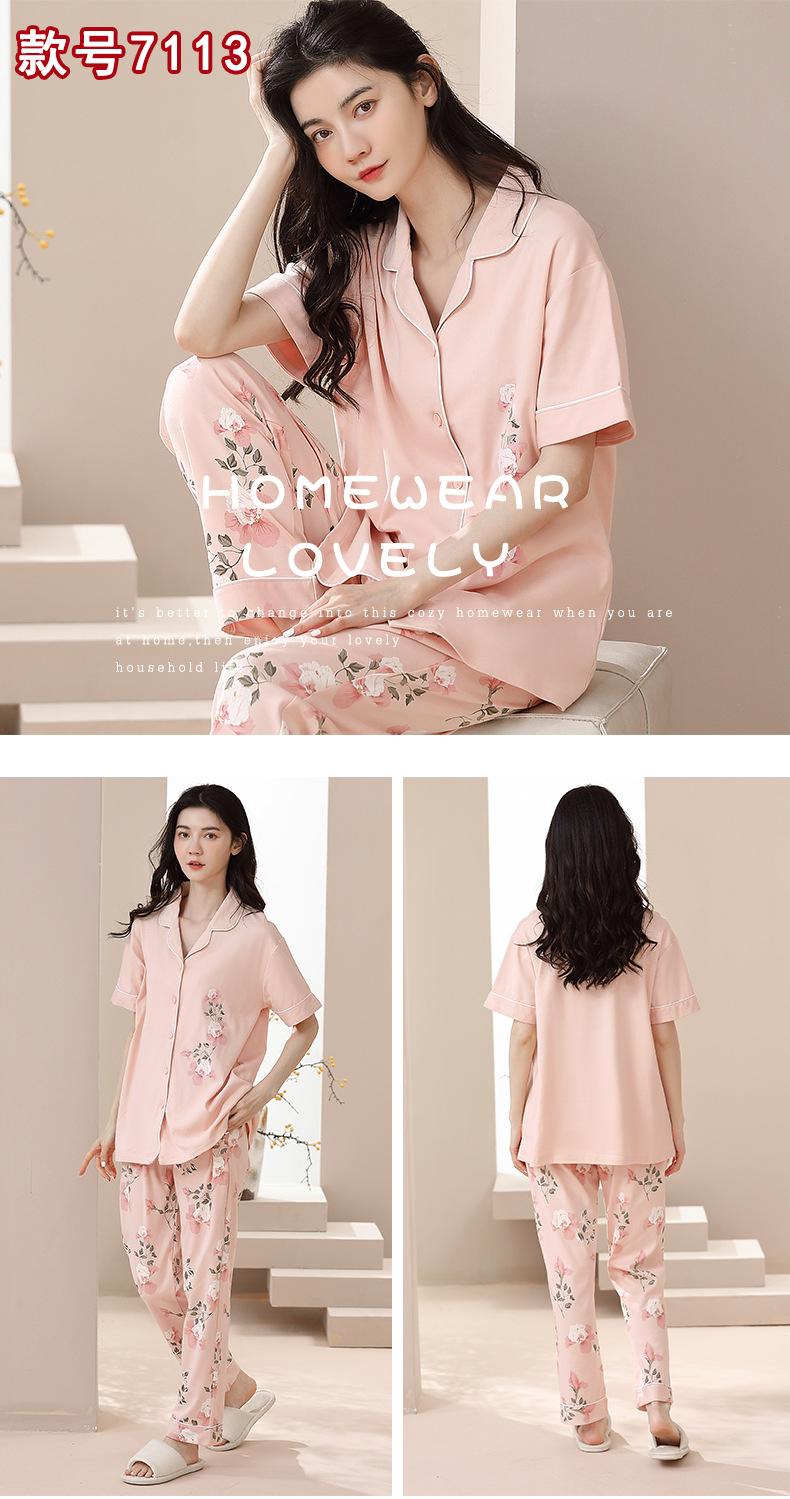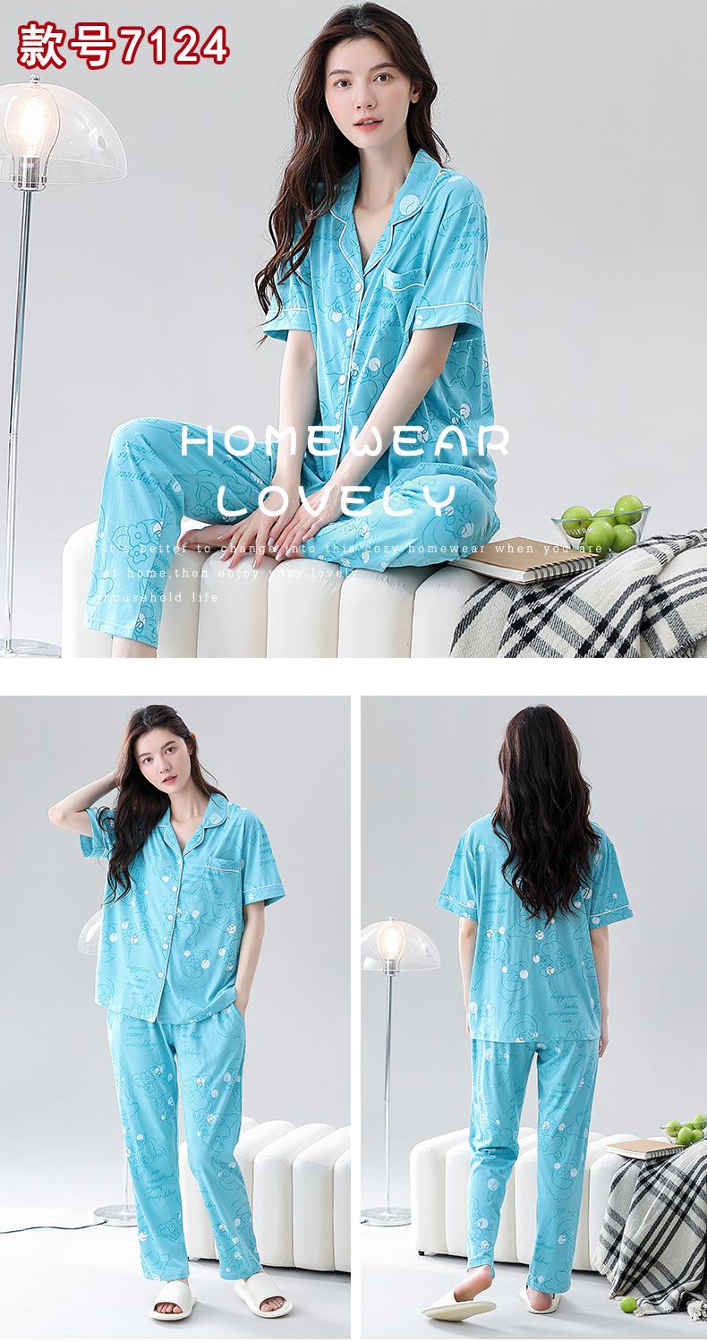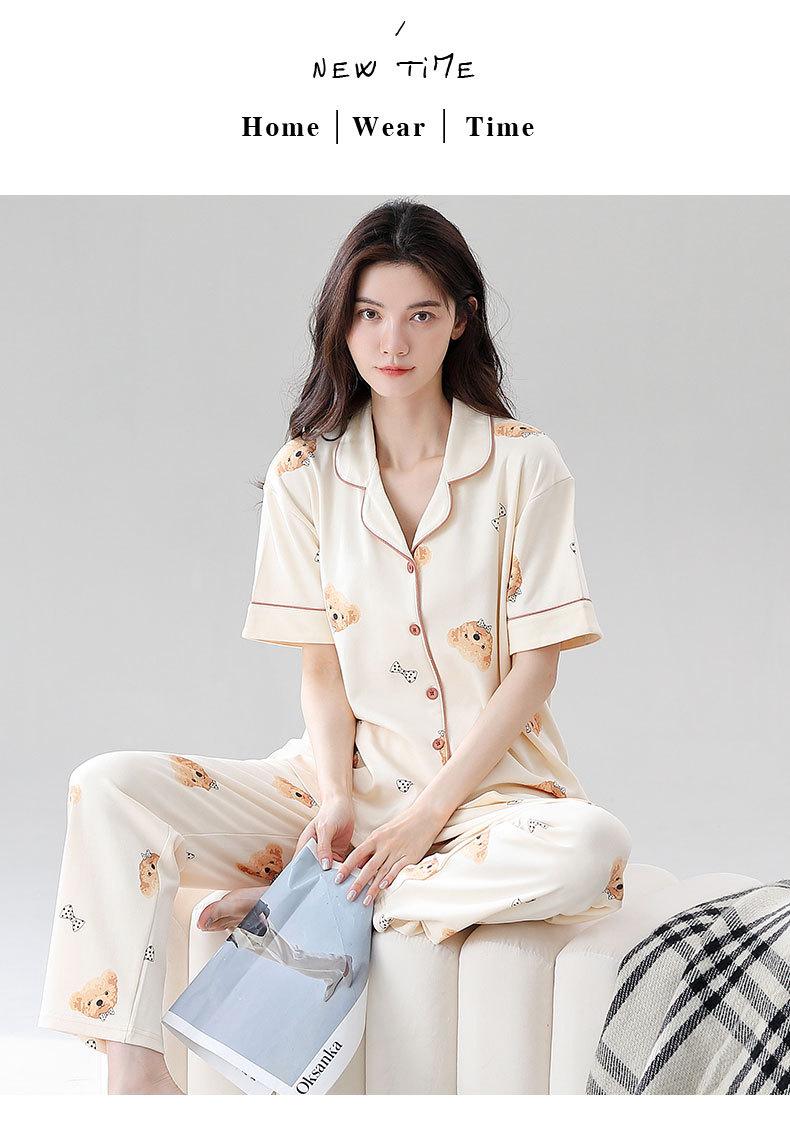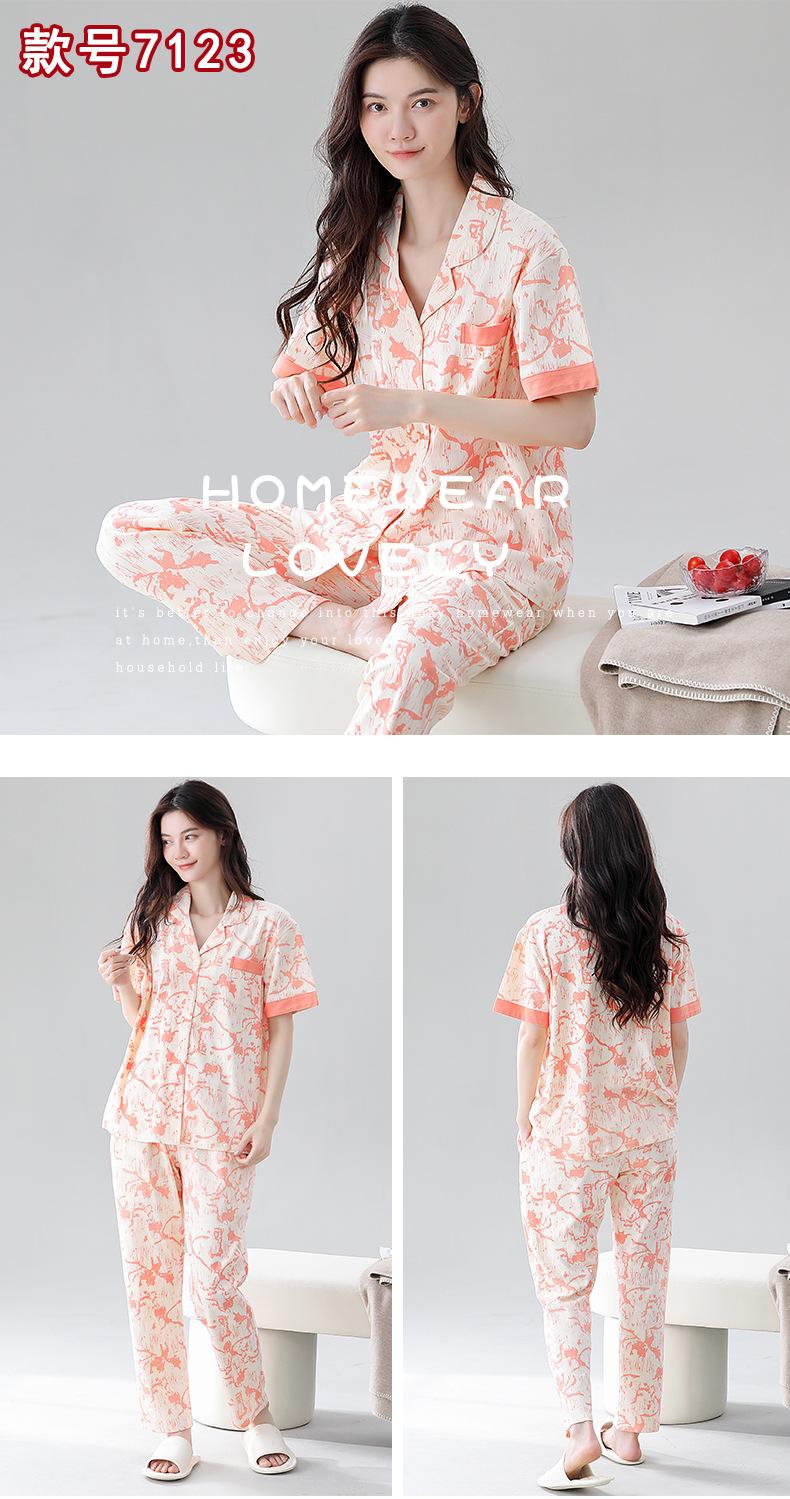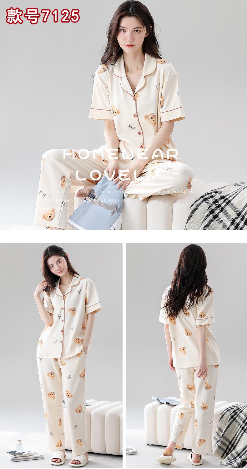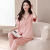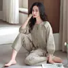Pijama de verano para mujer, de algodón, de manga corta, con pantalón tipo cárdigan y hebilla delantera, ropa de verano para el hogar, traje de algodón para mujer.