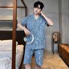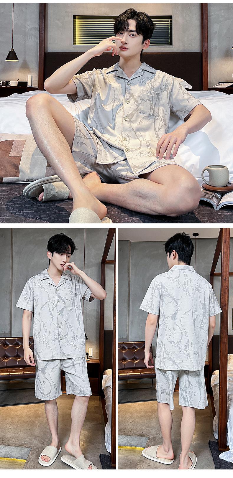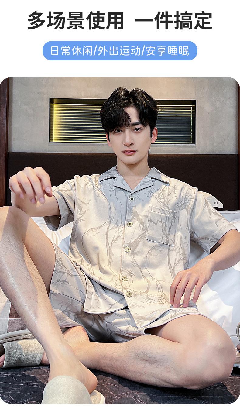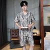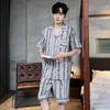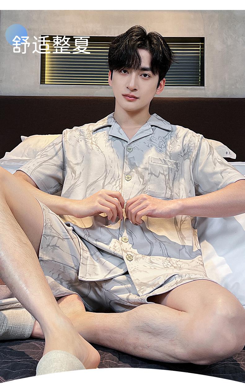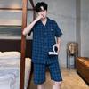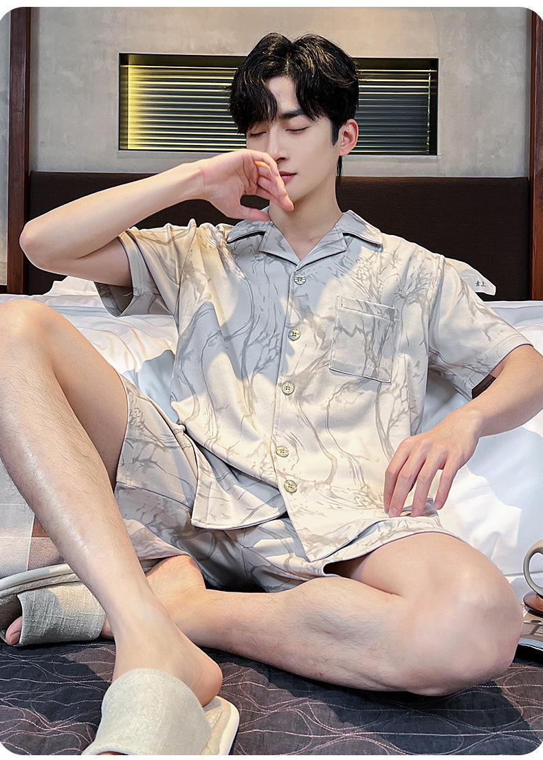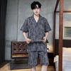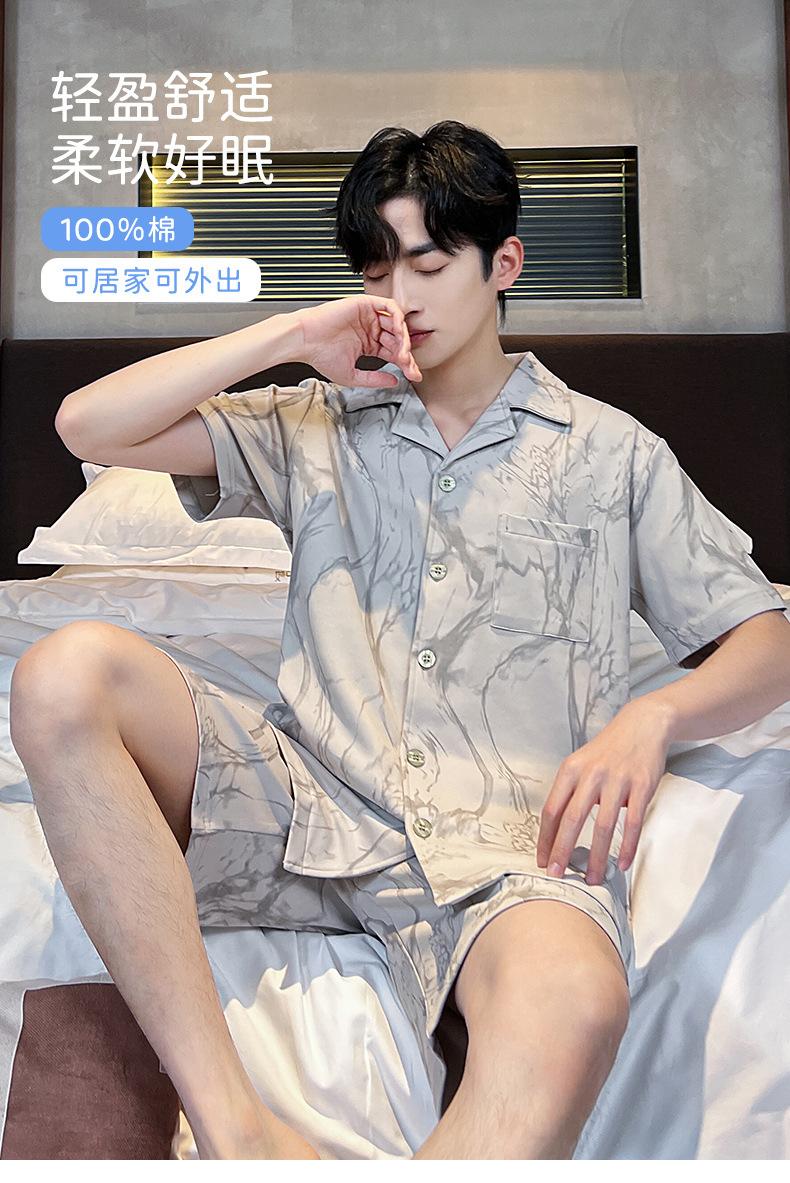 Pijama de Algodón de Verano 2025 para Hombre de Manga Corta y Shorts Sueltos con Cárdigan Talla Grande Cómodo Traje Delgado Ropa para el Hogar