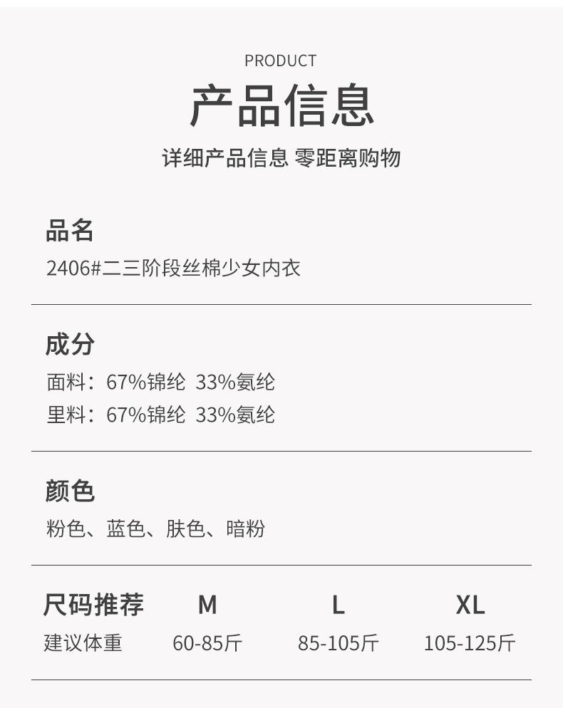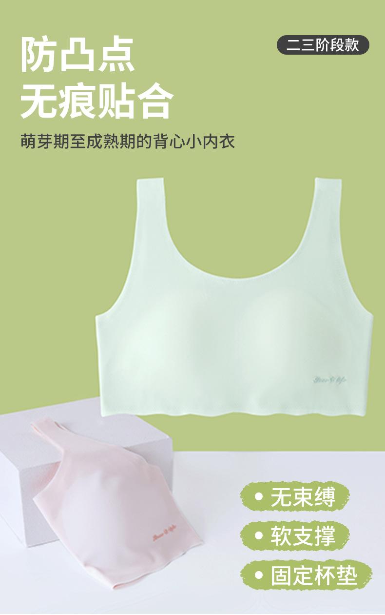 La segunda etapa de desarrollo de la ropa interior para niñas, chaleco transpirable sin costuras para niñas, sujetador de copa fija antigolpes para estudiantes de secundaria.