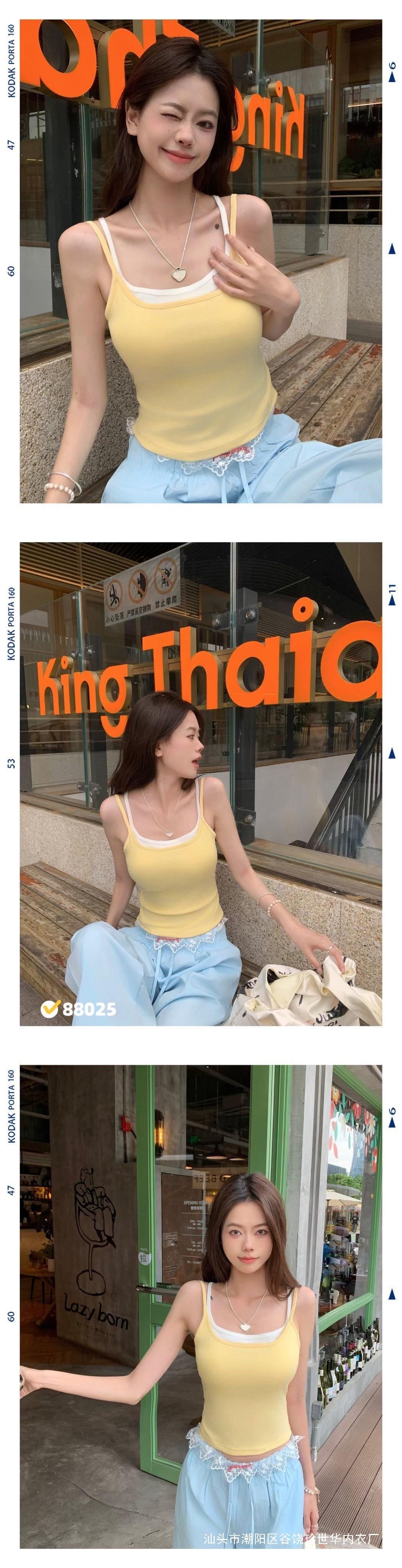 Nuevo Chaleco Pequeño de Tirantes de Deseo Puro de Dos Piezas Falso sin Tirantes con Lazo y Almohadilla en el Pecho Ropa Interior para Mujer para Uso Interior y Exterior