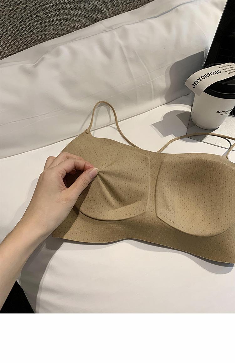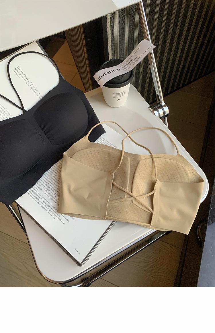 Ropa interior de verano para mujer, con espalda hermosa y sensual, fina, con pecho grande y fruncido pequeño, sujetador tipo halter ligero y antideslizamiento.